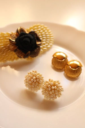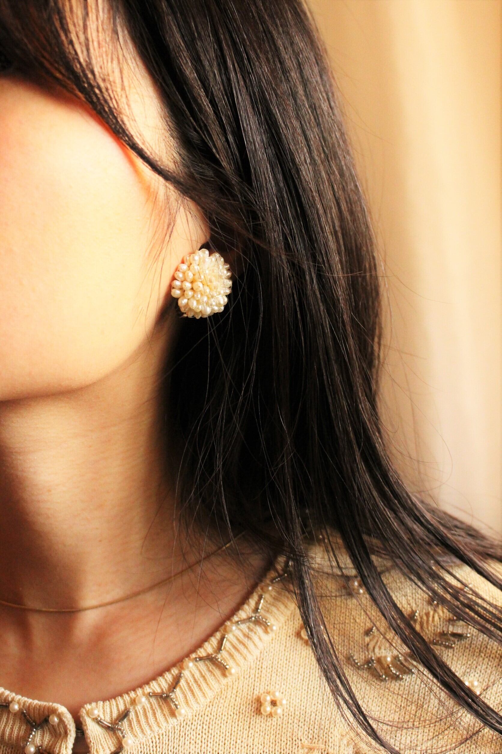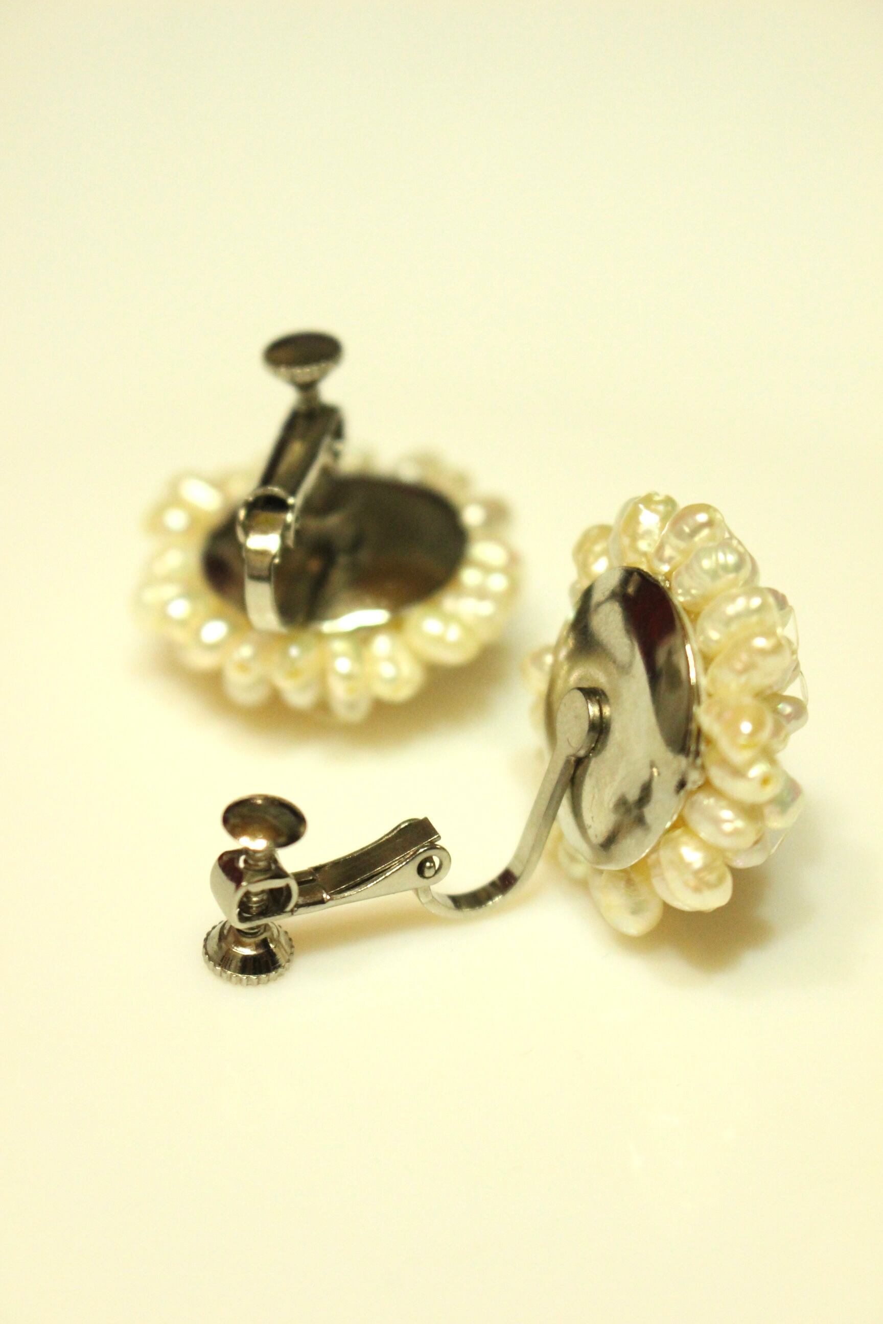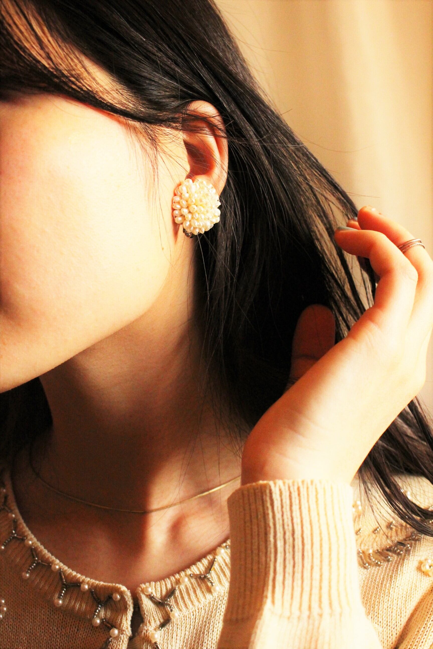 スモールパールビーズが華やかな、お花をモチーフにしたイヤリング。