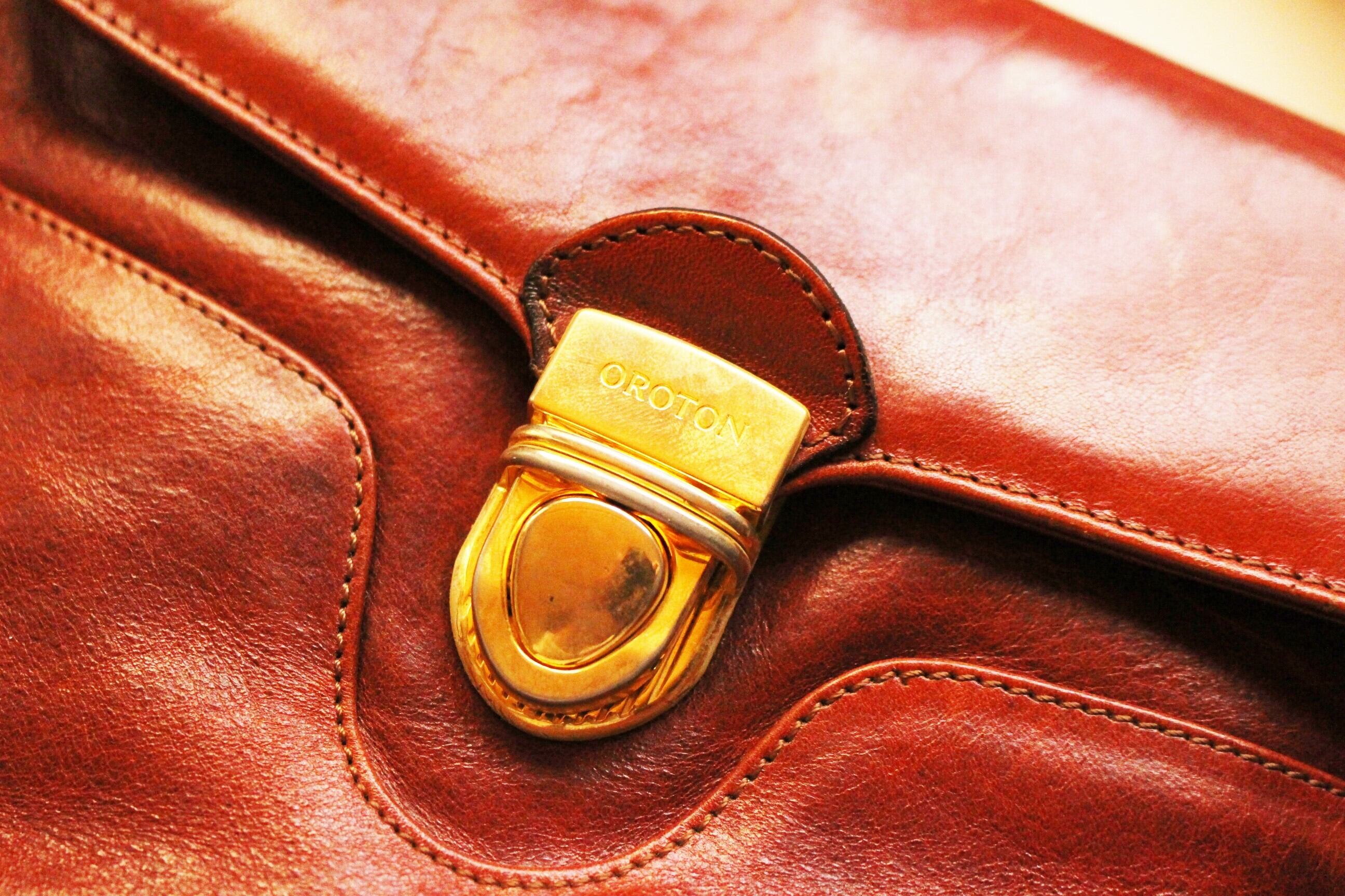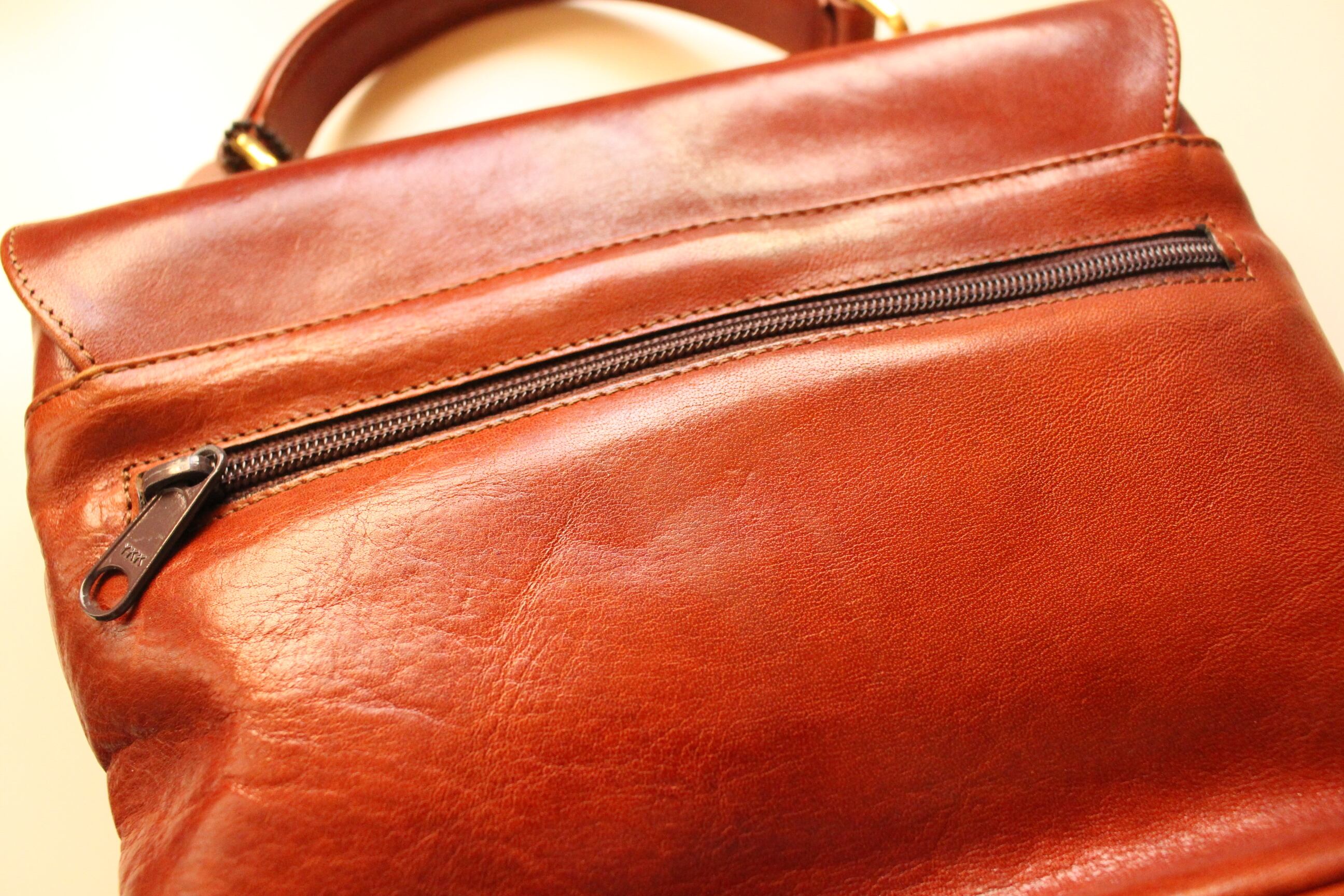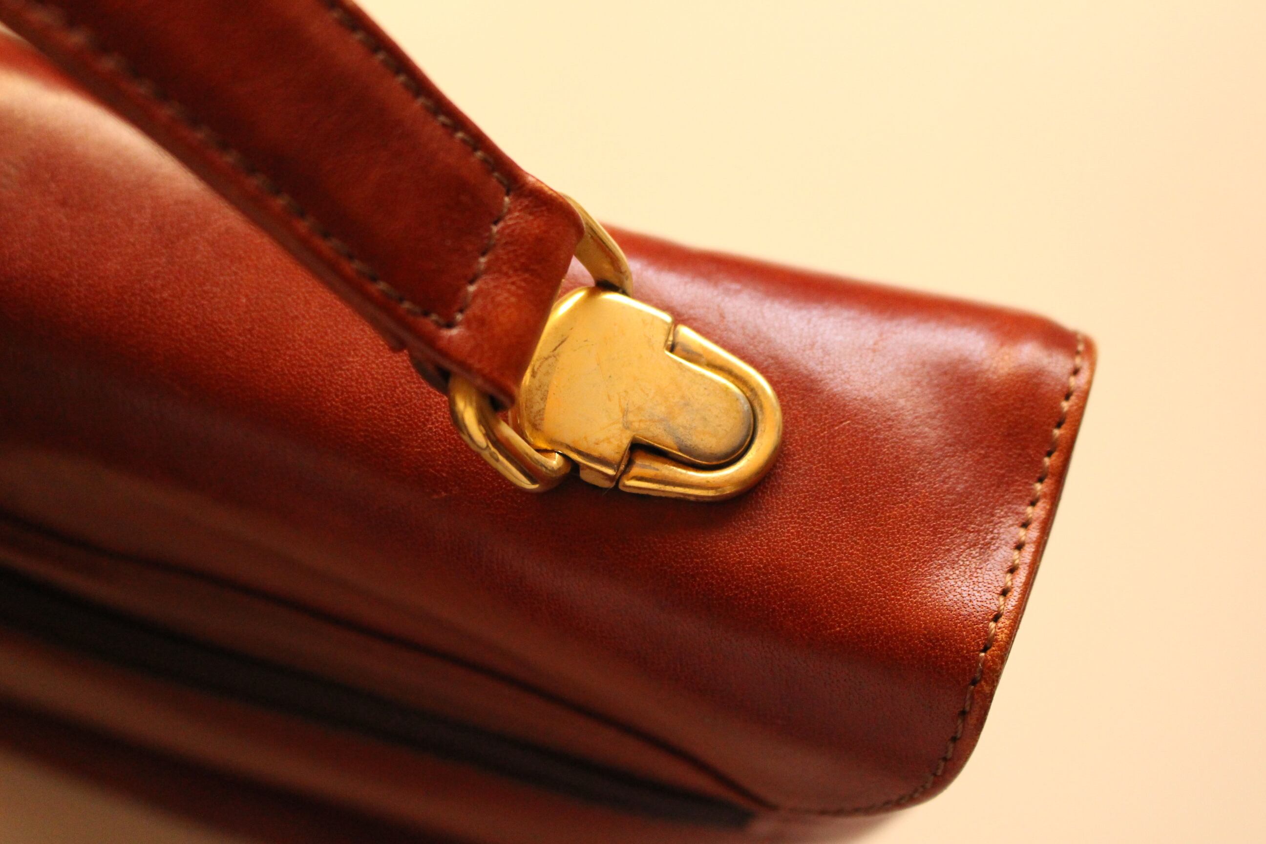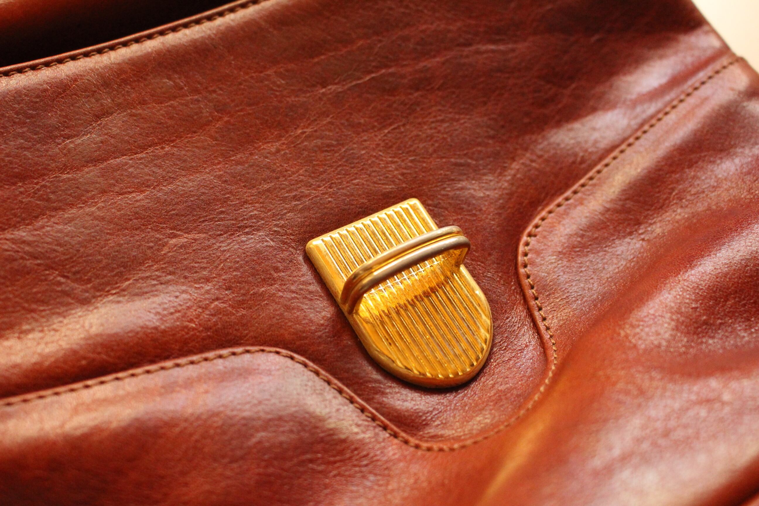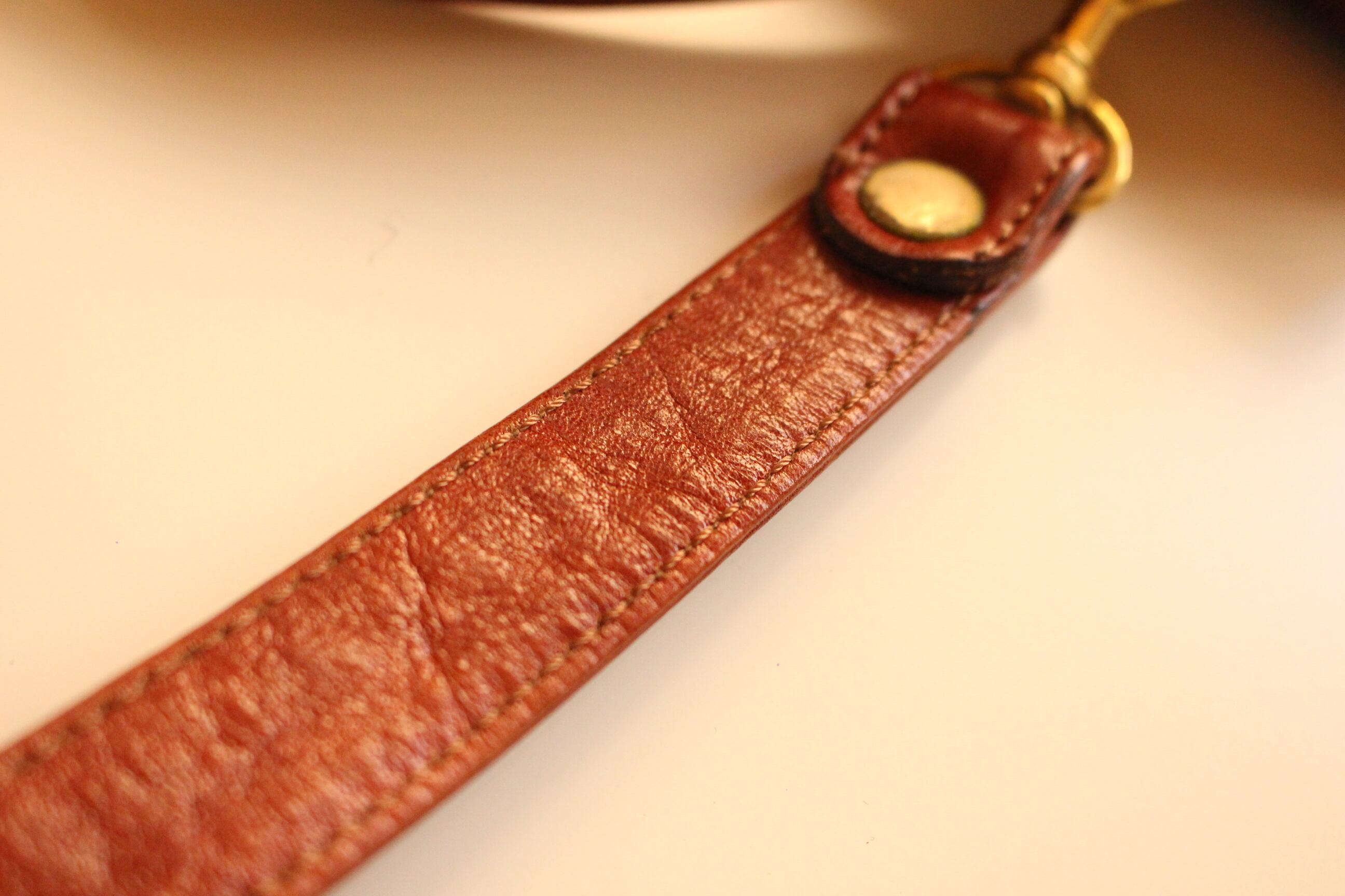 温かみのある明るいトーンの赤茶色のLeather生地に、ゴールドのコントラストがとてもきれいな一点です。