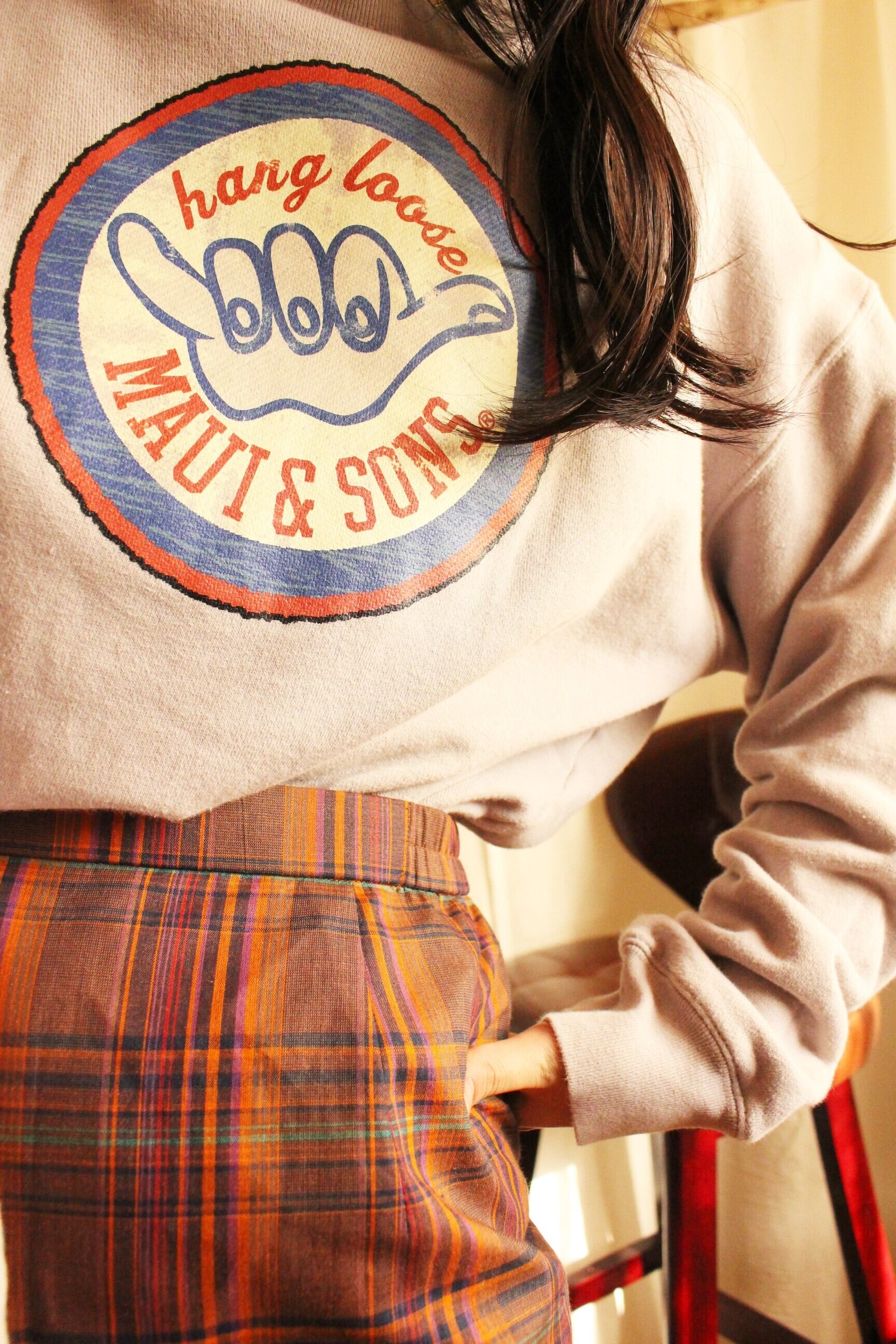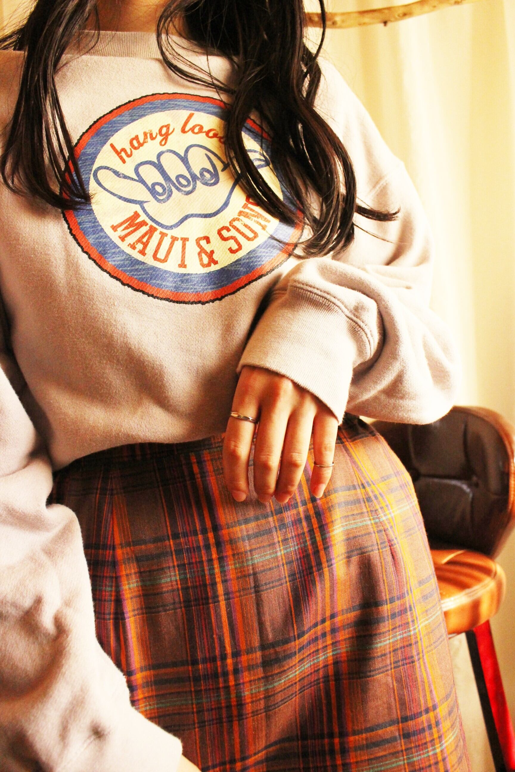 ウォームカラーで温かみのあるチェック柄。