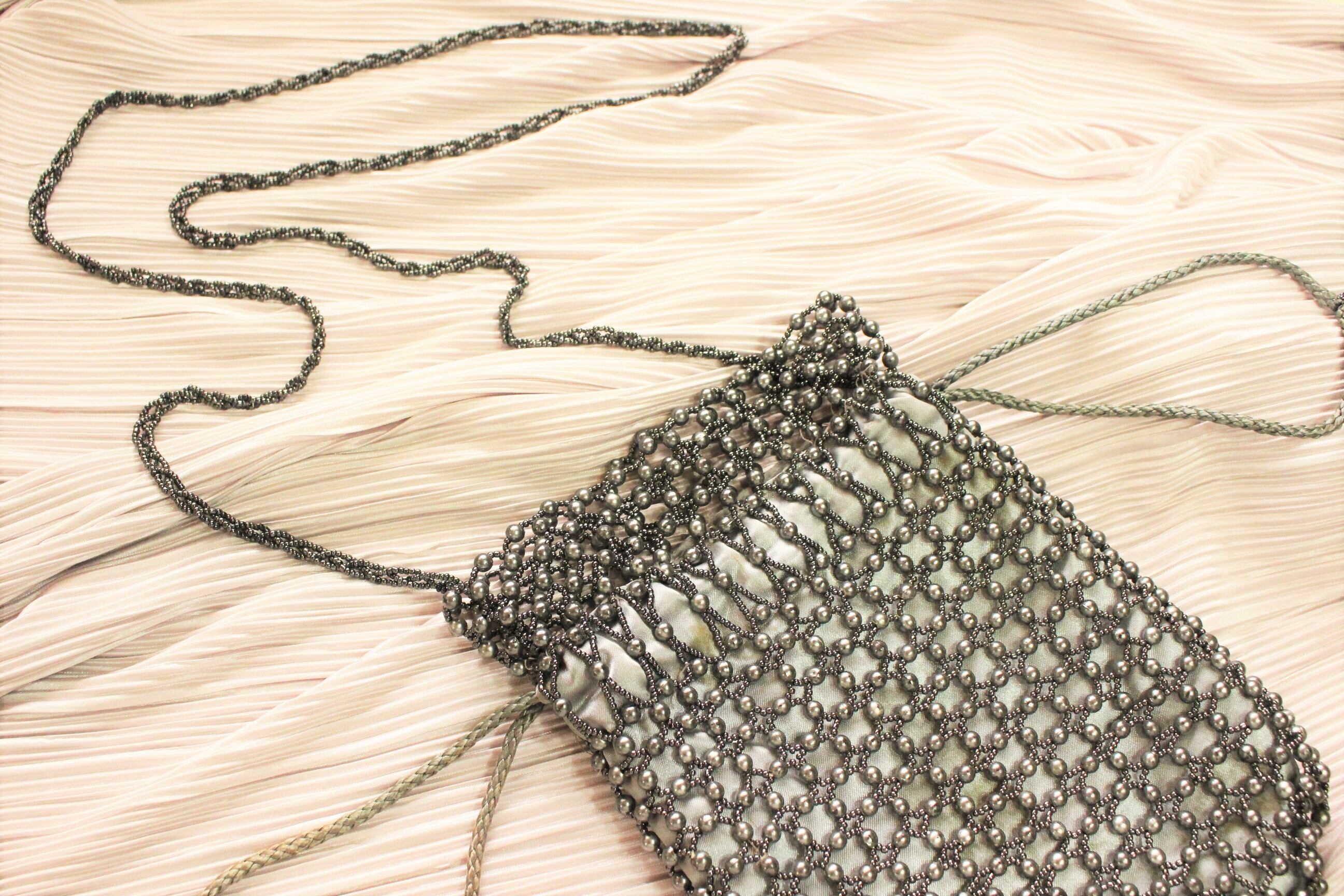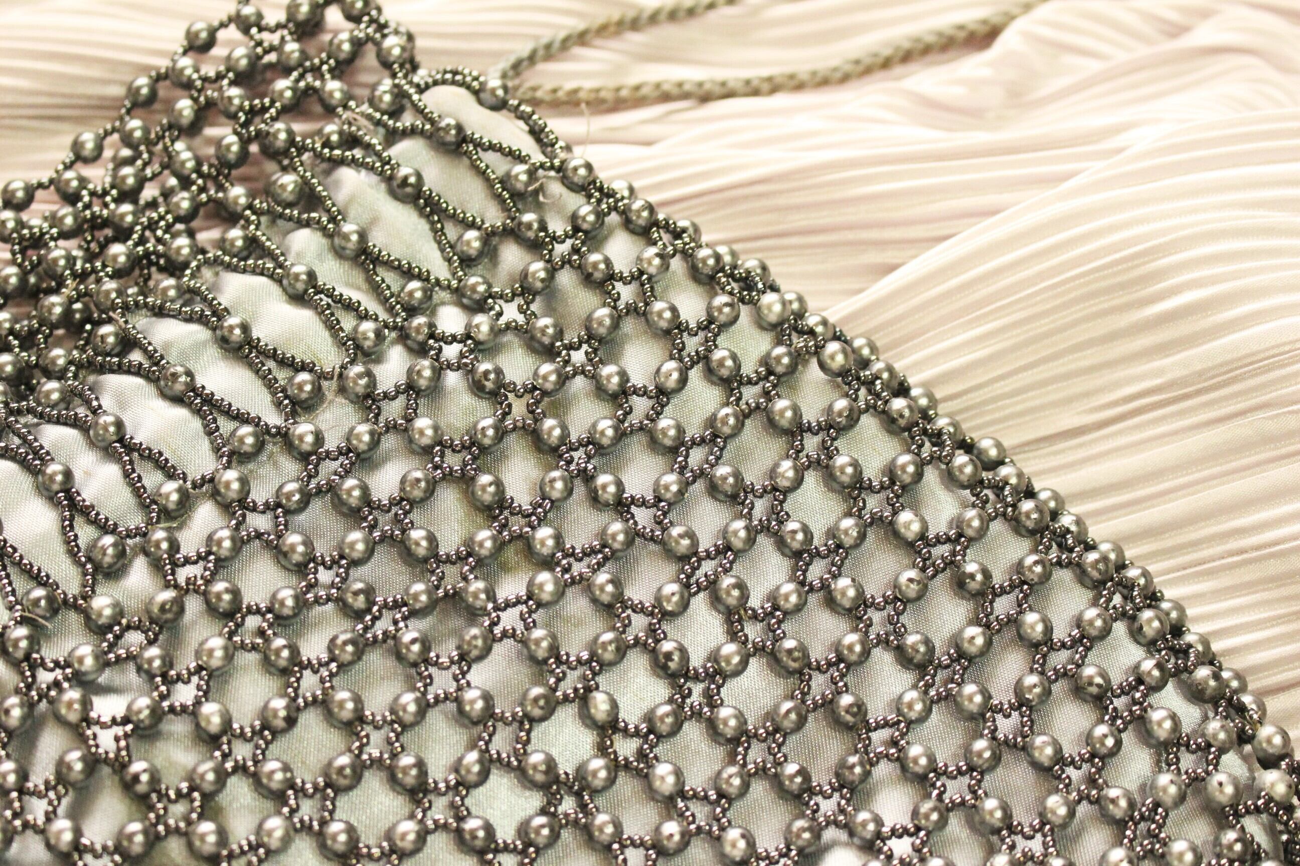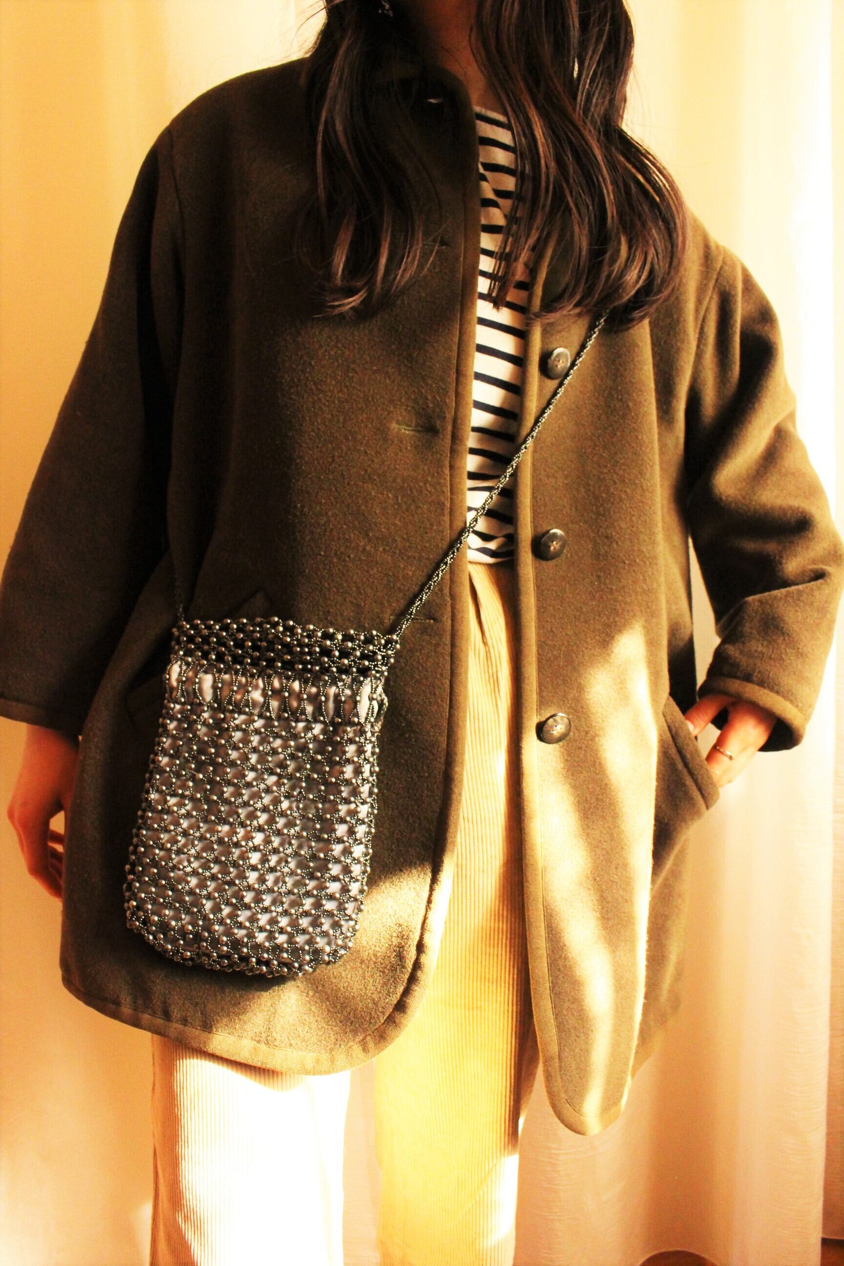 ビーズ shoulder バッグ シルバー
