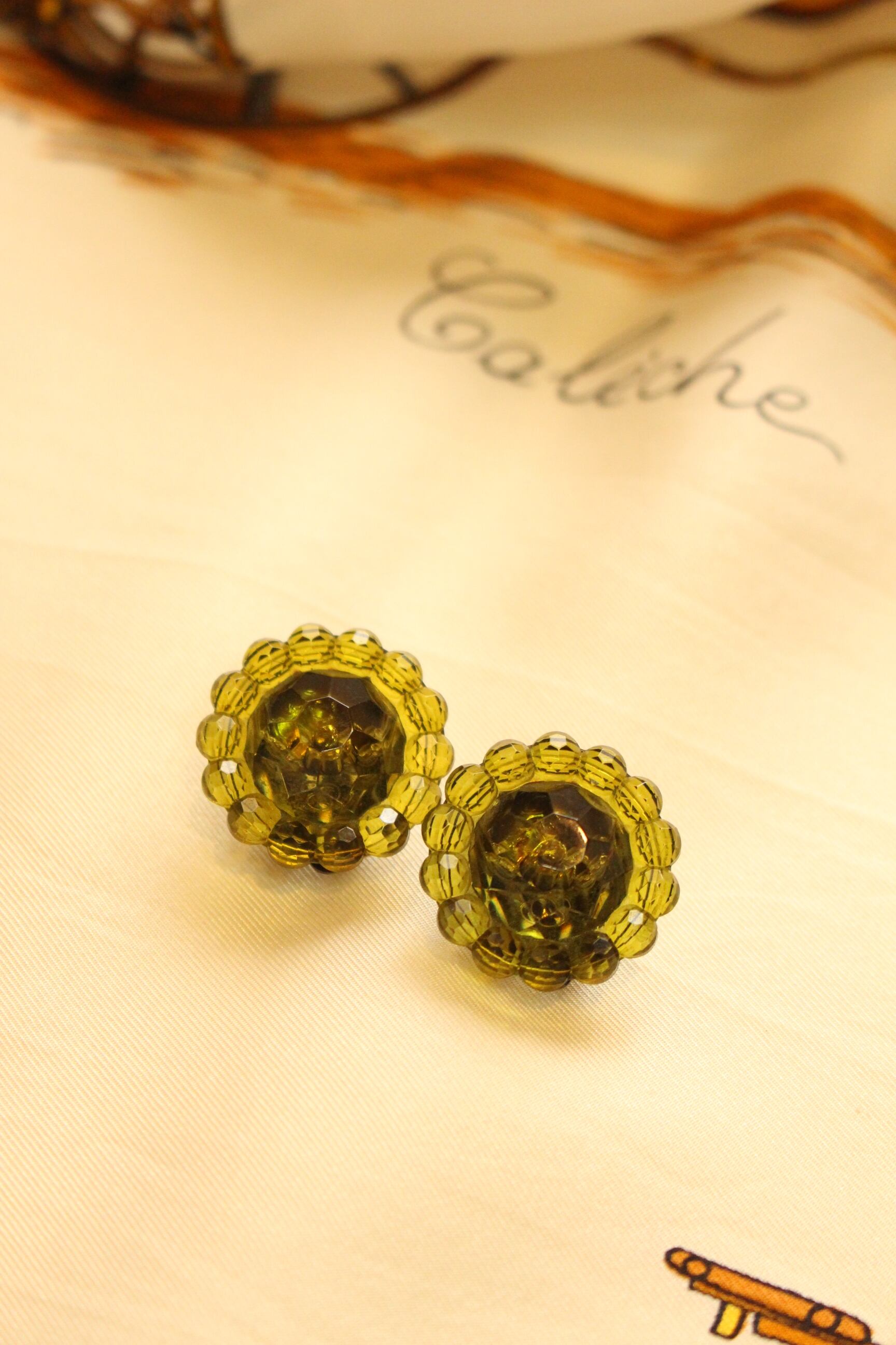 透き通るグリーンのイヤリング。
