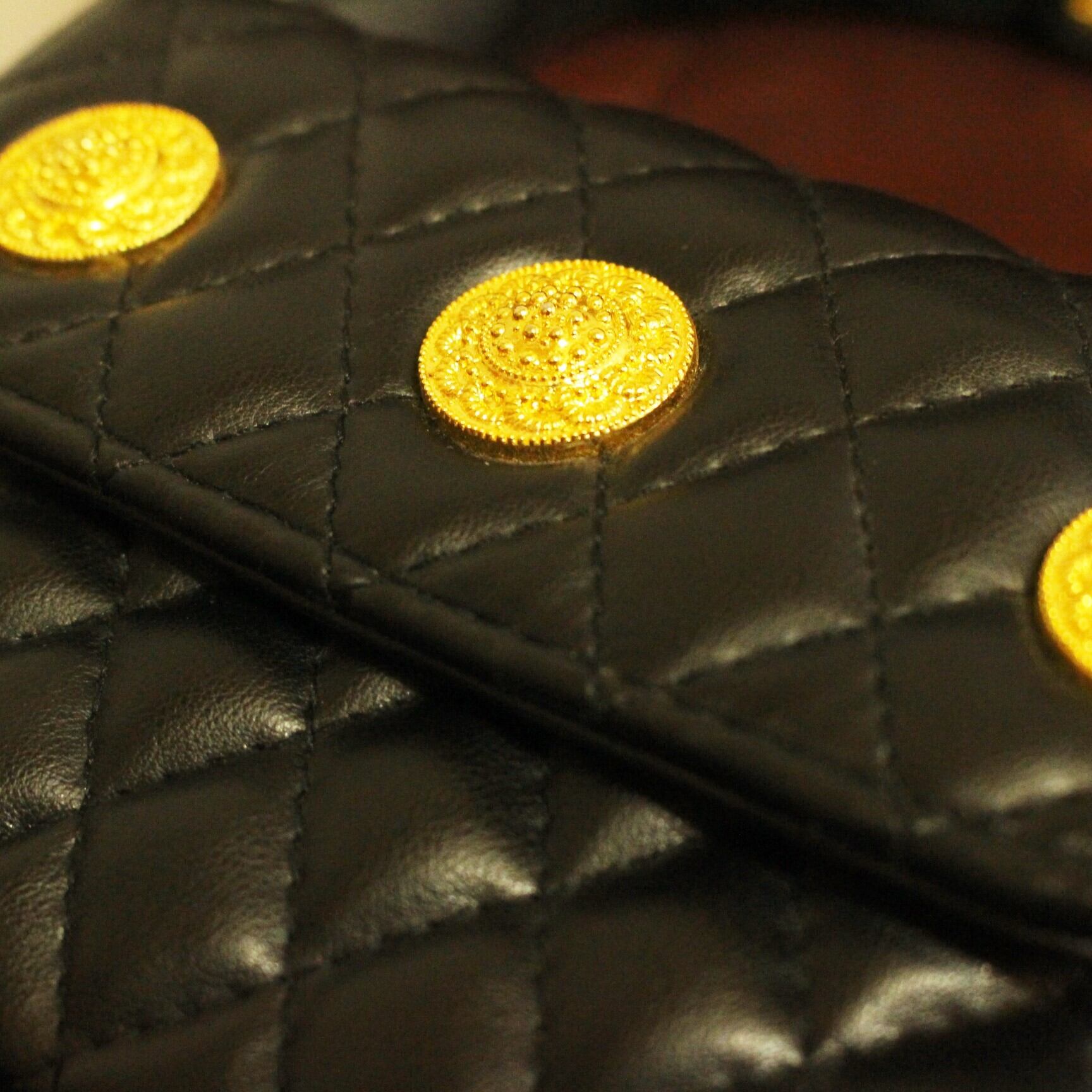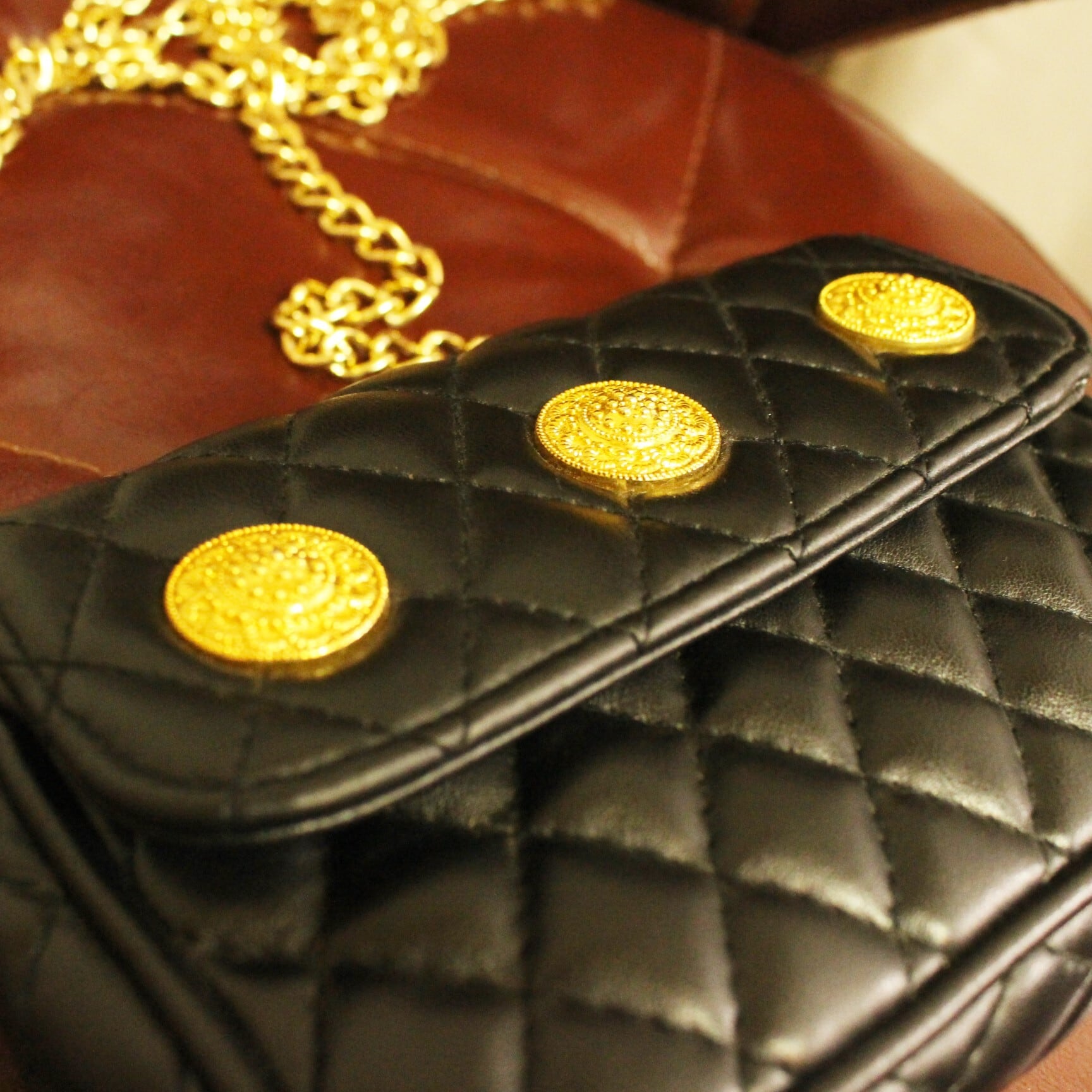 フロントのgoldの飾りが存在感をもち、goldのチェーンも華やかでパーティーなどにも◎
