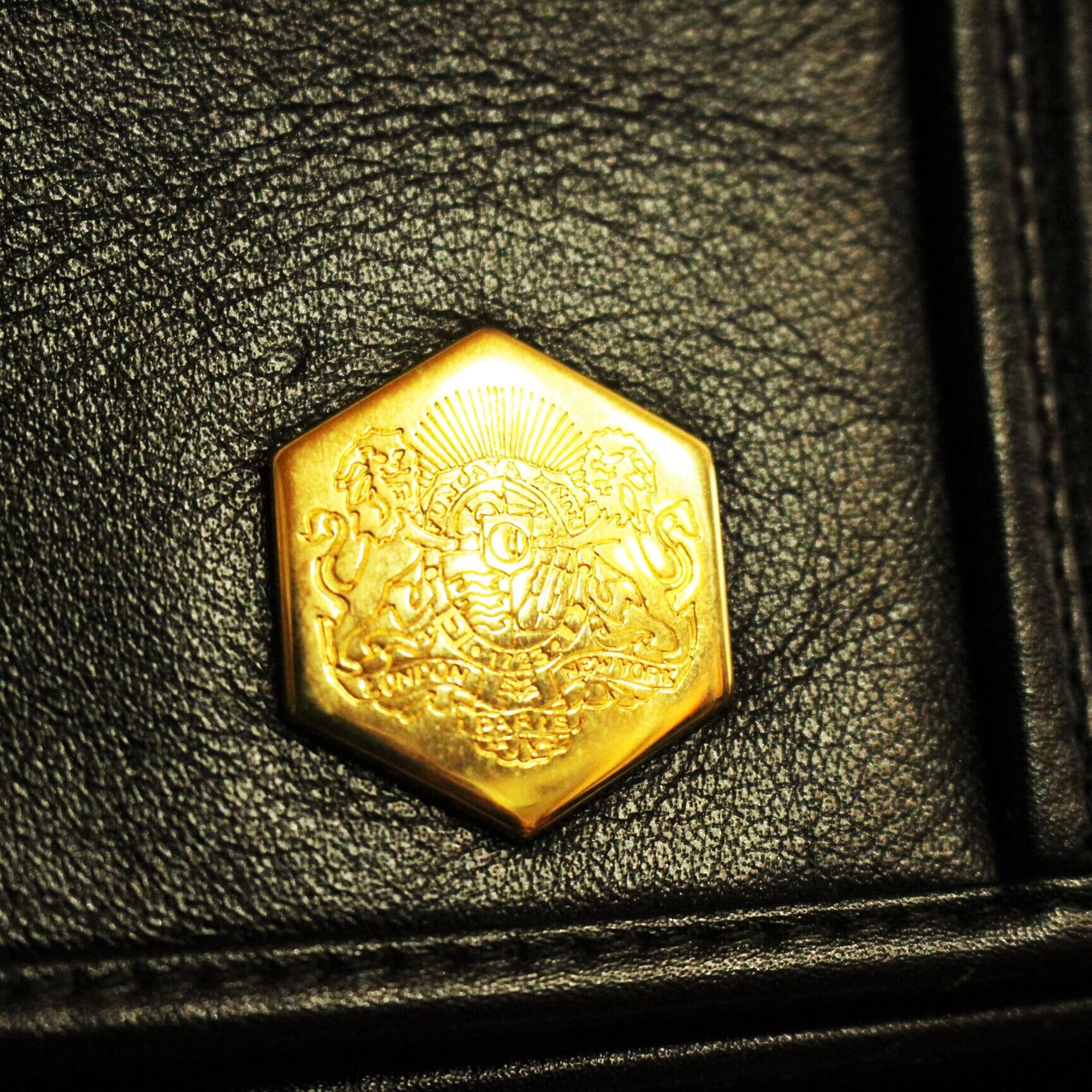 GoldとBlackのコントラストが美しく、本革も裏地も傷なくとてもきれいな状態です。