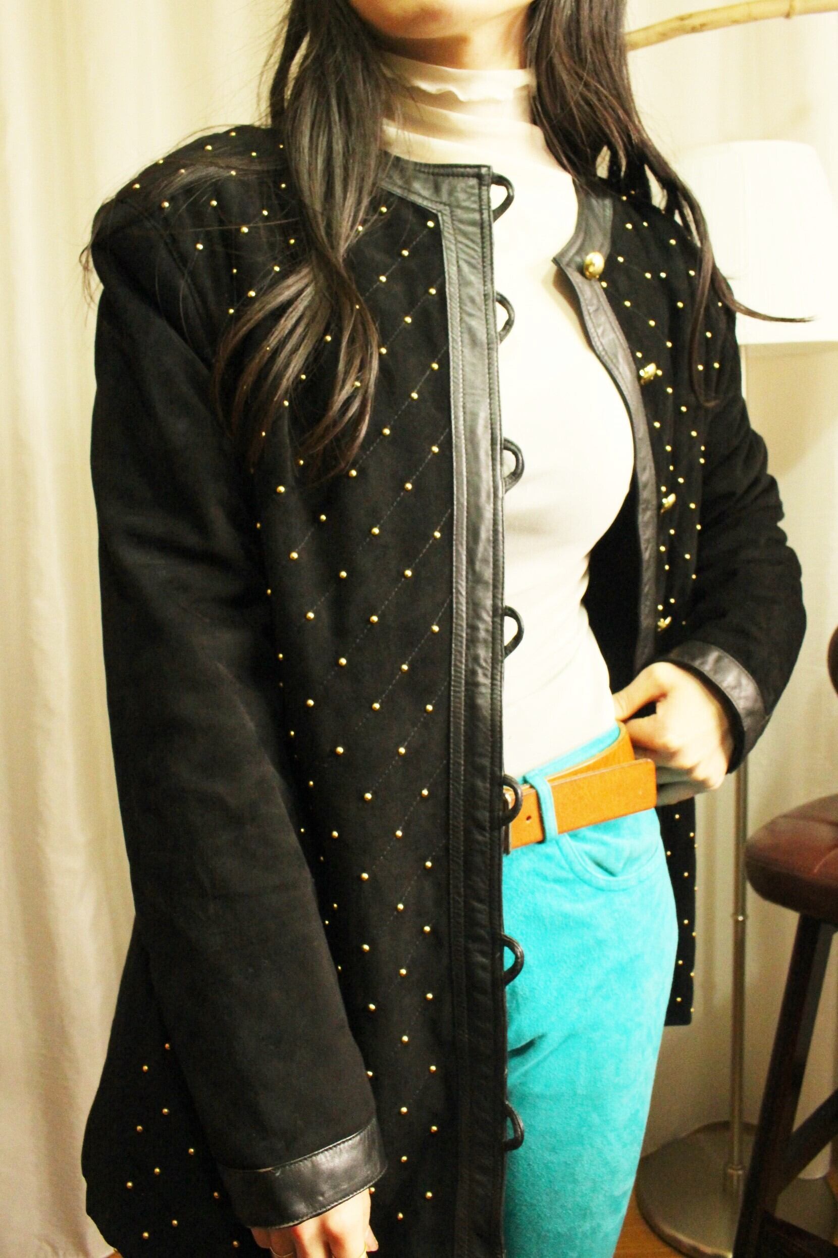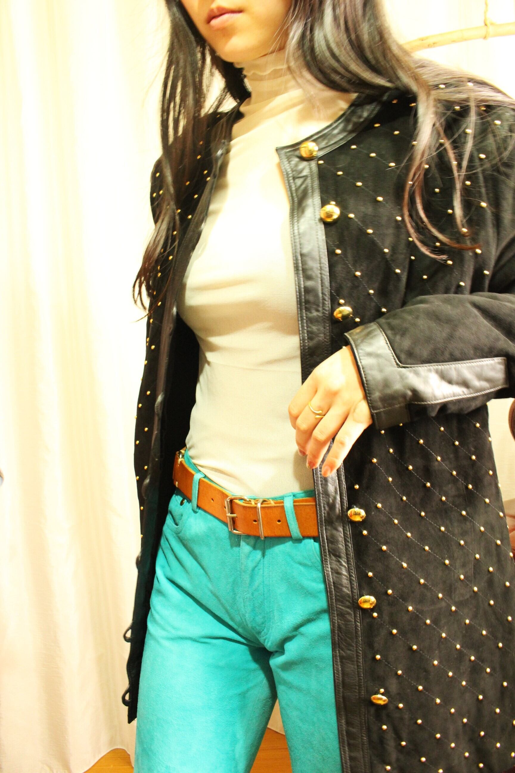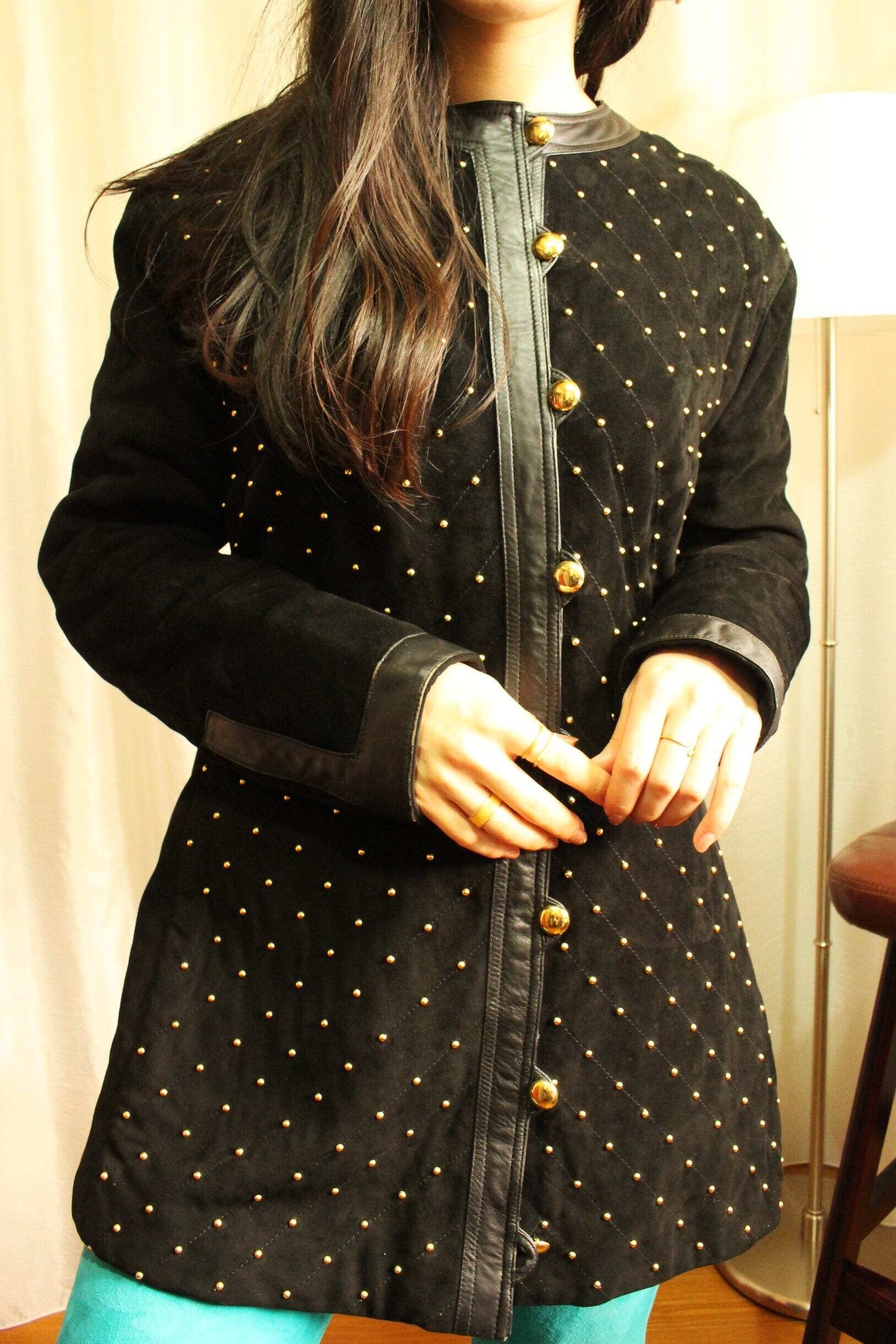 スウェード生地にgoldのビーズでドットがデザインされた華やかな印象。
