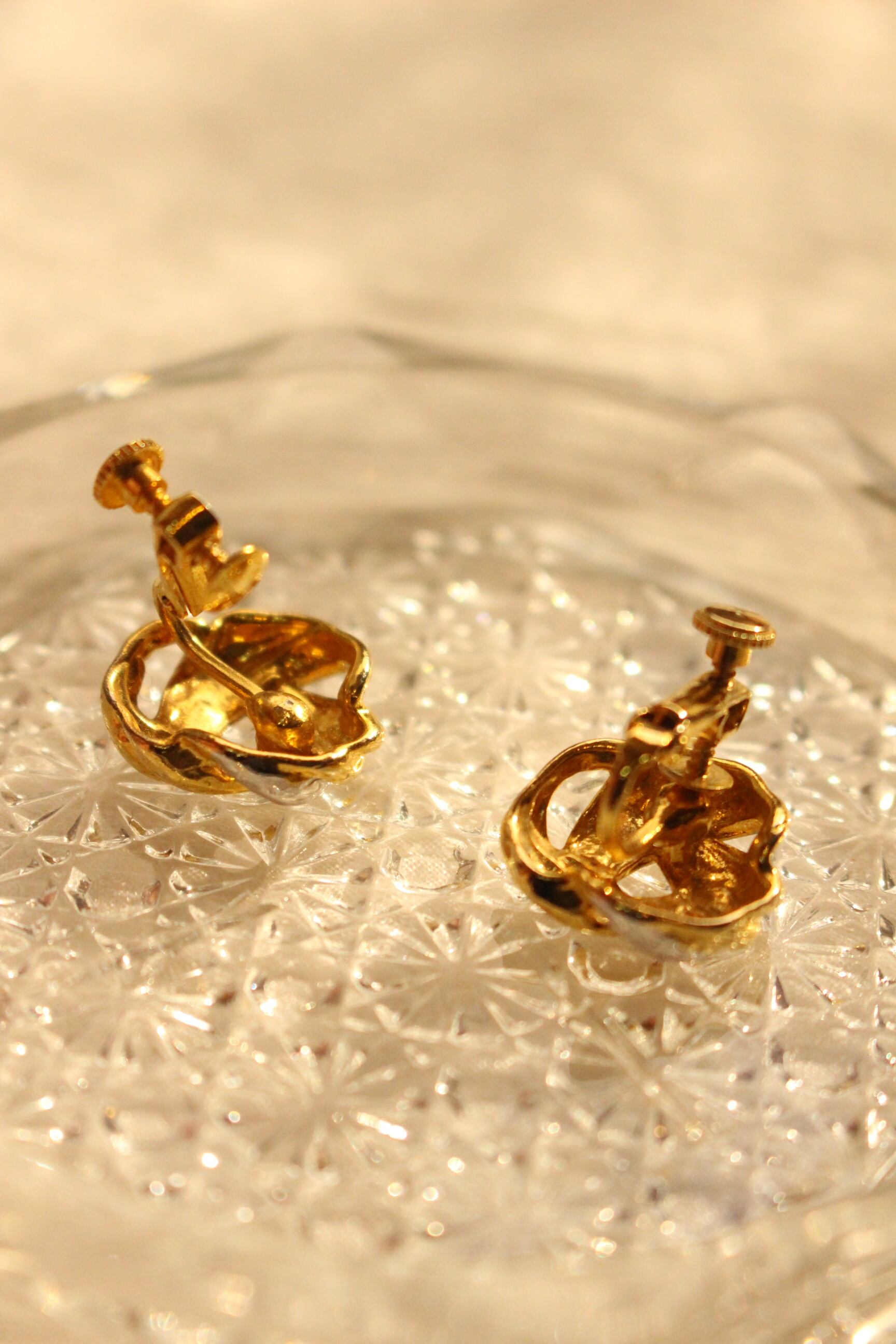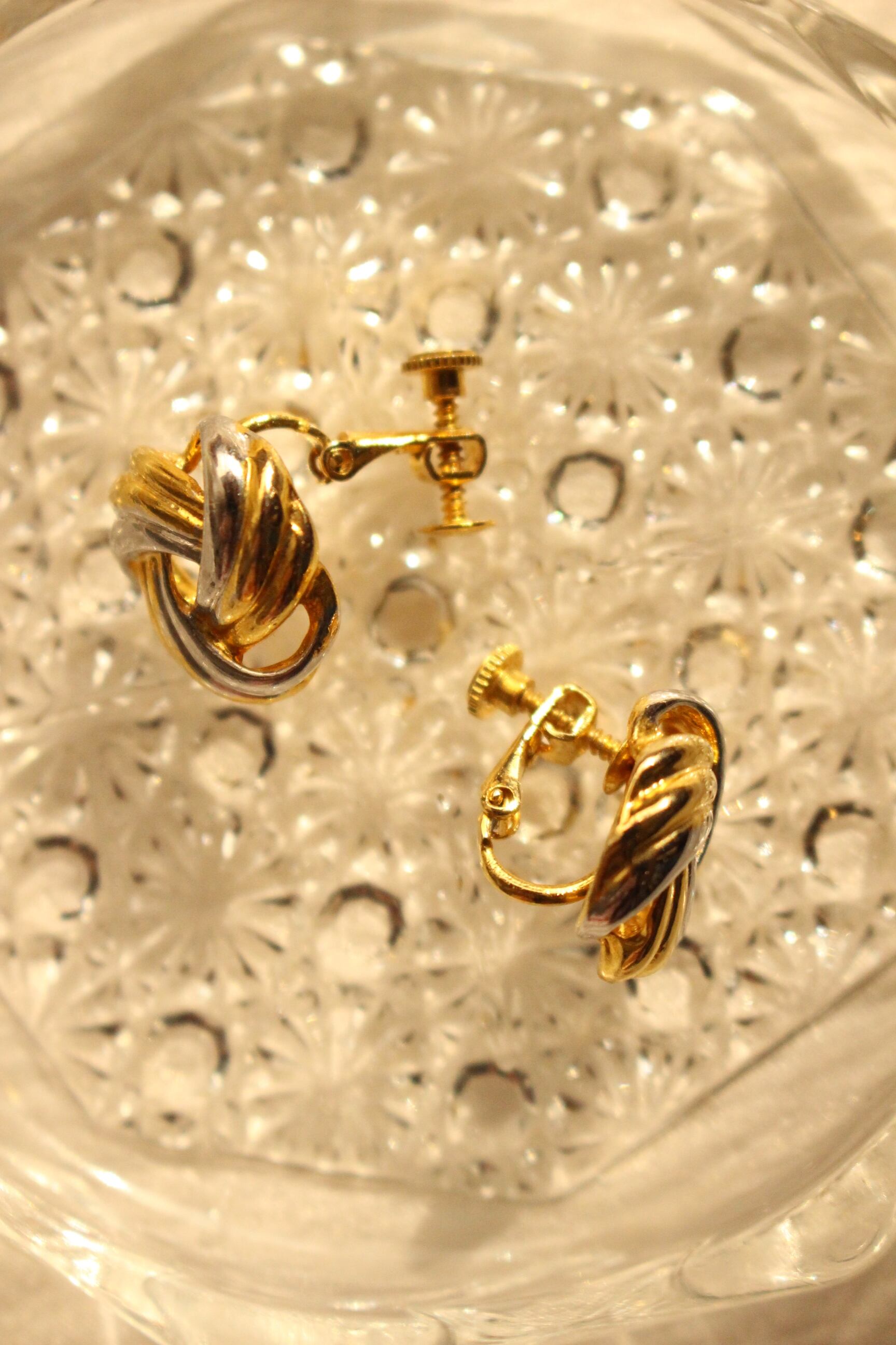 ゴールドとシルバーのコントラストがキレイな小ぶりのイヤリング。