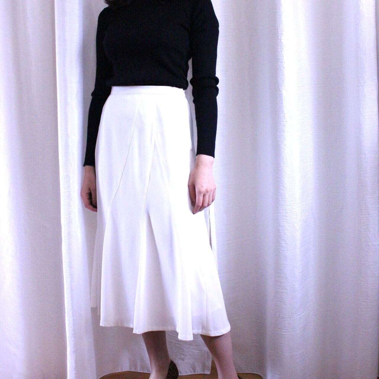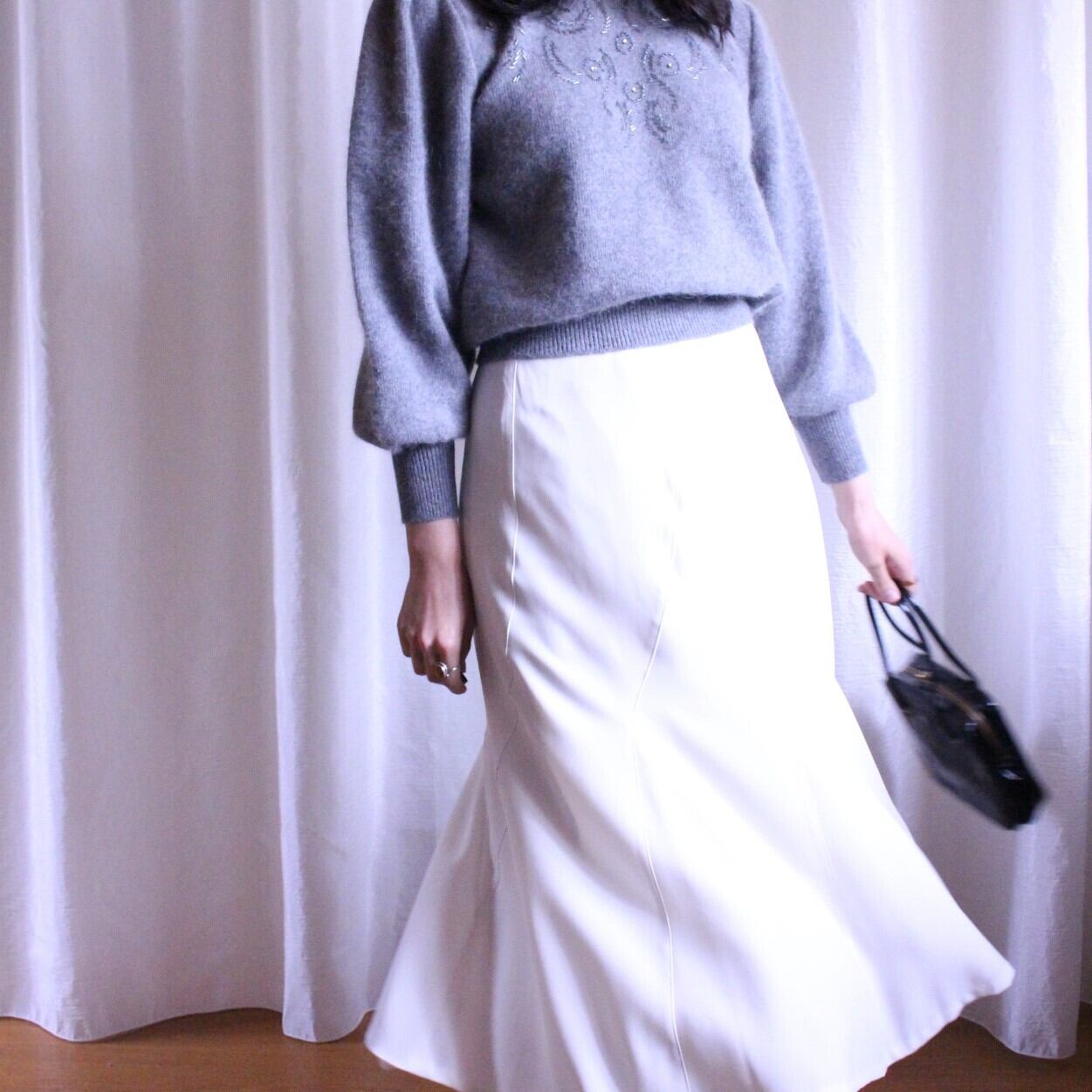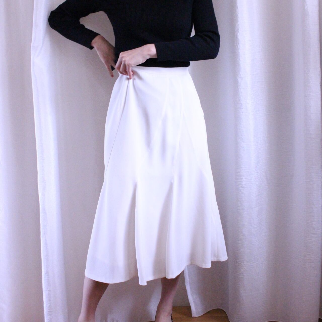 マーメイドスカートのようなシルエットのスカート。