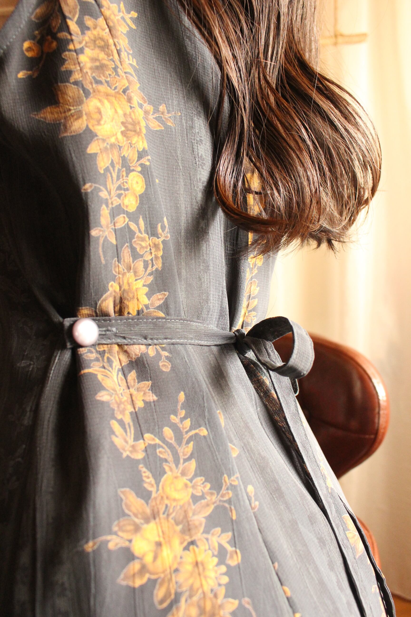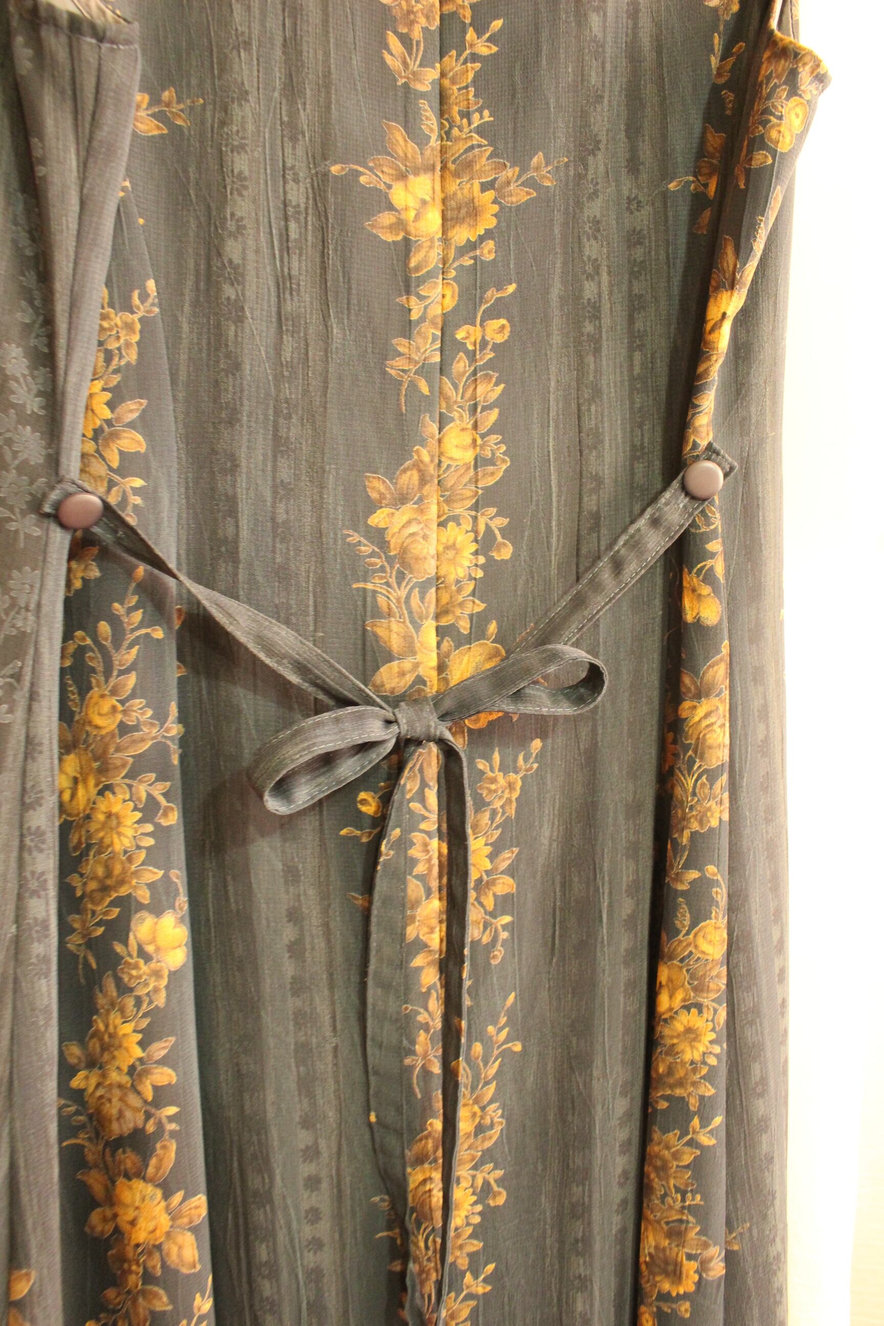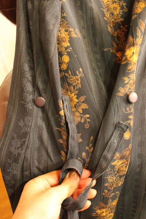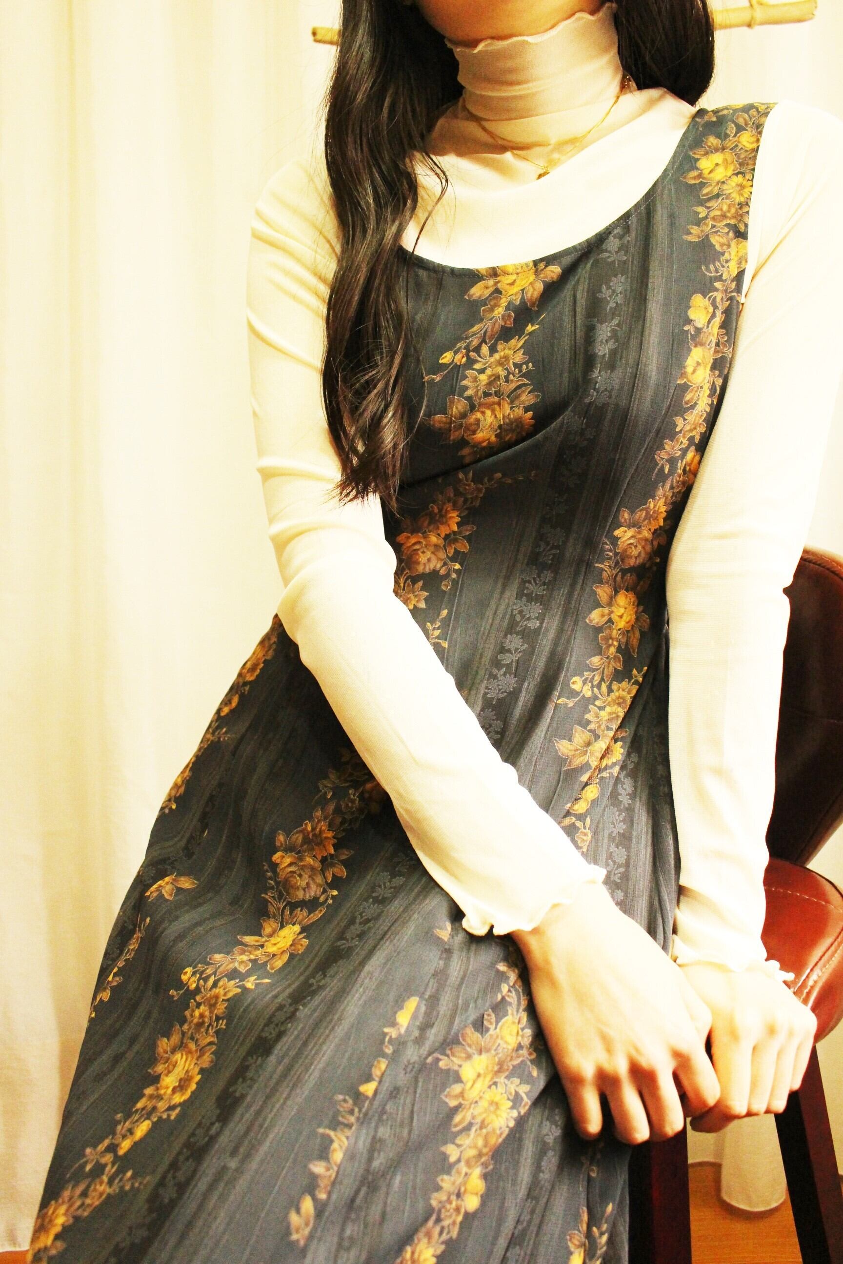 モスグリーンの生地に黄色い花柄がベストマッチ。