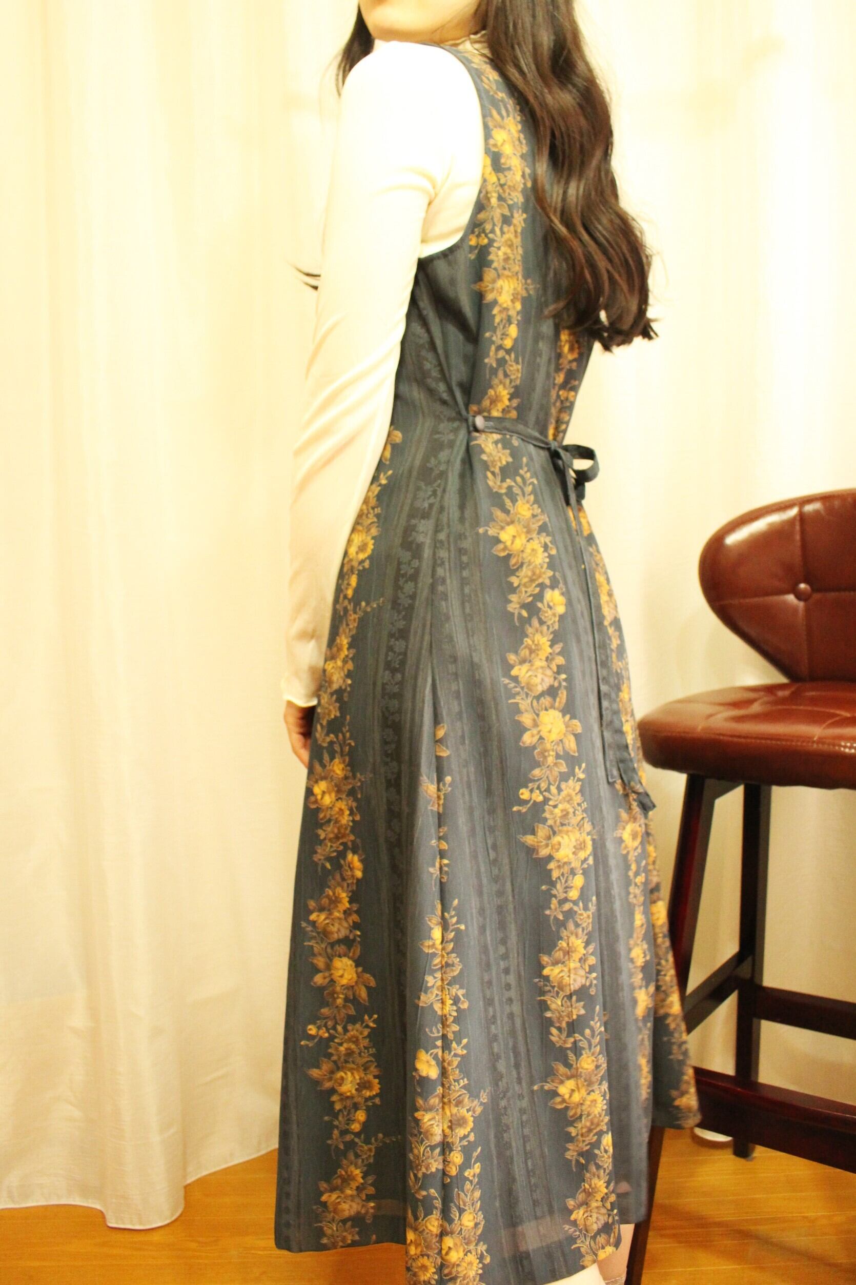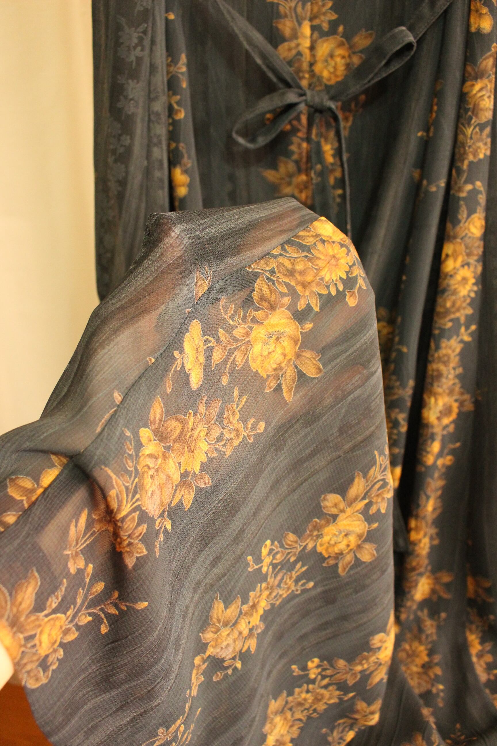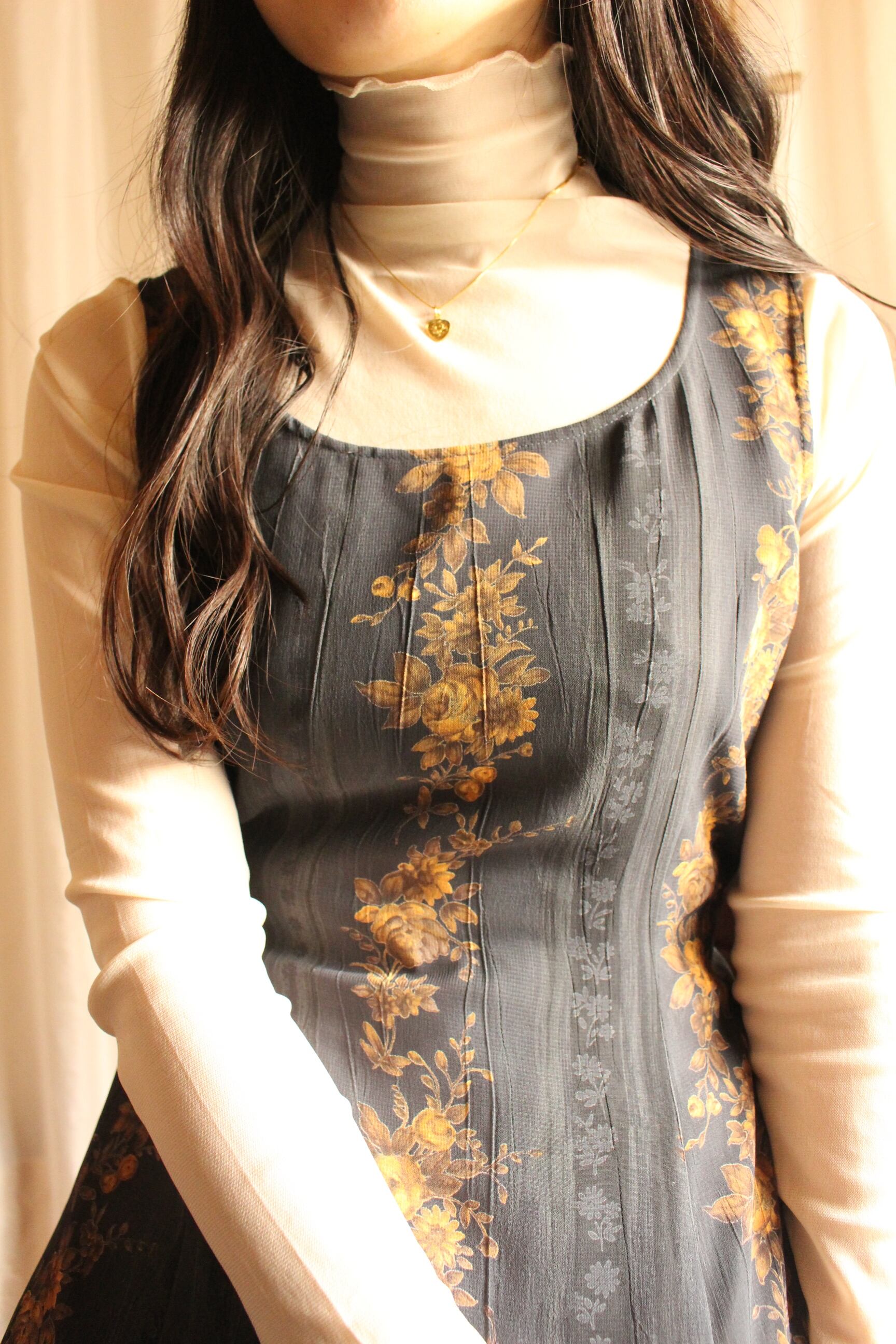 モスグリーンの生地に黄色い花柄がベストマッチ。