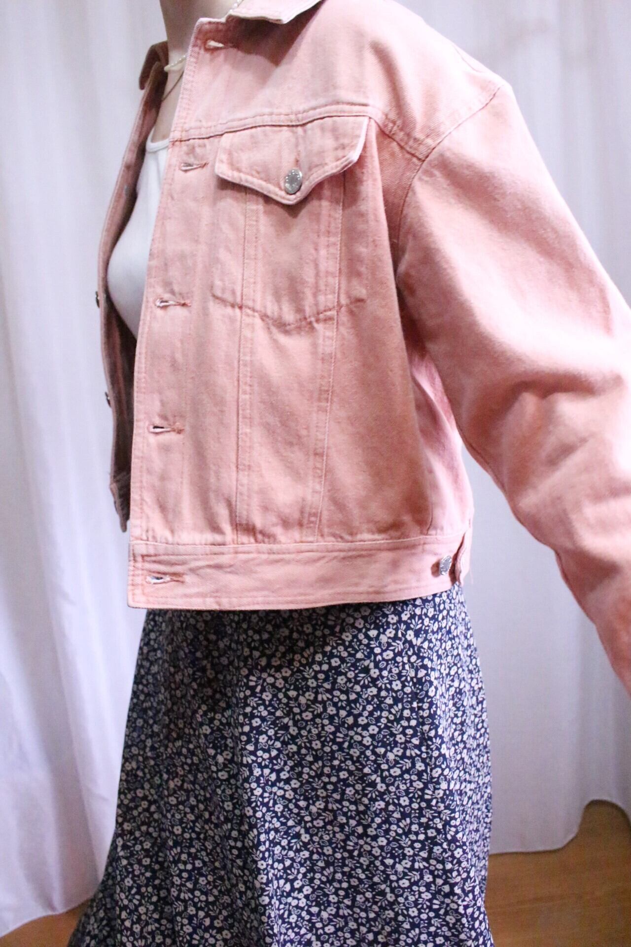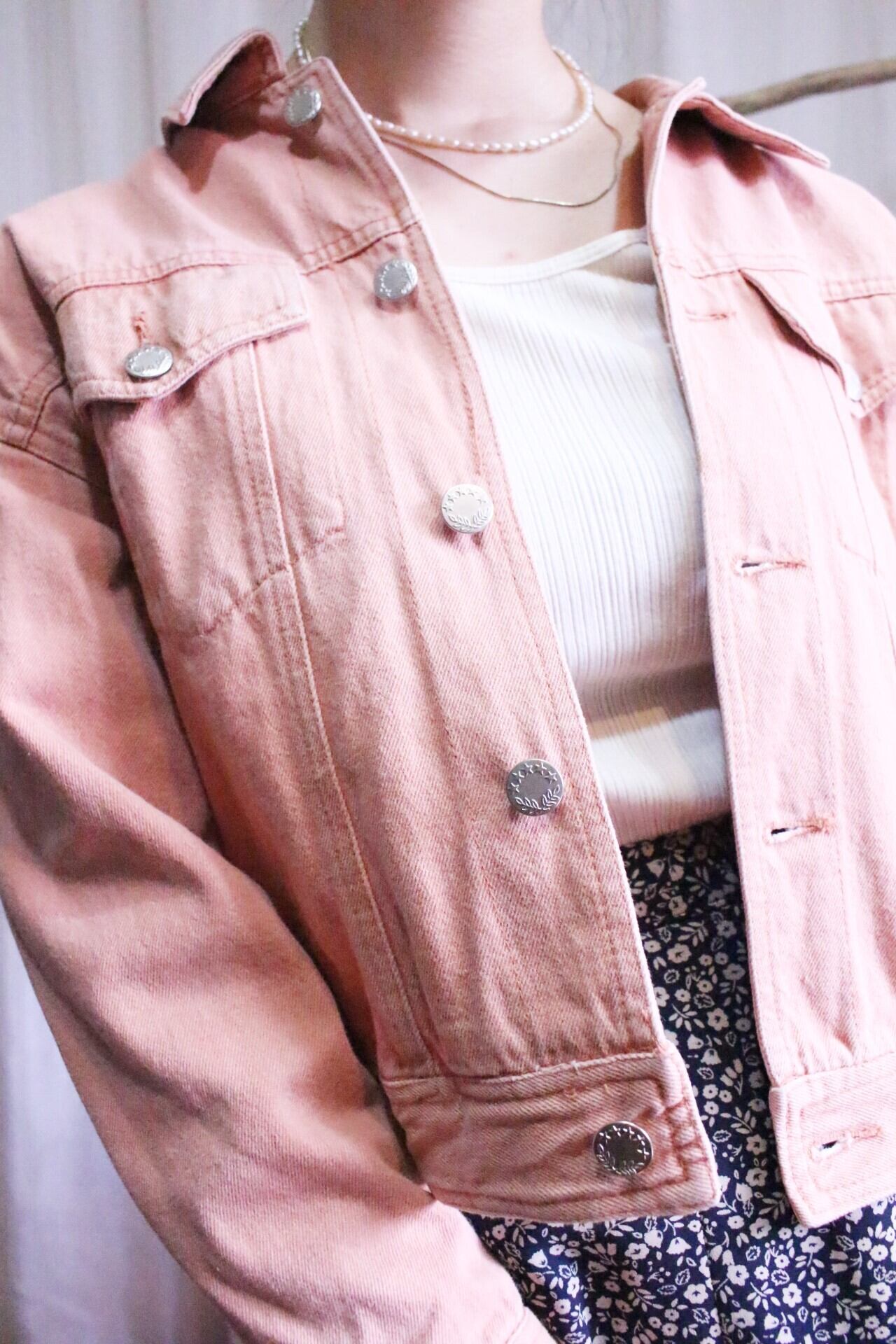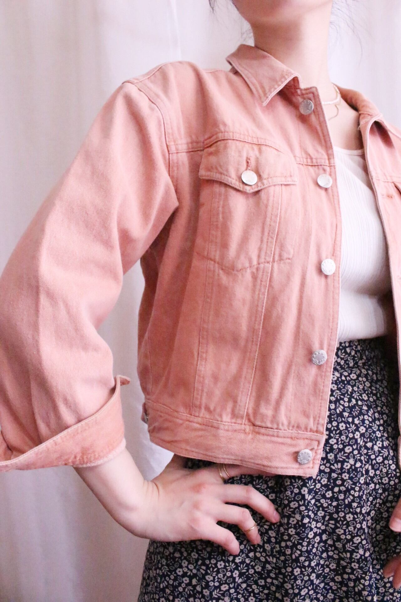 デニムジャケットに差をつけられるサーモンピンクカラーで春らしさ全開◎