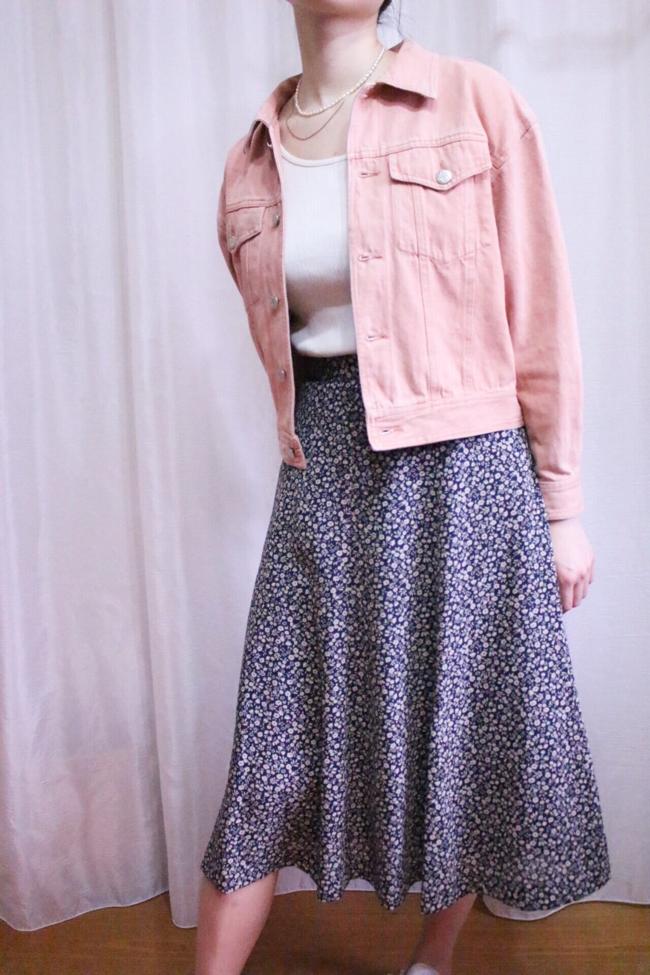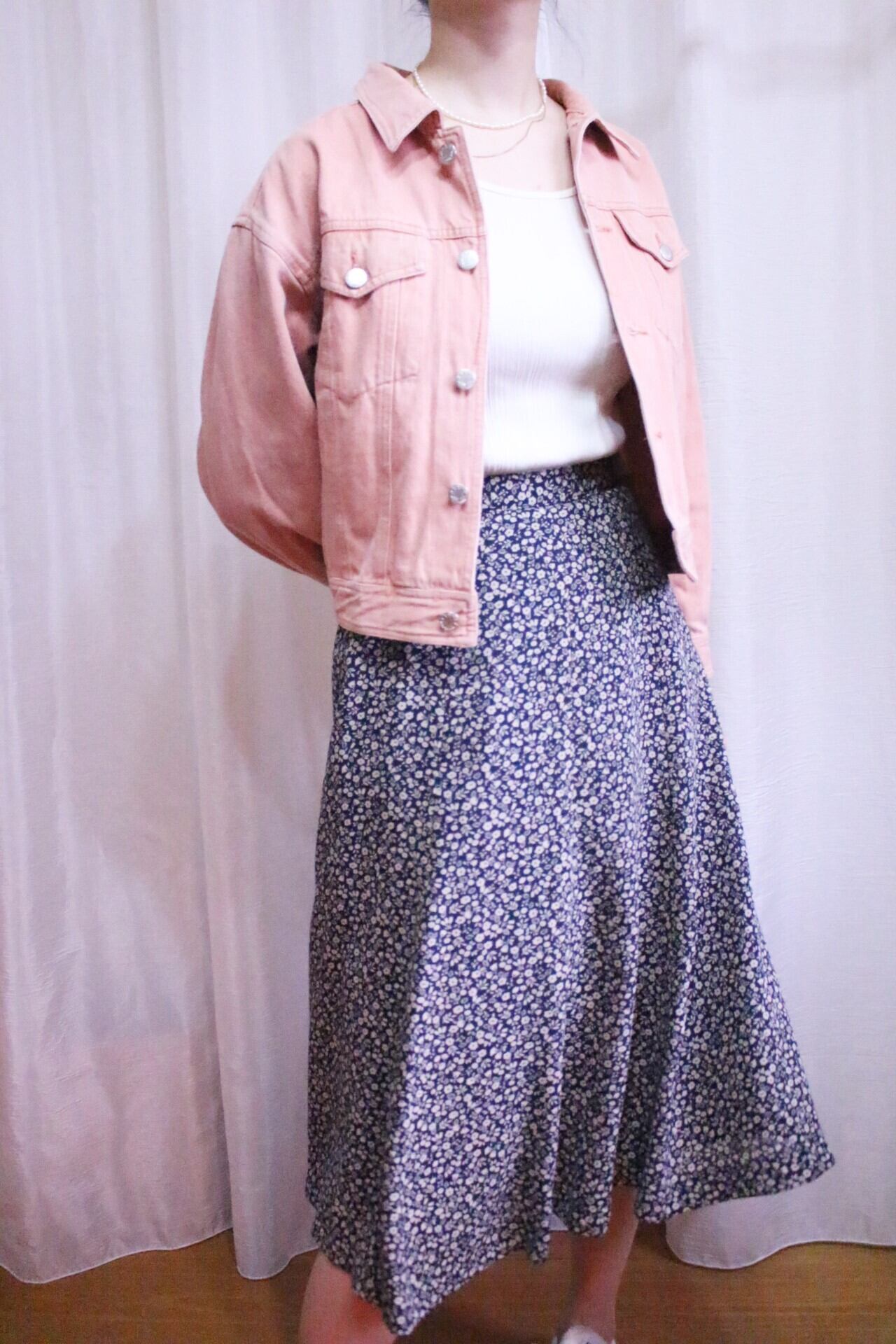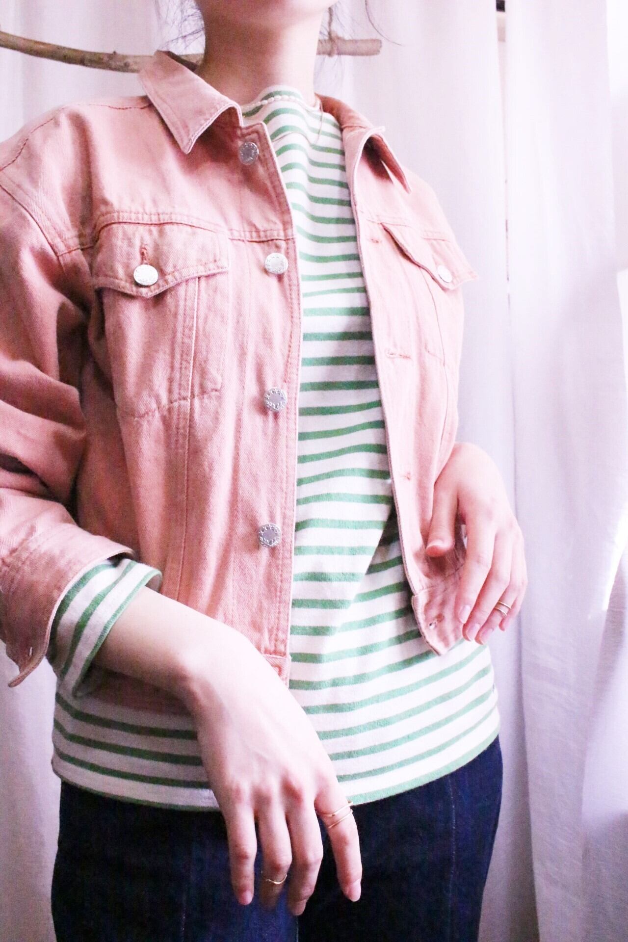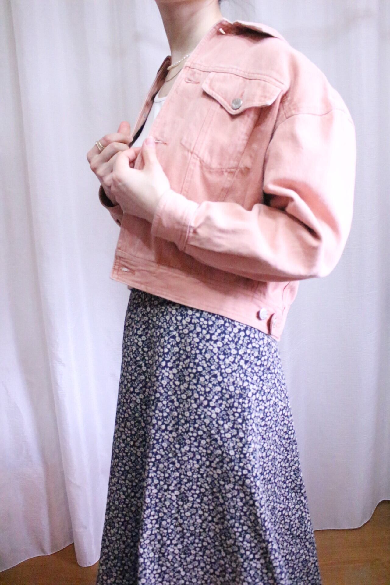 デニムジャケットに差をつけられるサーモンピンクカラーで春らしさ全開◎
