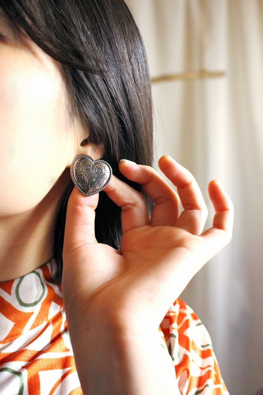 メタリックなハートがカッコかわいいピアス。