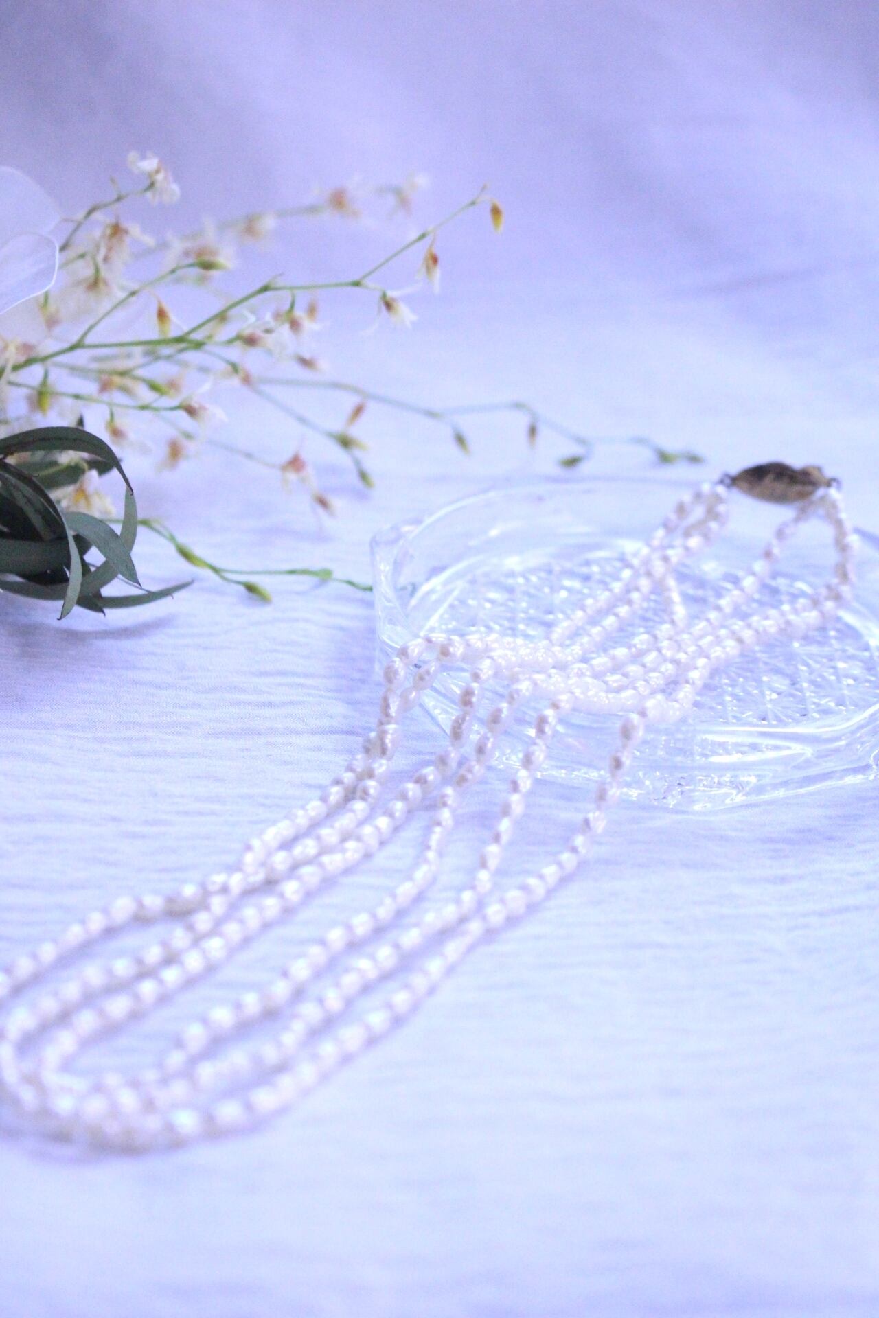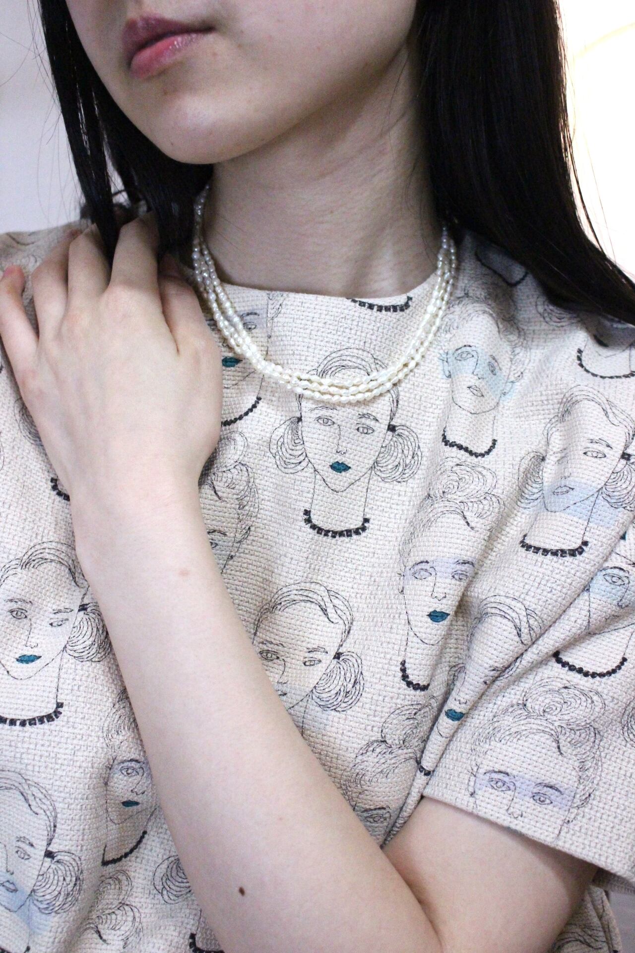 3連の淡水パールネックレス。