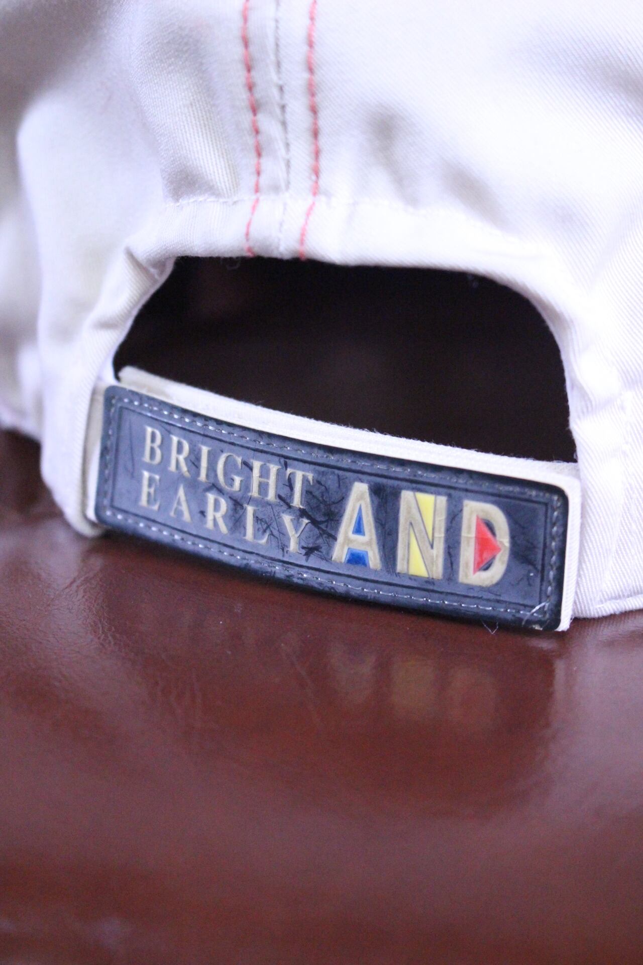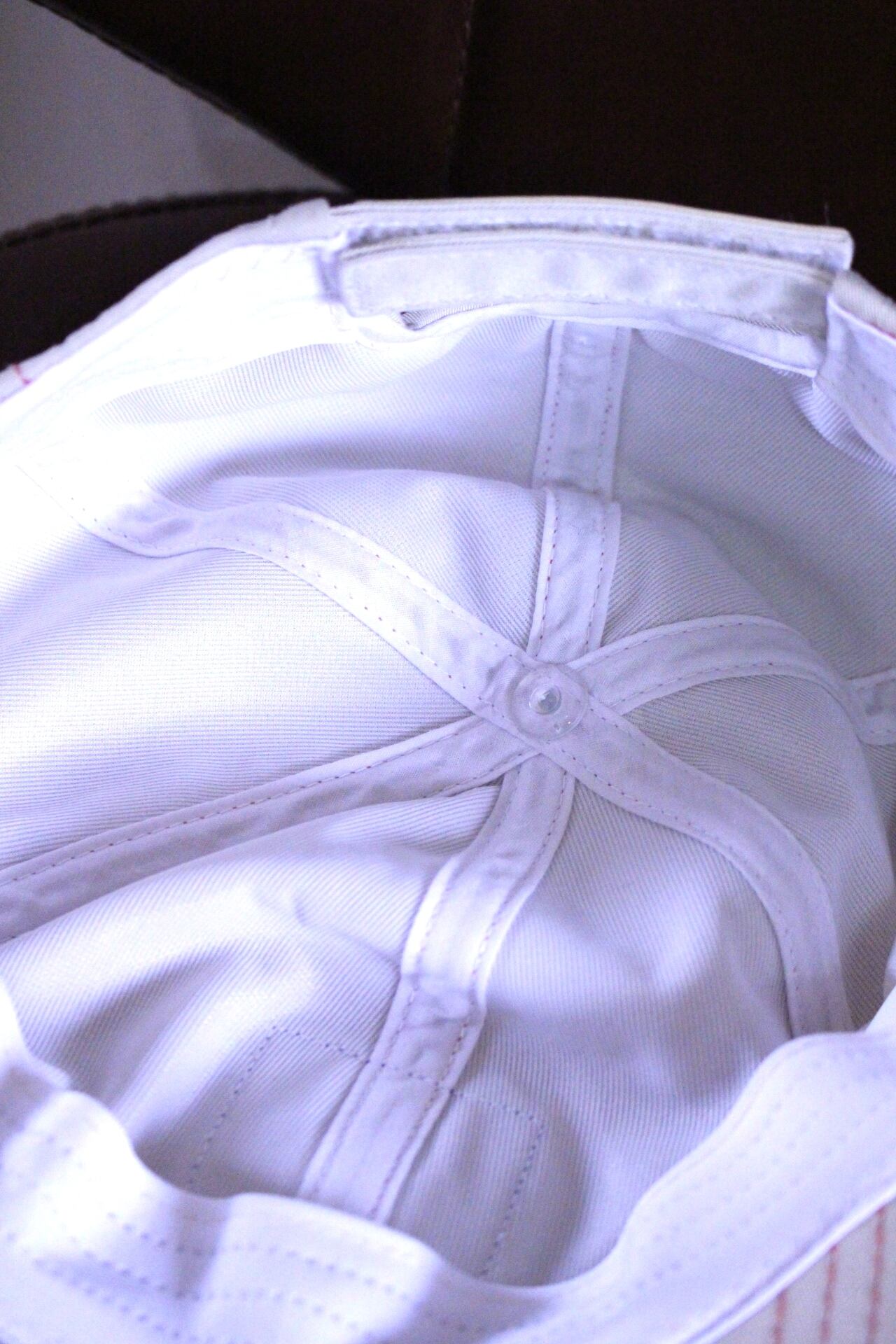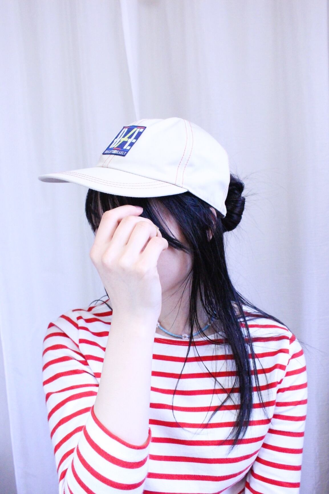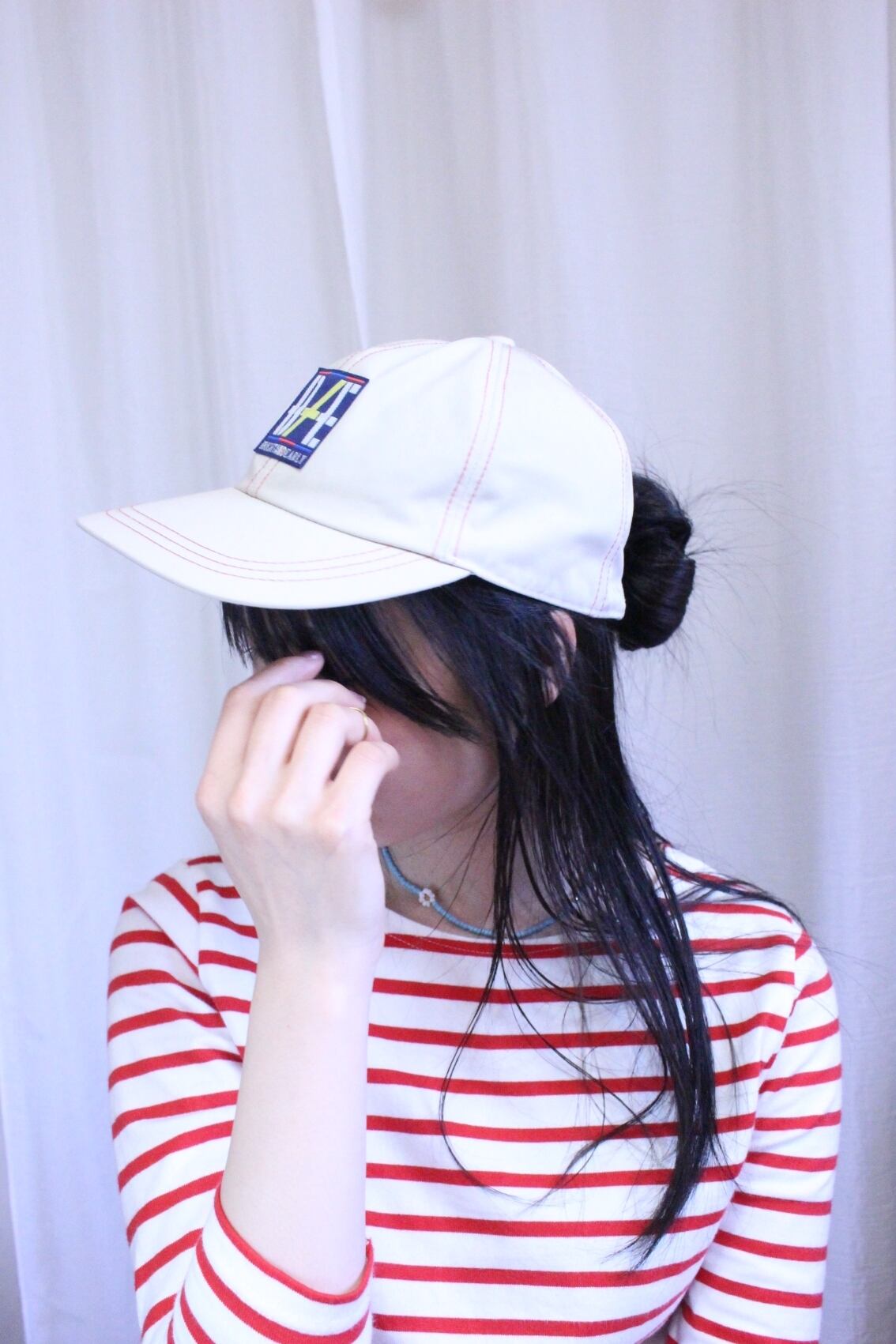 シンプルなオフホワイトカラーにワッペンが主役のキャップ。