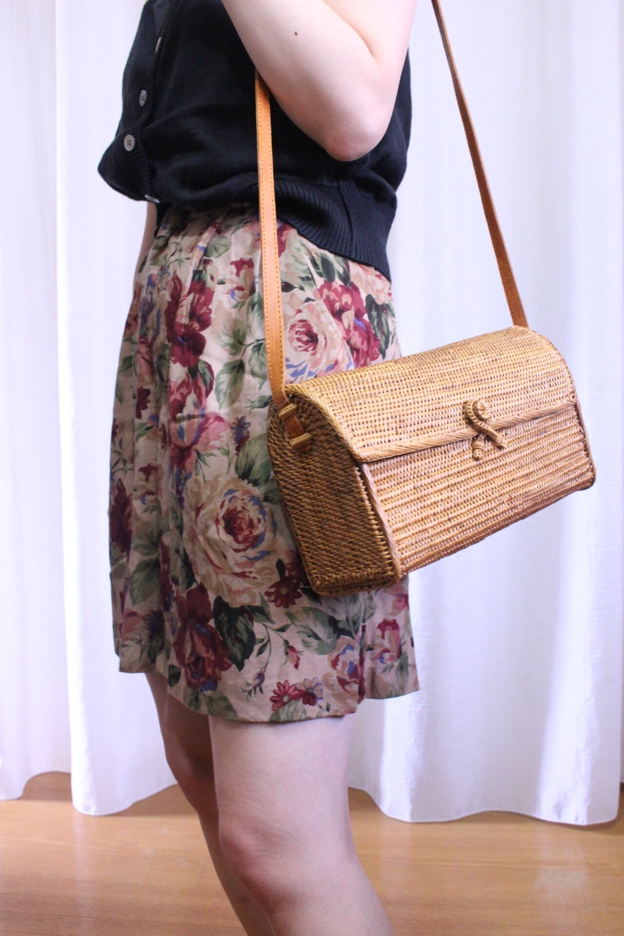 ナチュラルなラタン素材でコーデにほっこり感をプラス。
