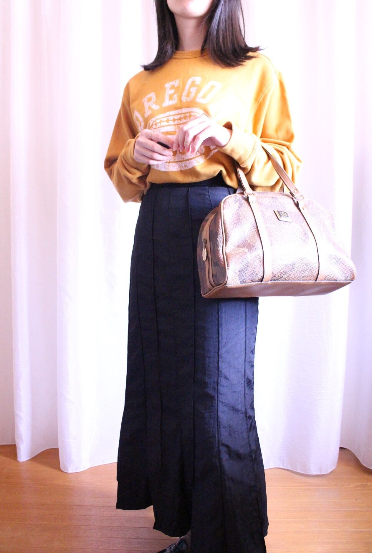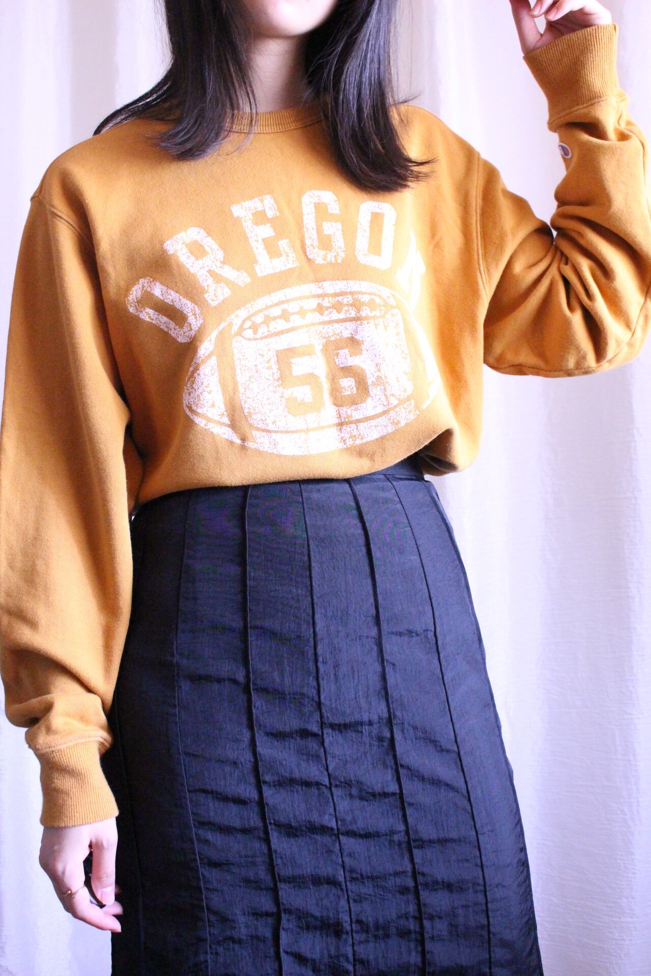 馴染みやすいマスタードイエローカラーのトレーナー。