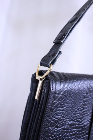 leatherで上品な印象のシンプルなバッグで、どんなコーデにも本当によく合います。とにかく迷ったらこれを合わせておけば間違いなし。