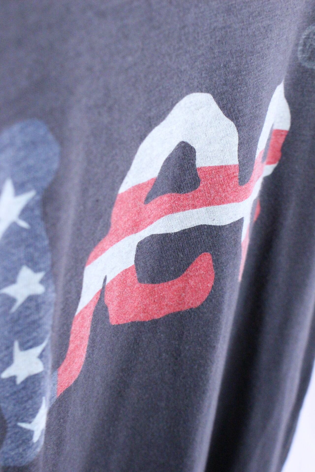 ロゴに入っている赤色を小物やボトムスに取り入れると上級者なコーデの出来上がりです。