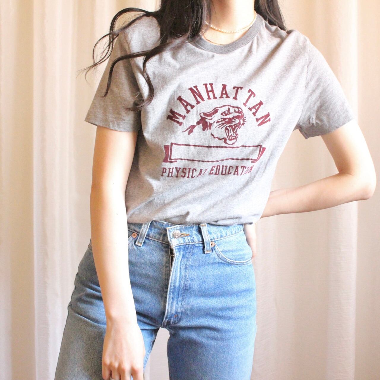 グレーにあずき色のカラーロゴの色合いがかわいいTシャツ。