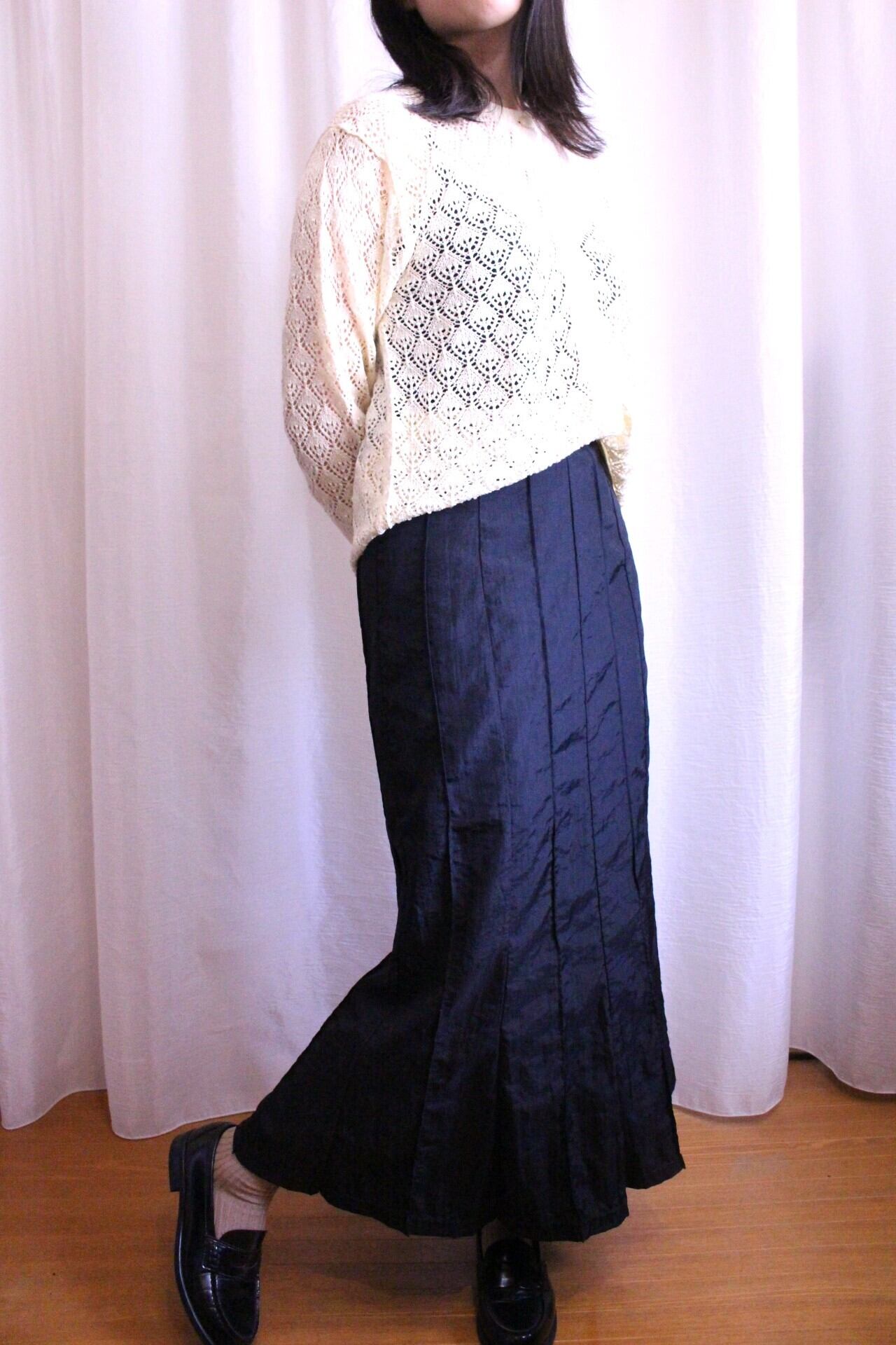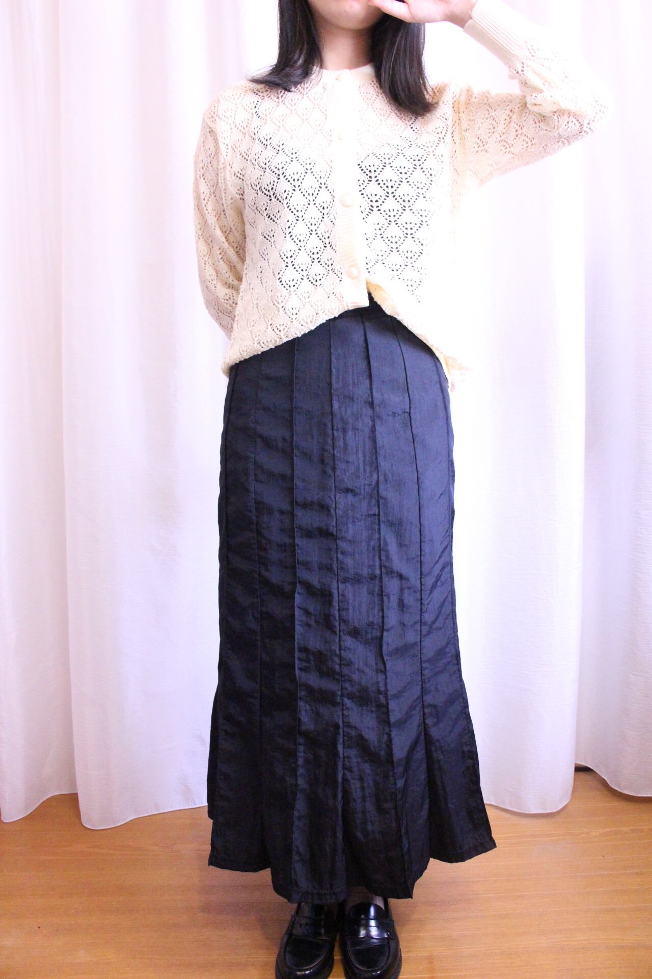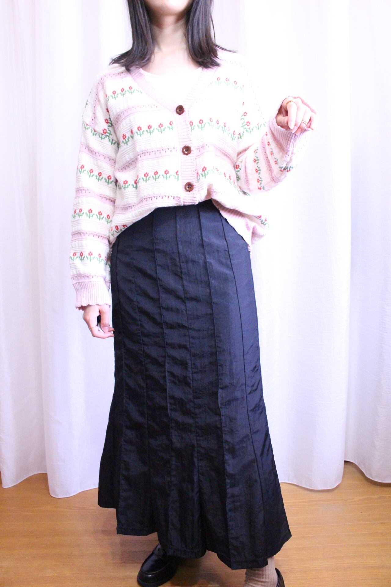 下に向かって少しだけ広がる控えめなフレアシルエットが大人かわいい印象。