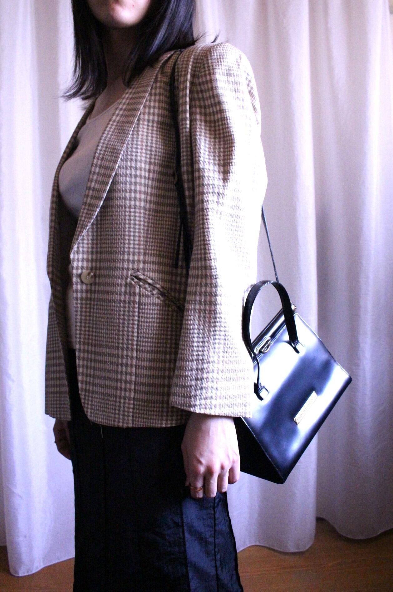 肩パッド入りシルエットがレトロです。