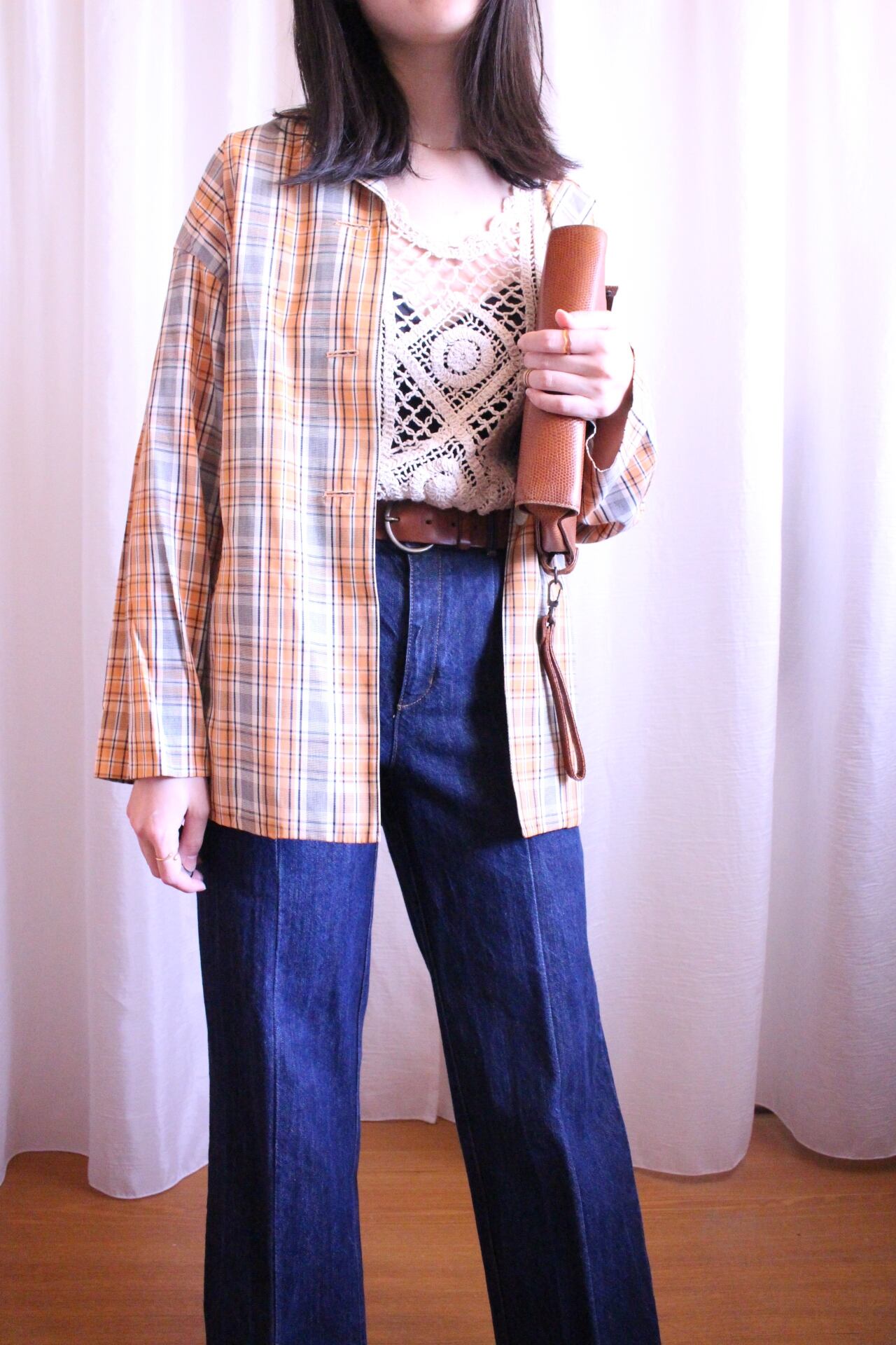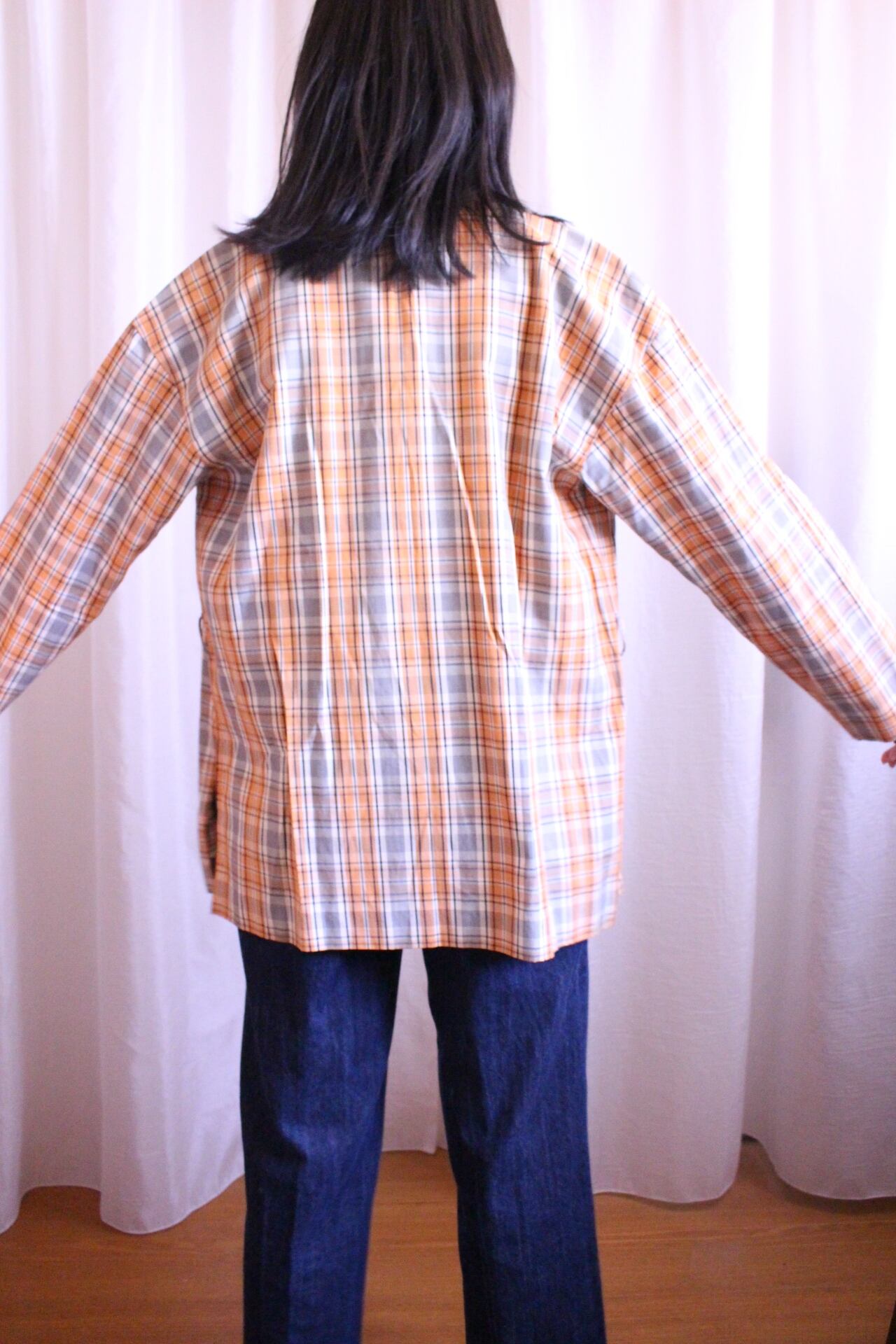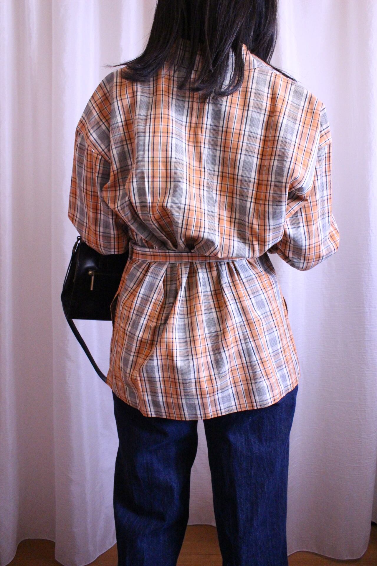 明るいオレンジカラーのマドラスチェックが秋に映えます。
