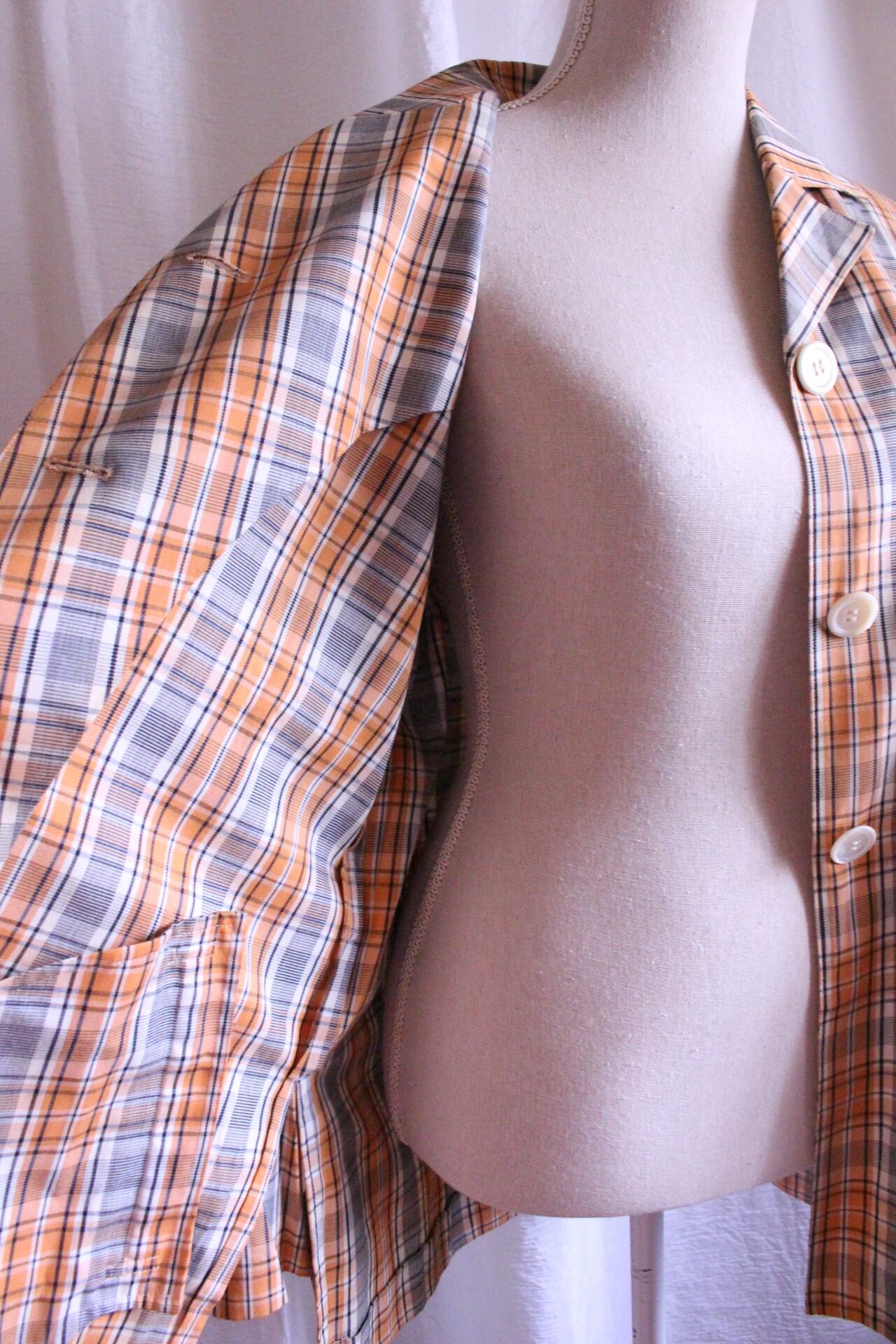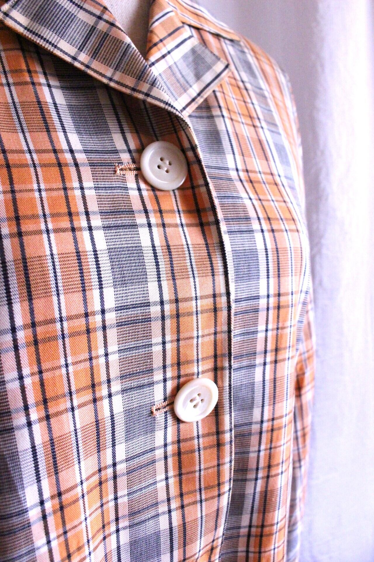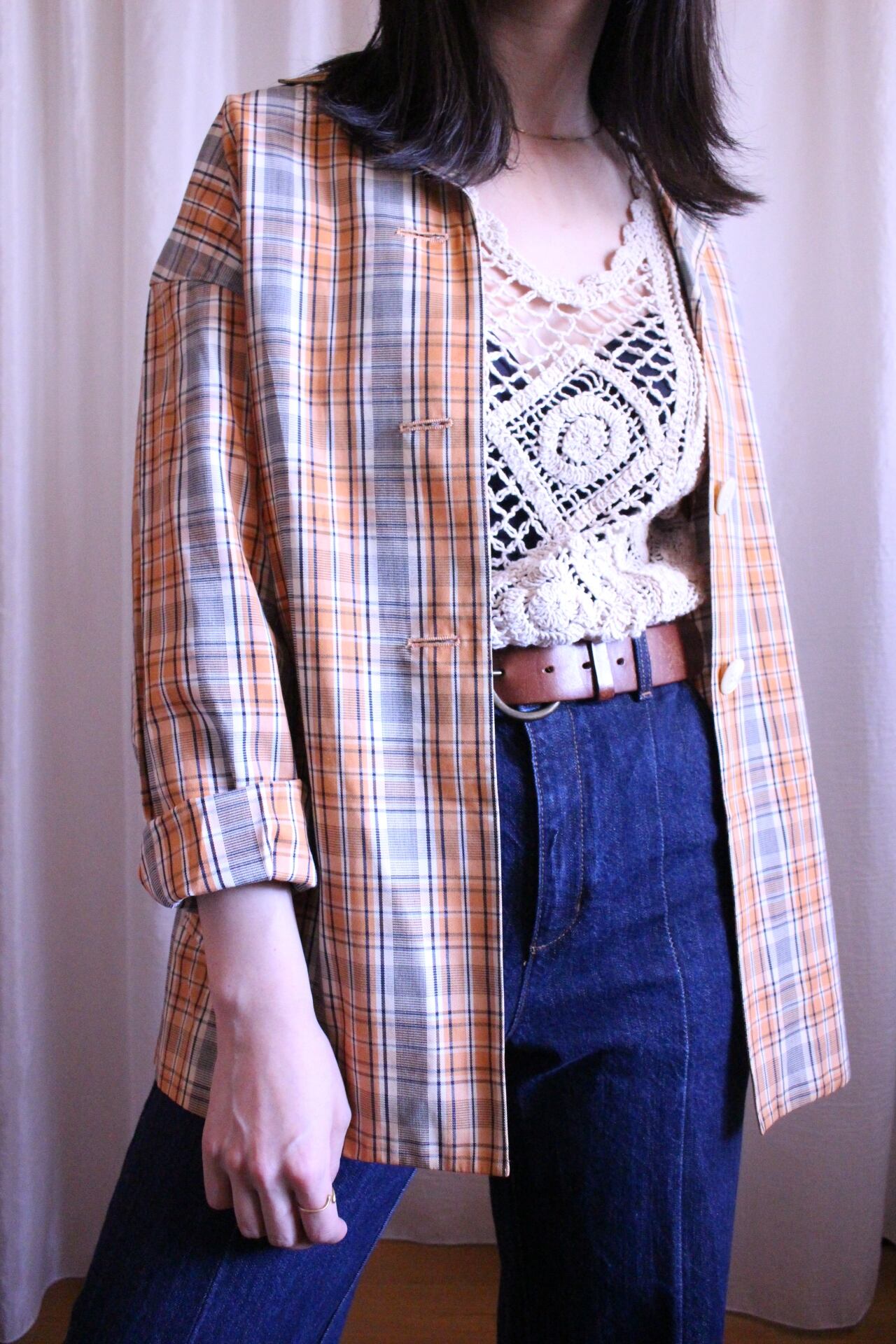 明るいオレンジカラーのマドラスチェックが秋に映えます。