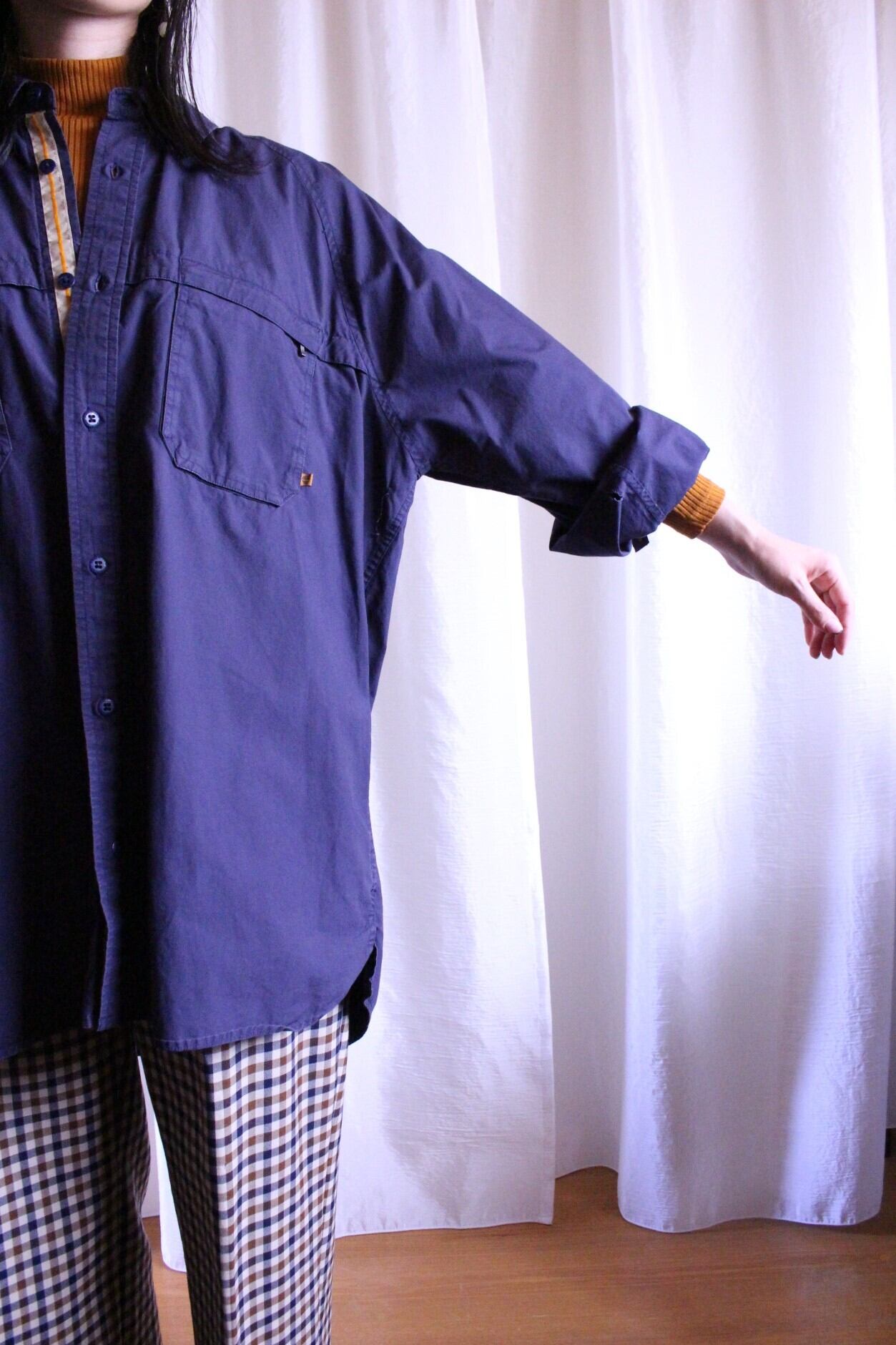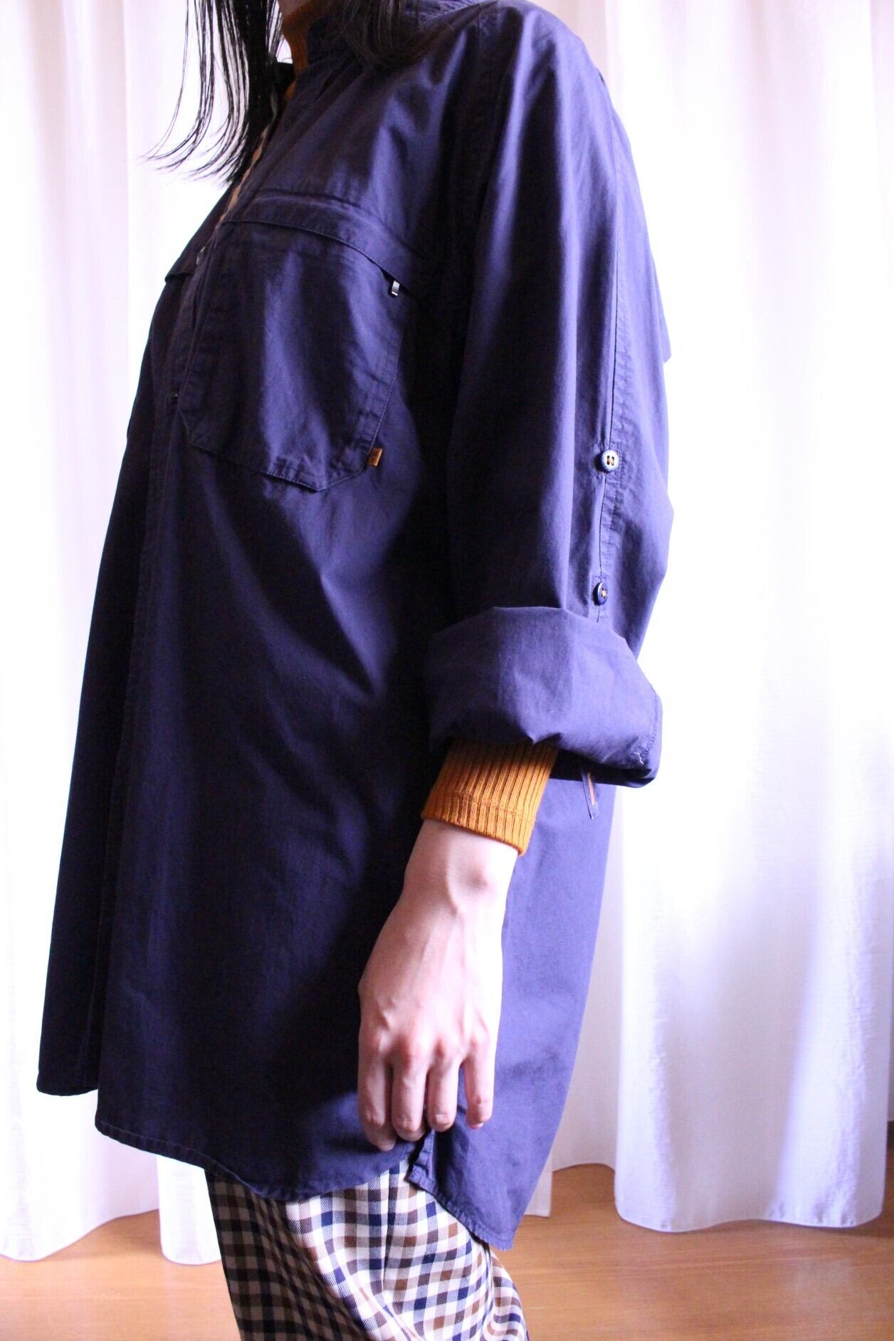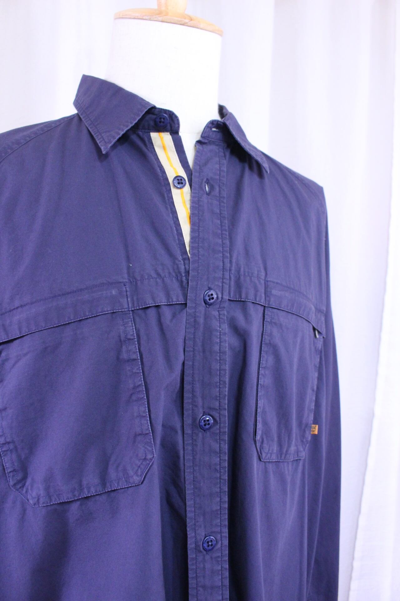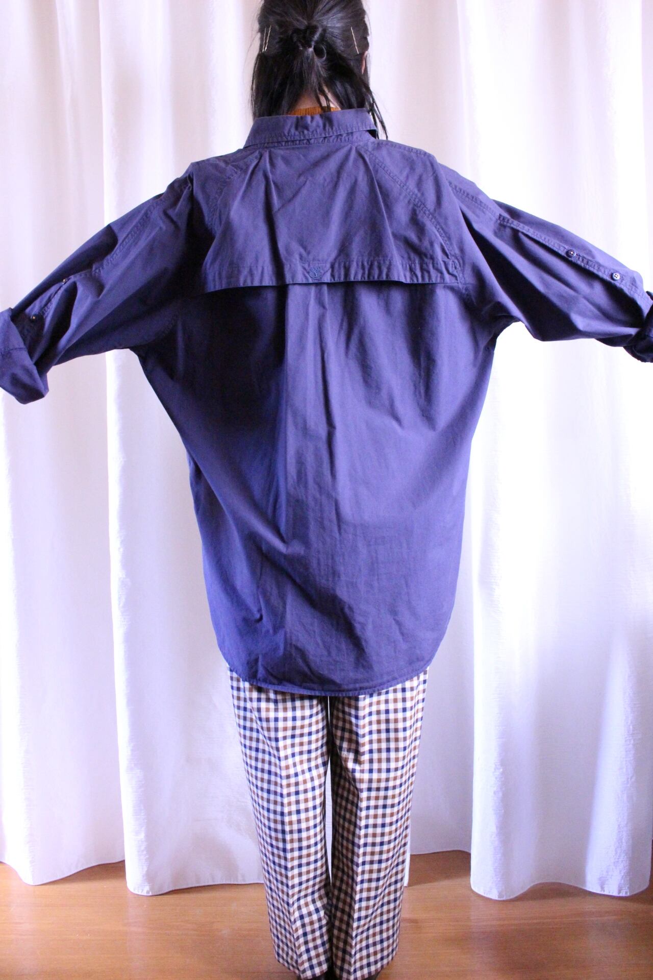 コットン100%で肌触りの良いネイビー生地のビッグサイズシャツ。