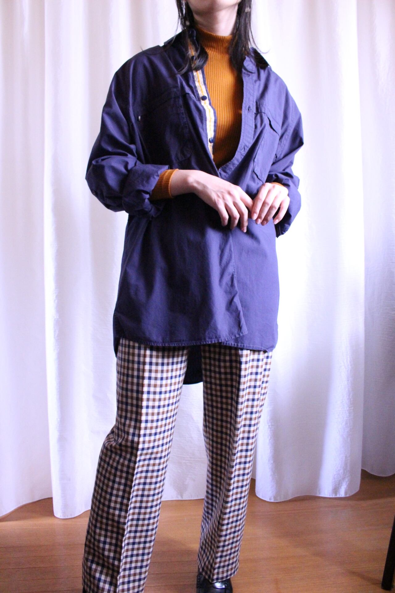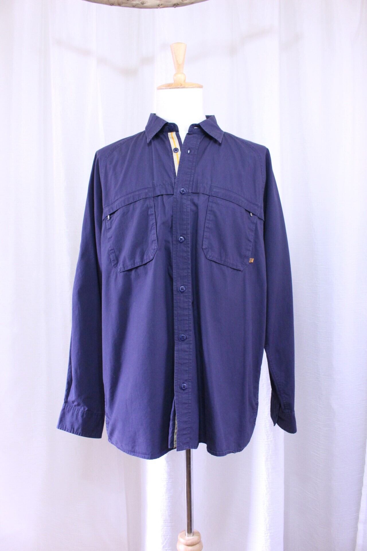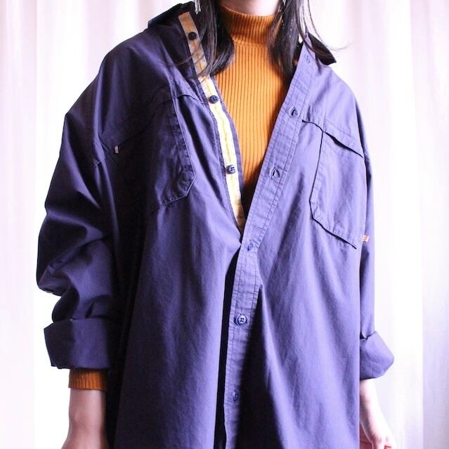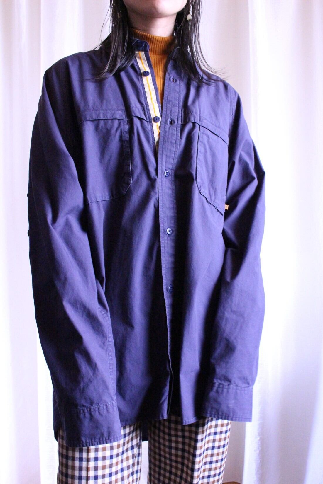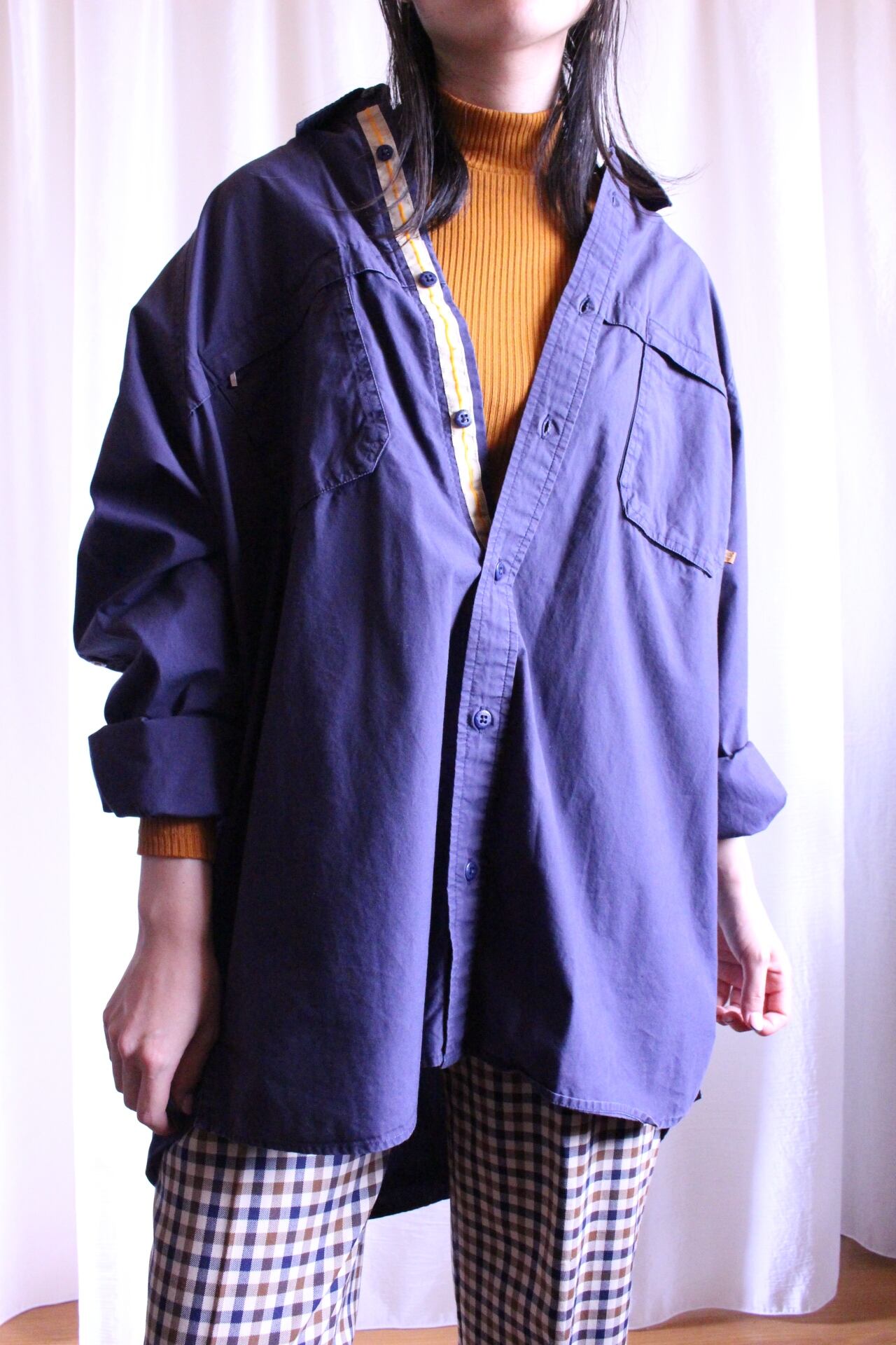 コットン100%で肌触りの良いネイビー生地のビッグサイズシャツ。