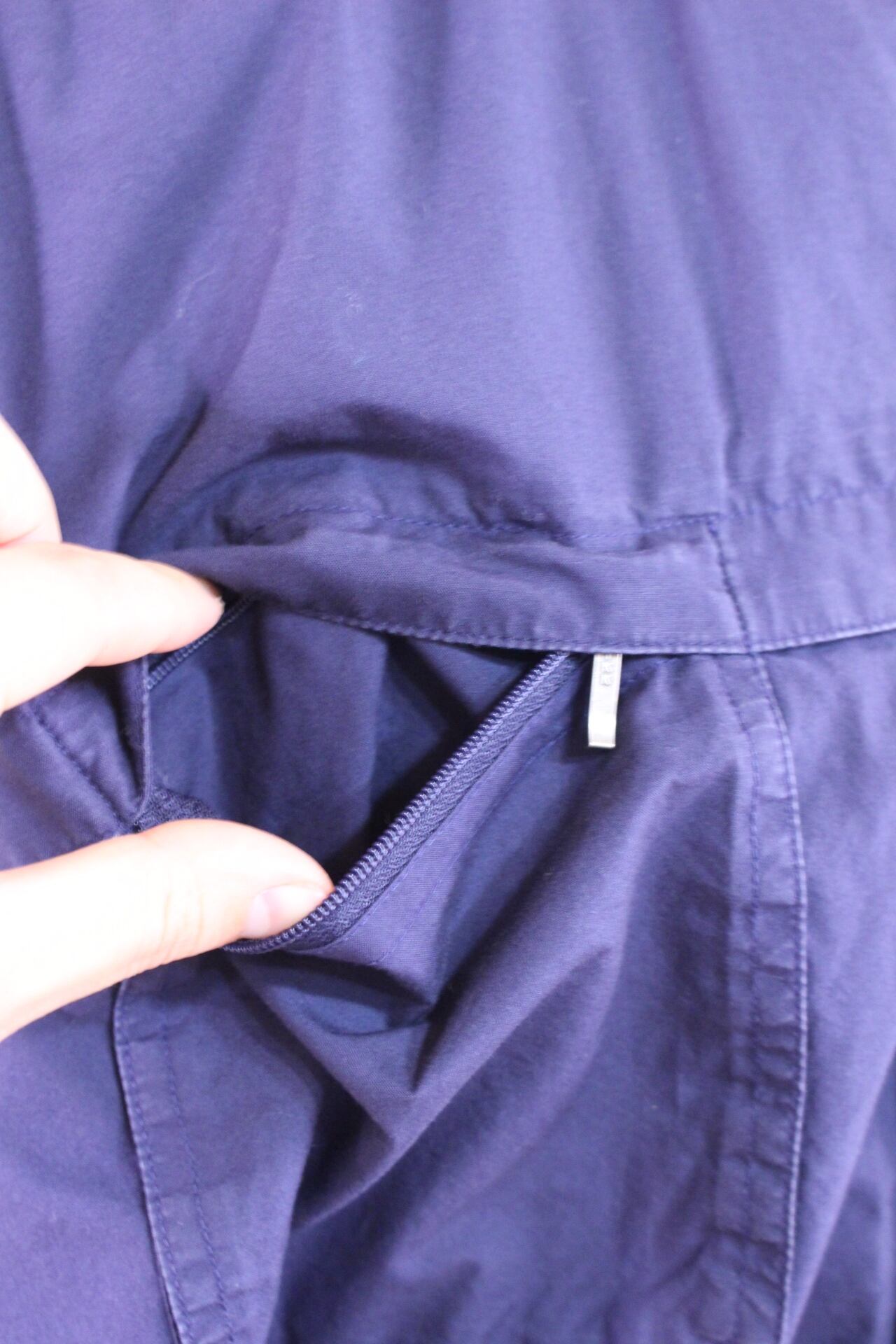 首元や裏地にある、ポイントのオレンジ色のラインがアクセントになっており、さりげに可愛いデザインです。