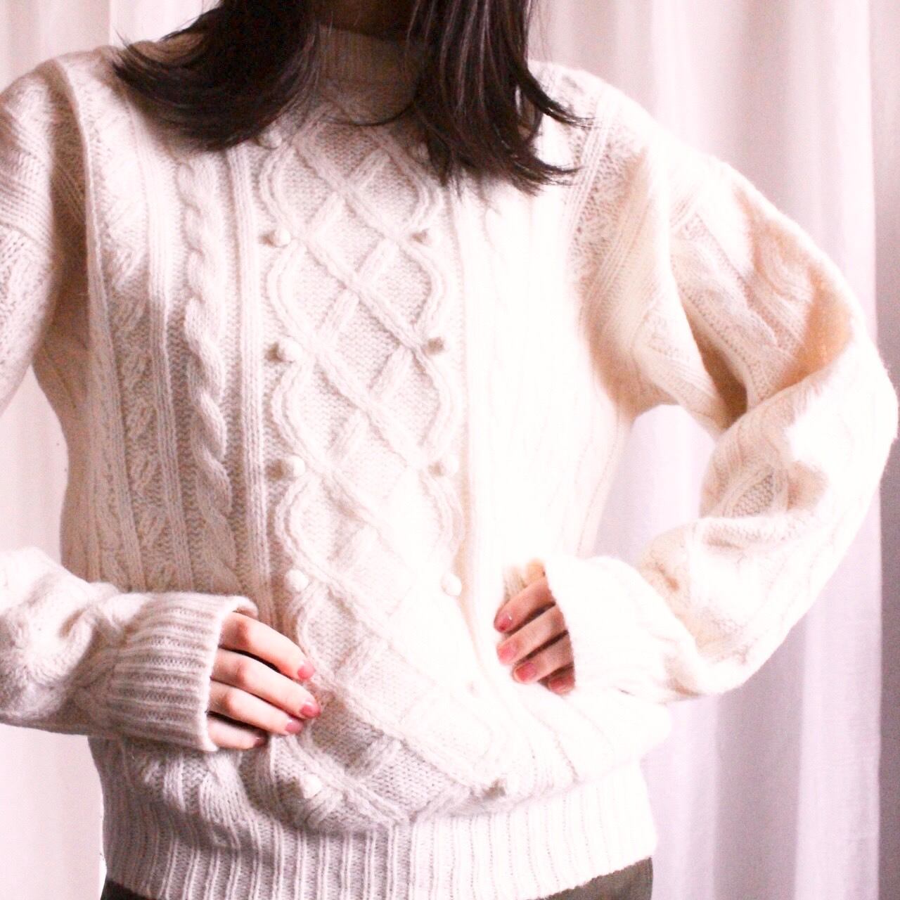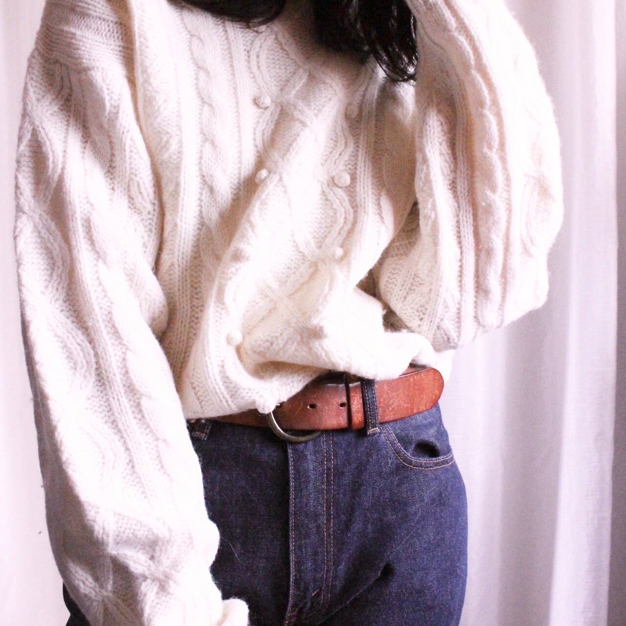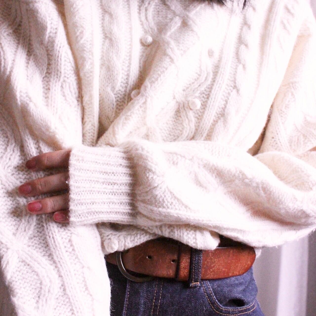 昔からホワイトのビンテージニットには本当に目がなく、サイズ感、編み目、ニットの硬さ、手触り、デザイン…など、それはそれはこだわりをもっていましたので、休みの日は1日中気に入るニットに出会うまで古着屋さんを練り歩いていた私オーナーが買い付けたニットですので、胸を張っておすすめできます。