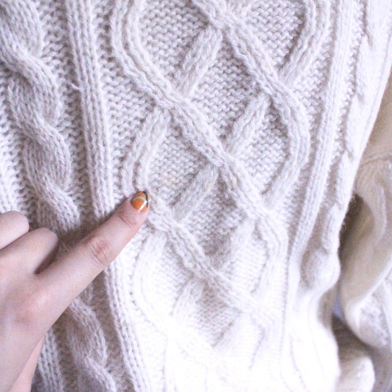 オーバーサイズ感、ニットの厚み、編み模様、すべてが本当にかわいいこちらのホワイトニット。