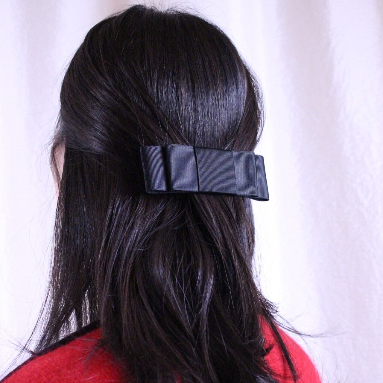 レトロな雰囲気たっぷり、上品なリボンバレッタ。