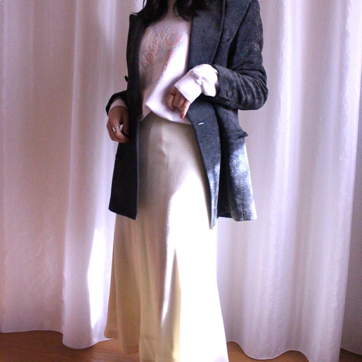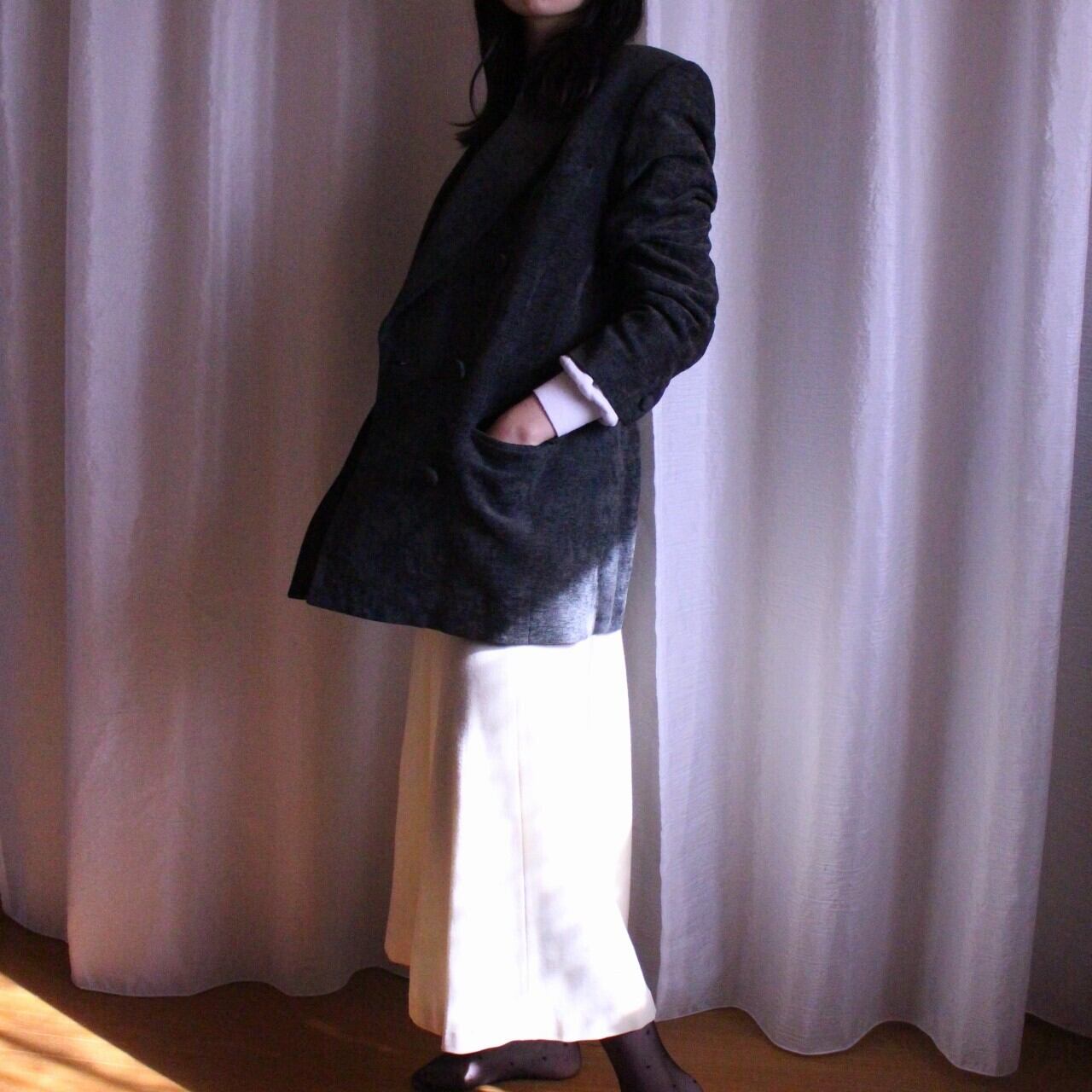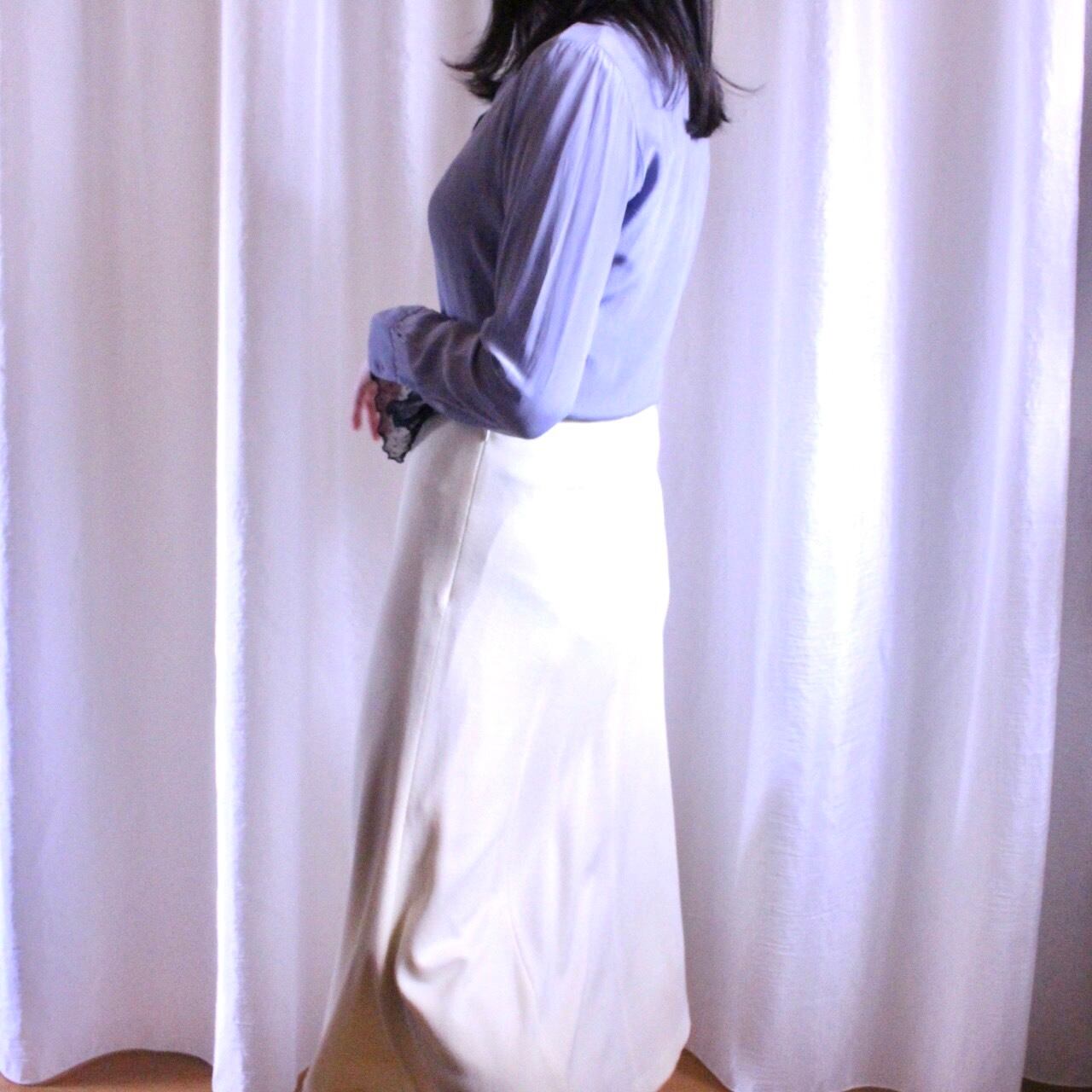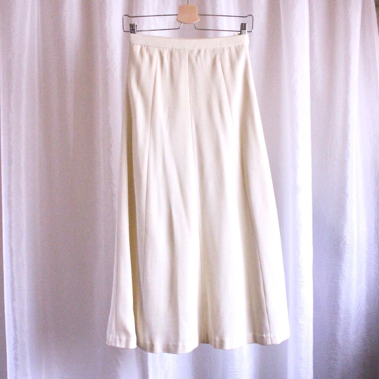 フレアなシルエットで、歩くたび揺れる真っ白な生地がとても優雅で上品な印象のスカート。