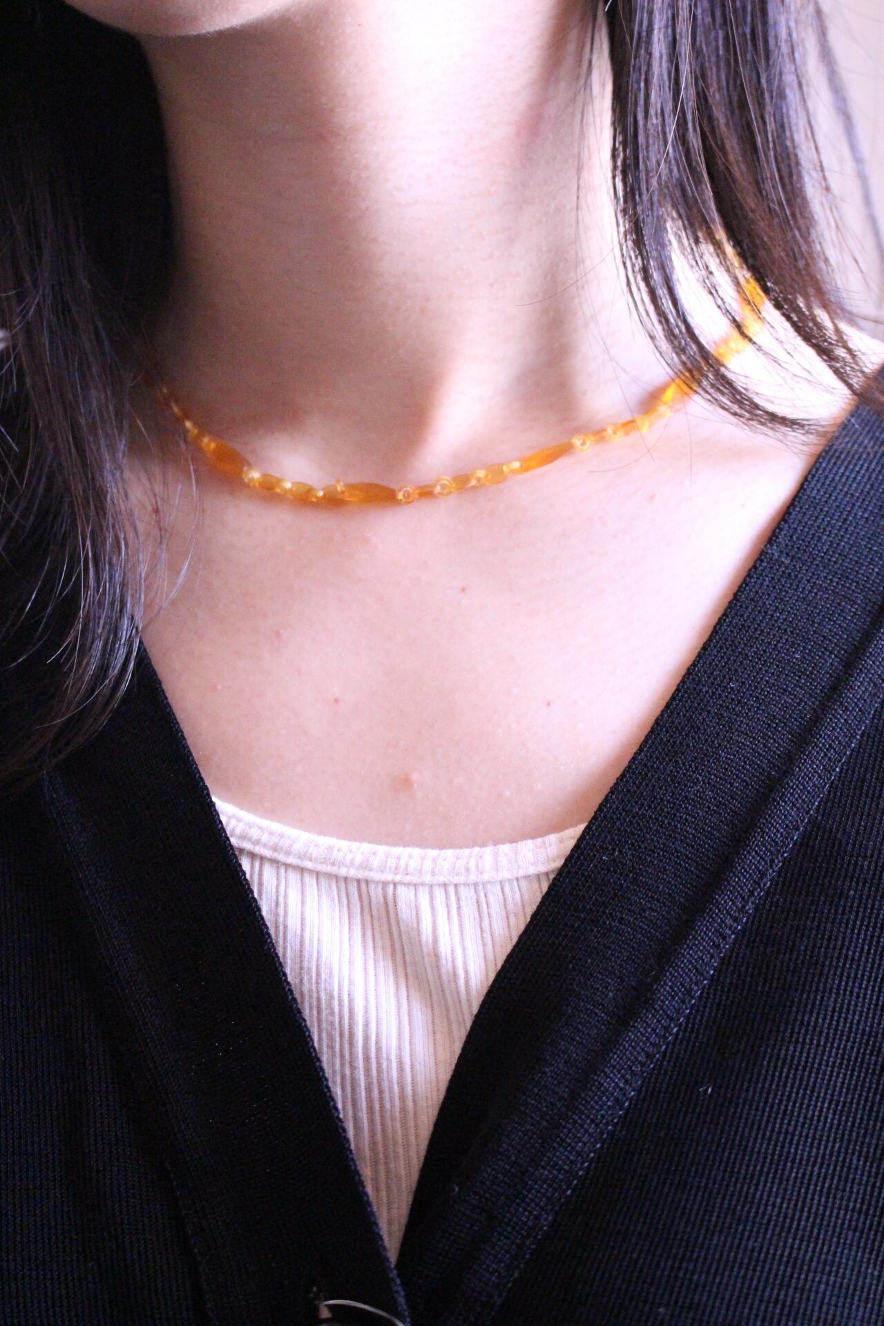 あめ色ビーズネックレス