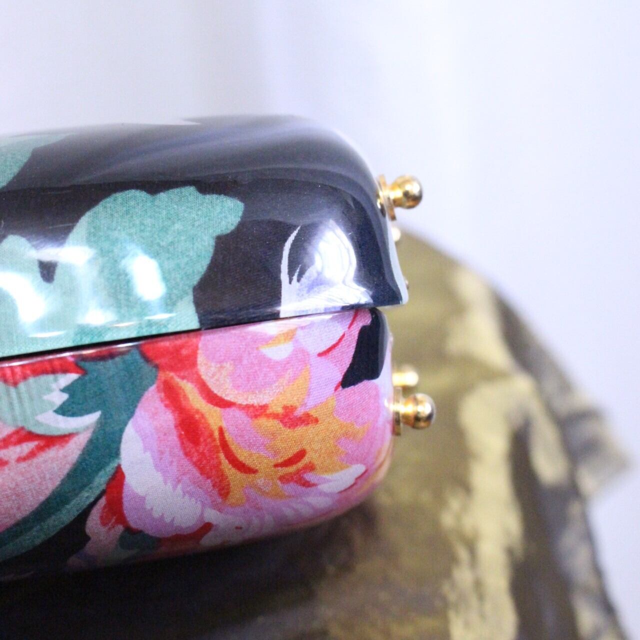 黒地にピンクのお花、金具部分に差し色のゴールド…ととってもエレガントな雰囲気たっぷりです◎
