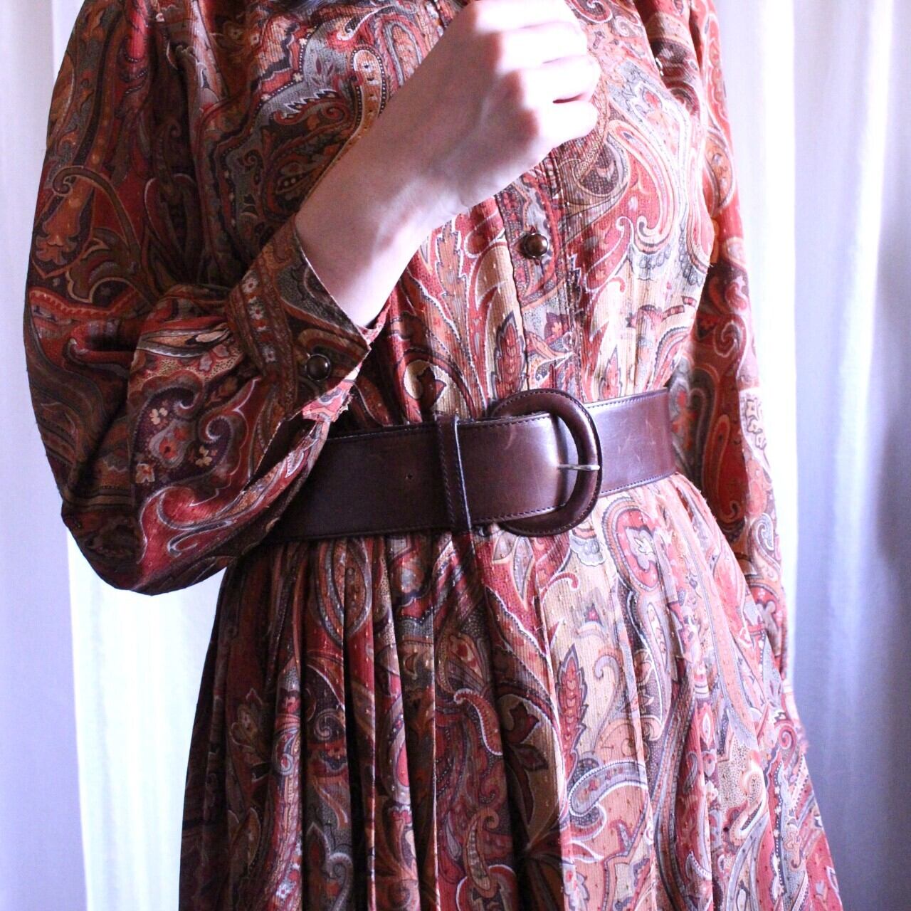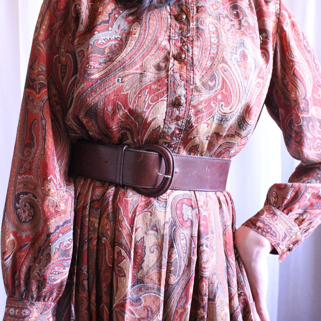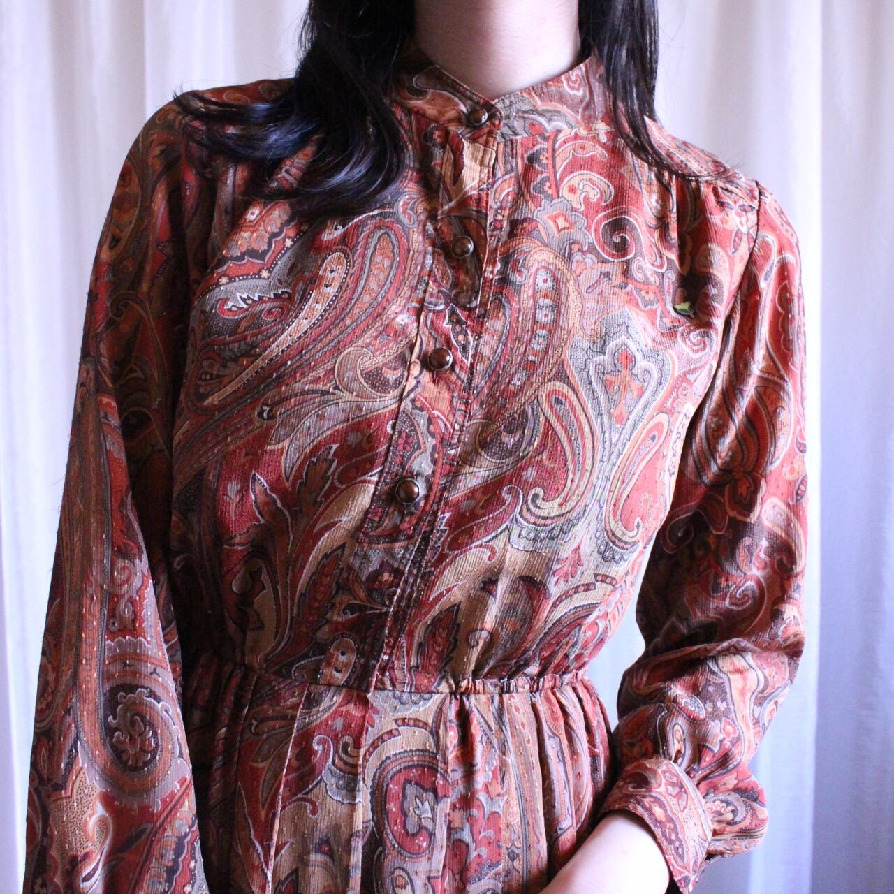 誰とも被らない非常に個性的で魅力的なペイズリーの総柄ワンピースです。