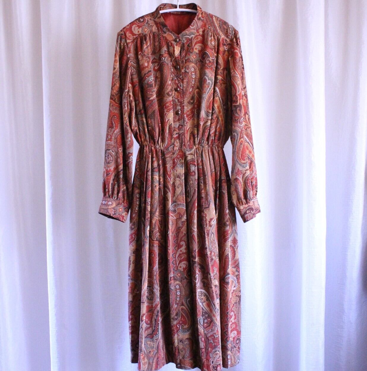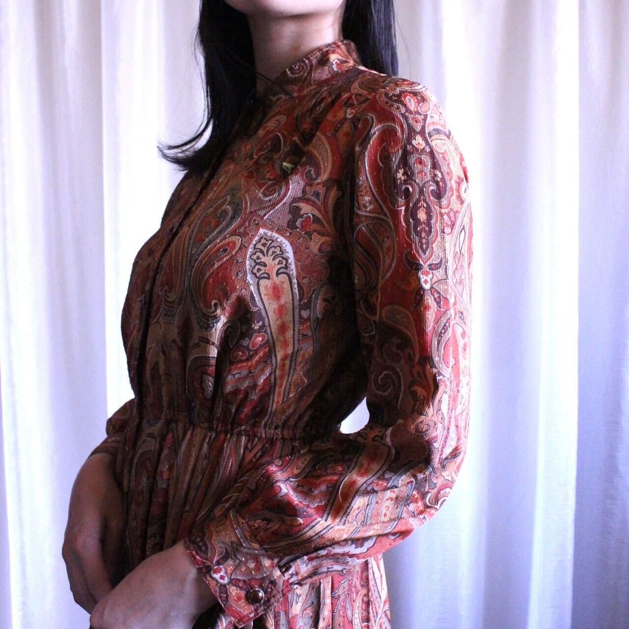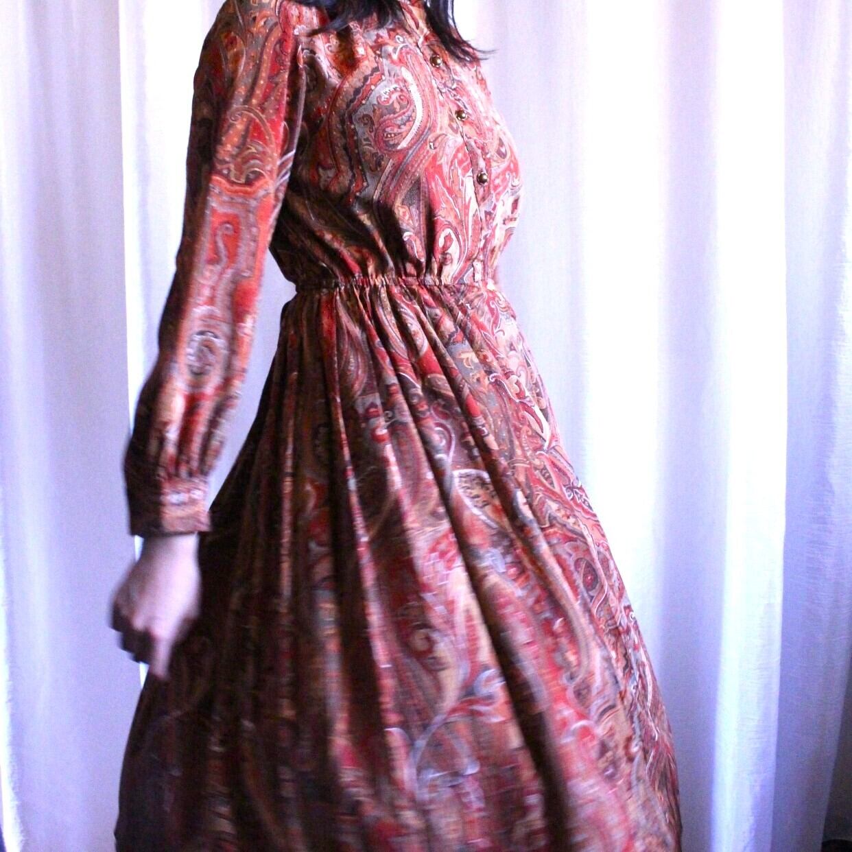 誰とも被らない非常に個性的で魅力的なペイズリーの総柄ワンピースです。