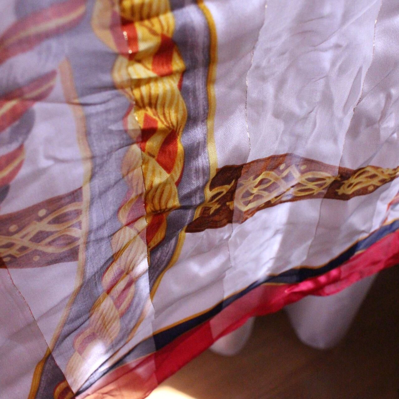 シルク100%で肌触りが非常に柔らかく、色味もキレイなスカーフ。