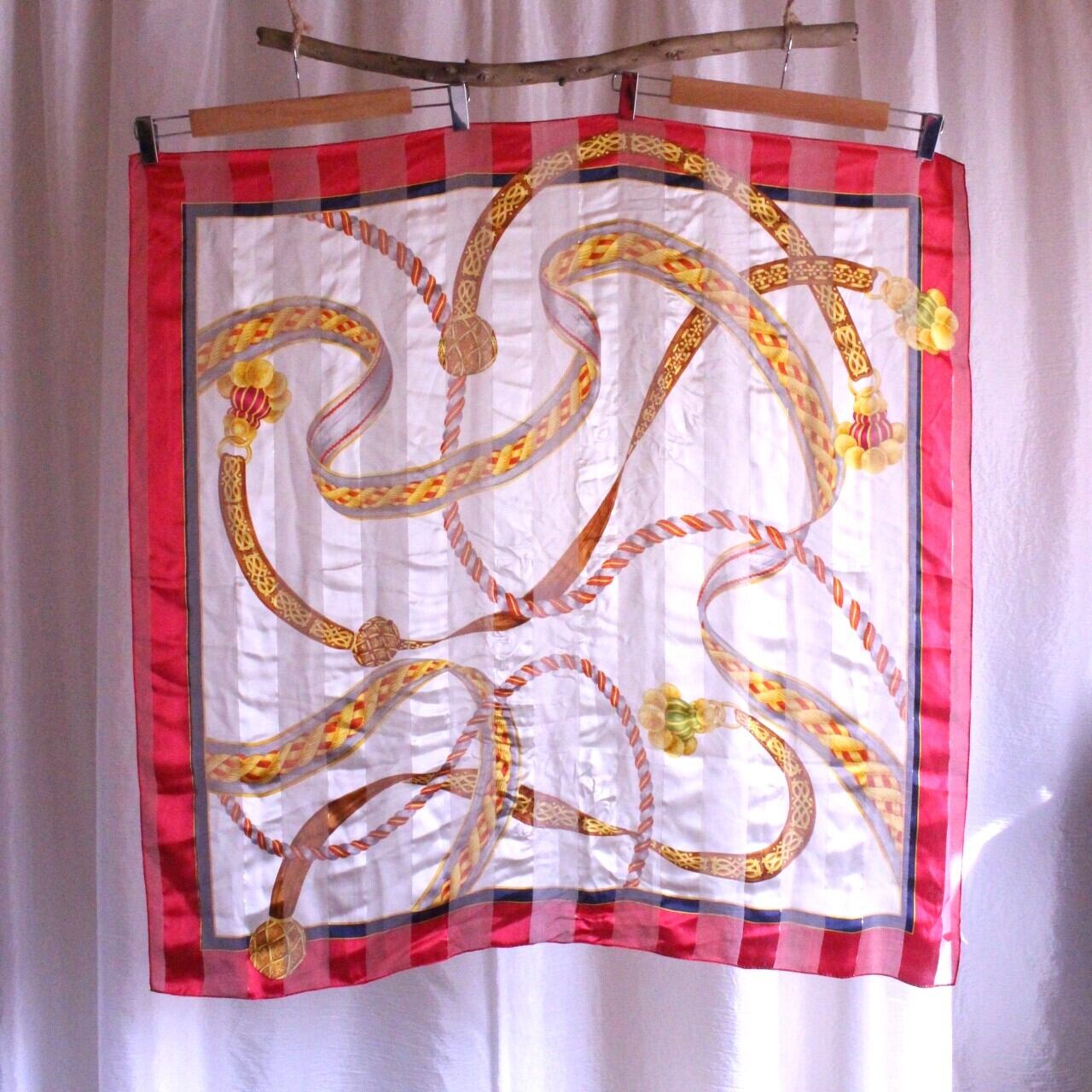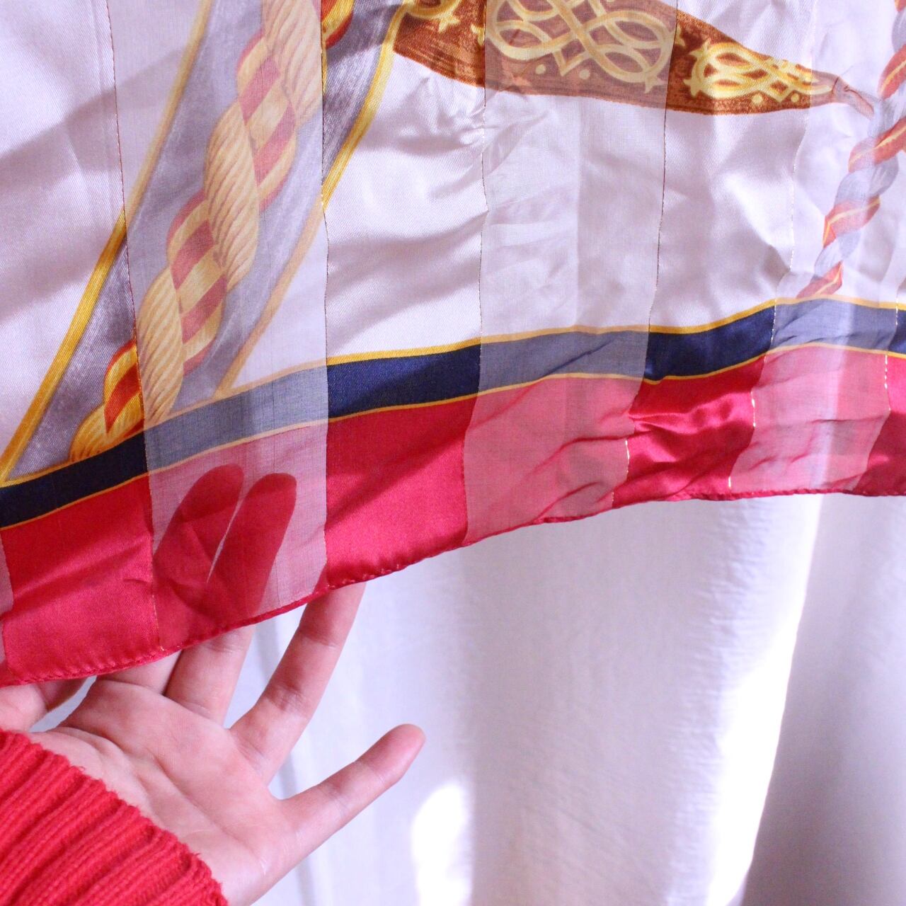 silk100% レトロスカーフ ラメ×透かし レッド【627】