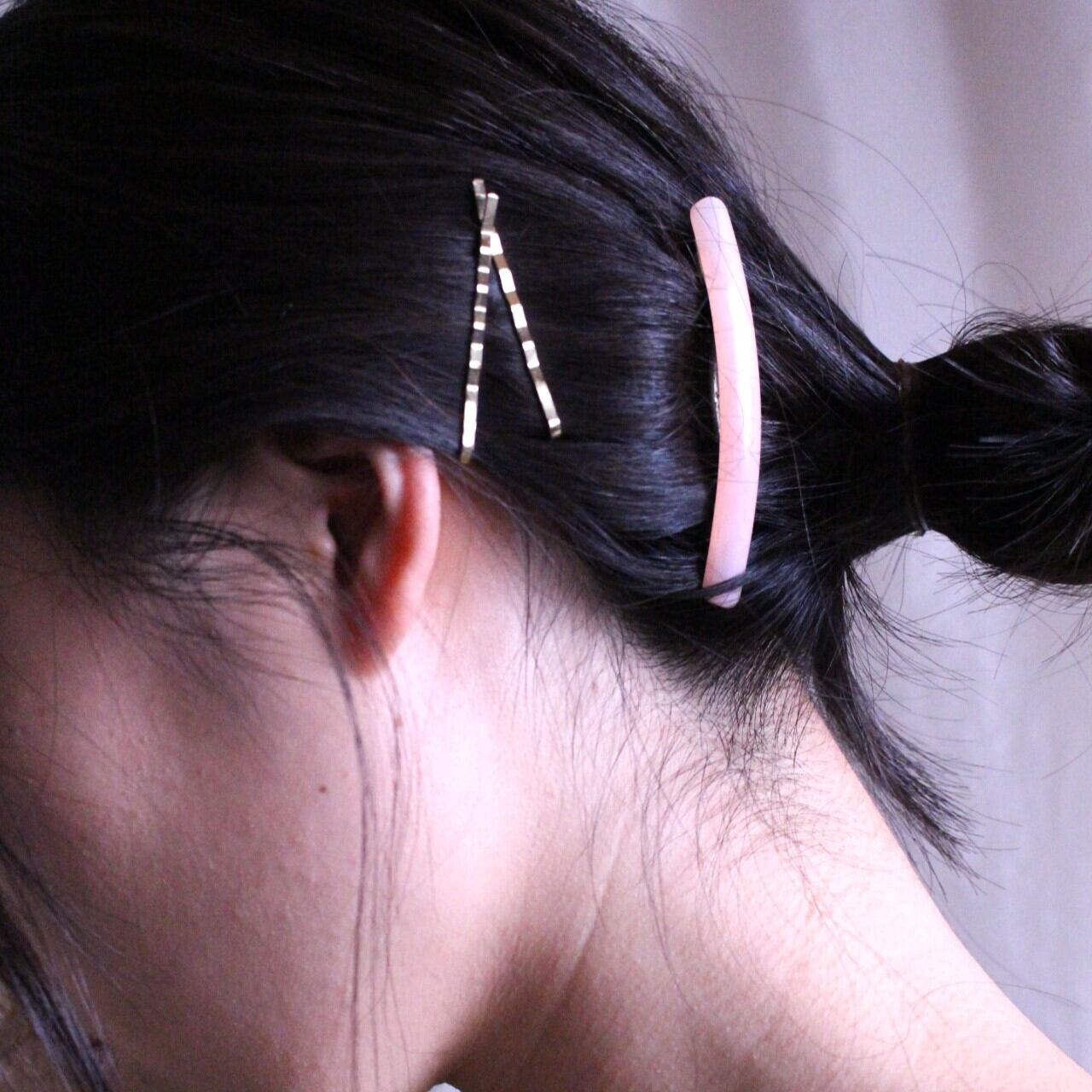 毛量や髪質的に、バレッタだけでは心もとないという方はゴールドやシルバーなどのカラーヘアピンと重ねて使ってもいいかもしれません◎