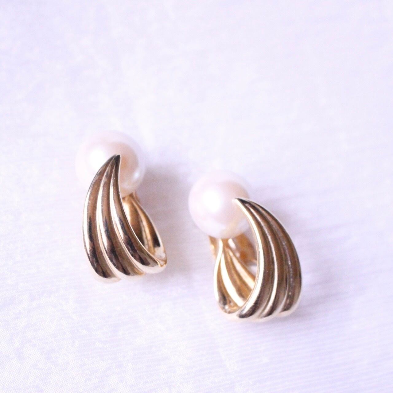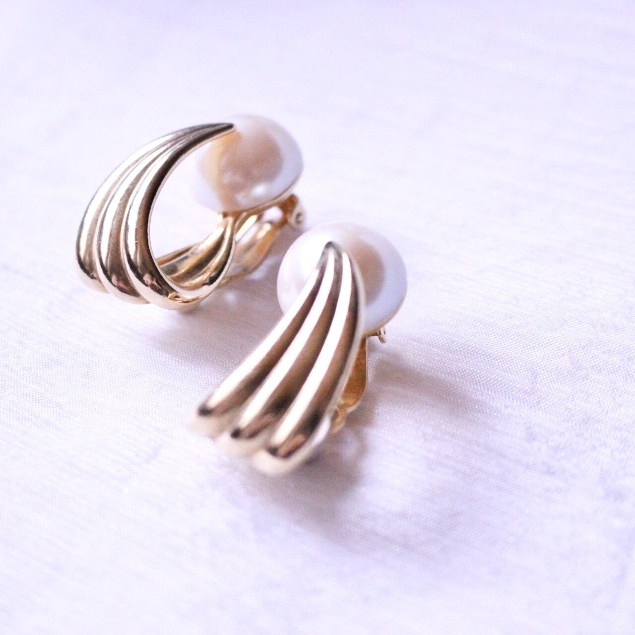 パール×ゴールド 大ぶりイヤリング【630】