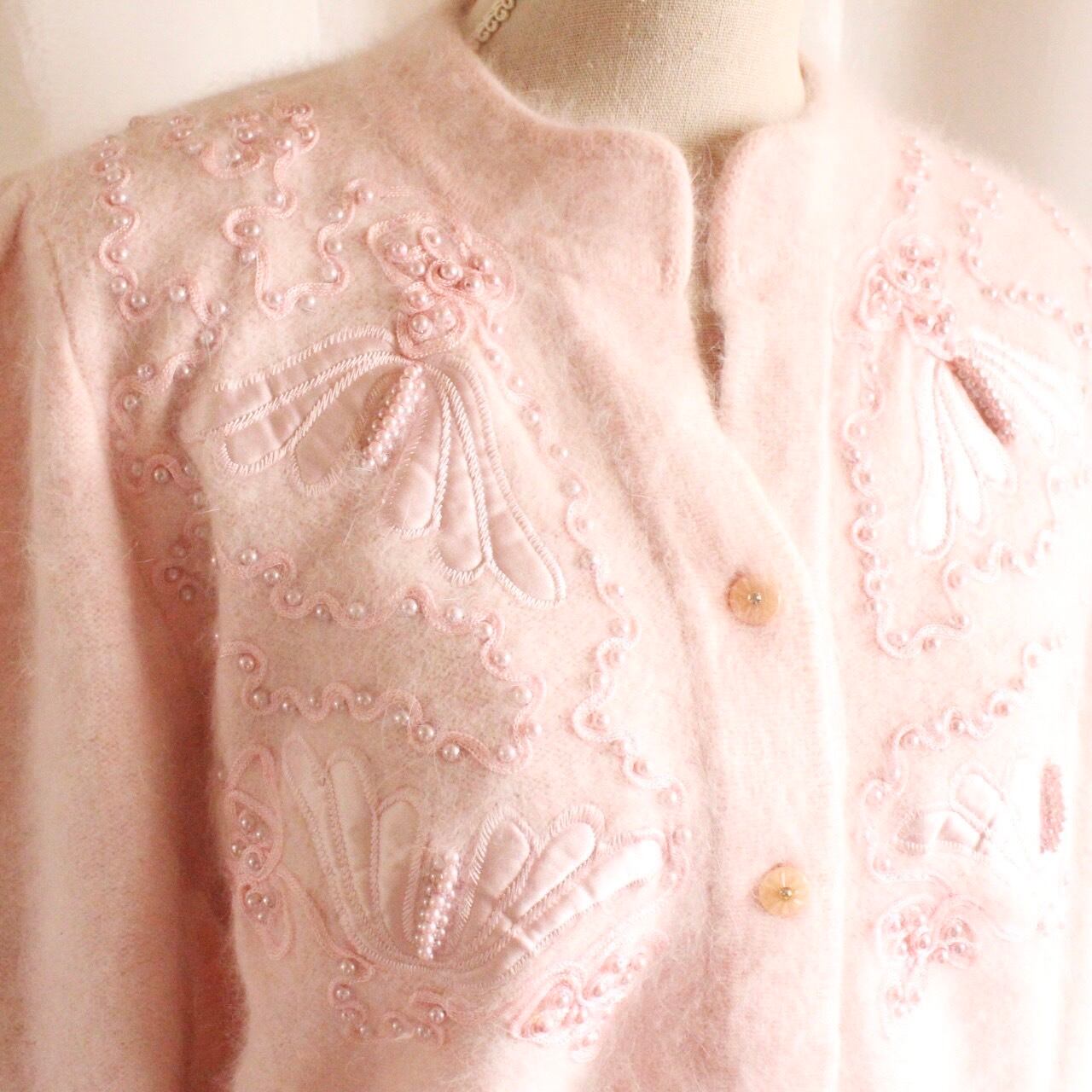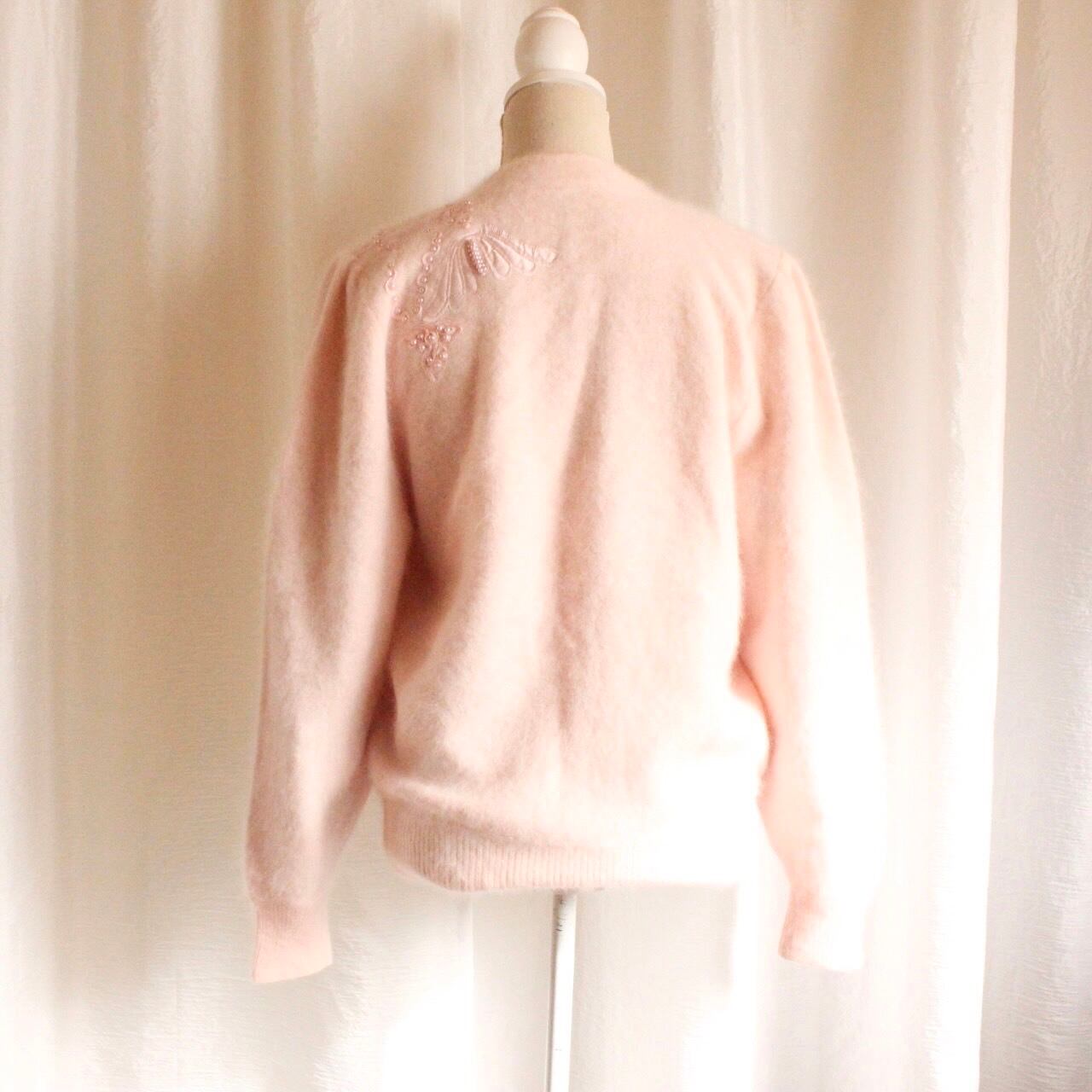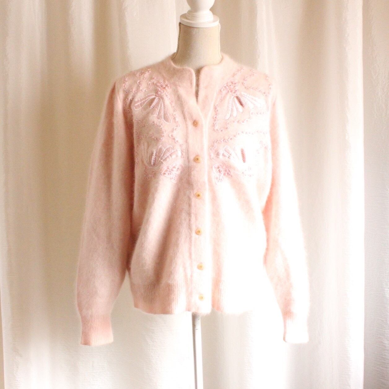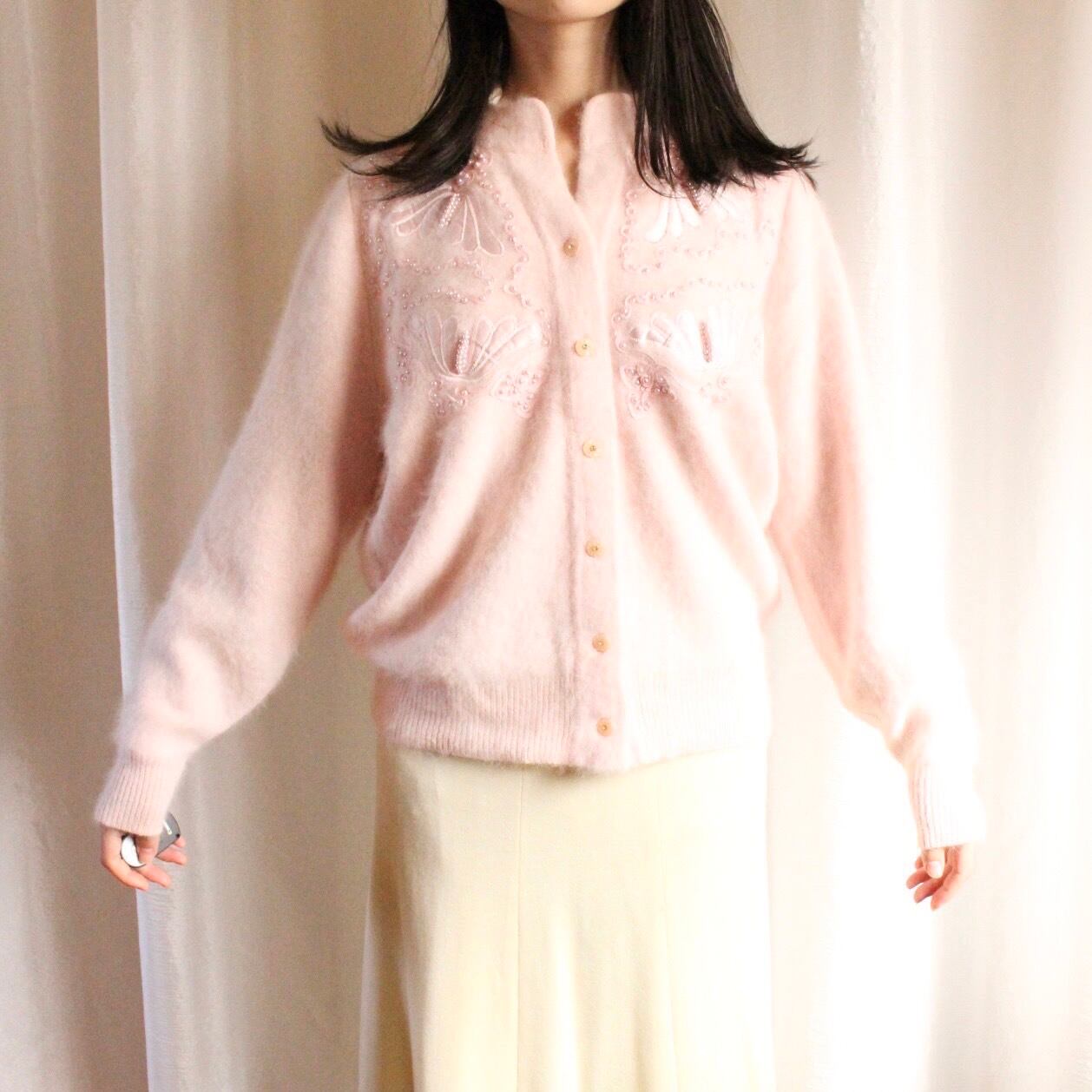 ふわっと肌触りがとっても気持ちの良い、上品なベビーピンクのニットカーディガン。