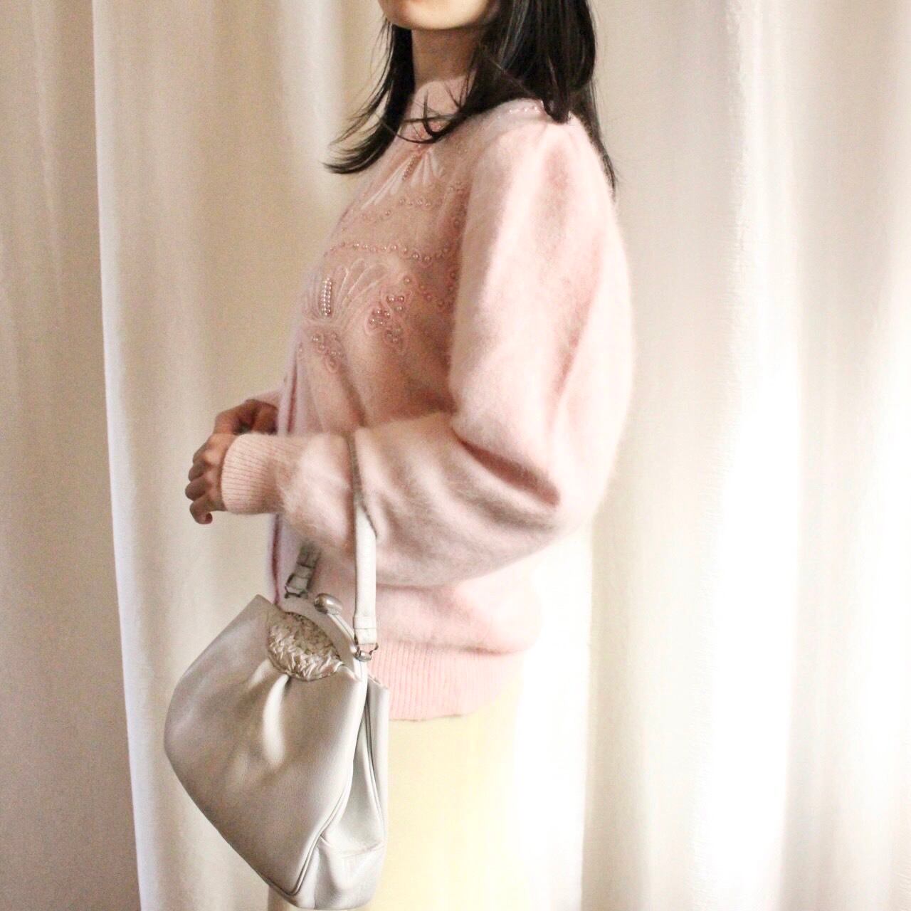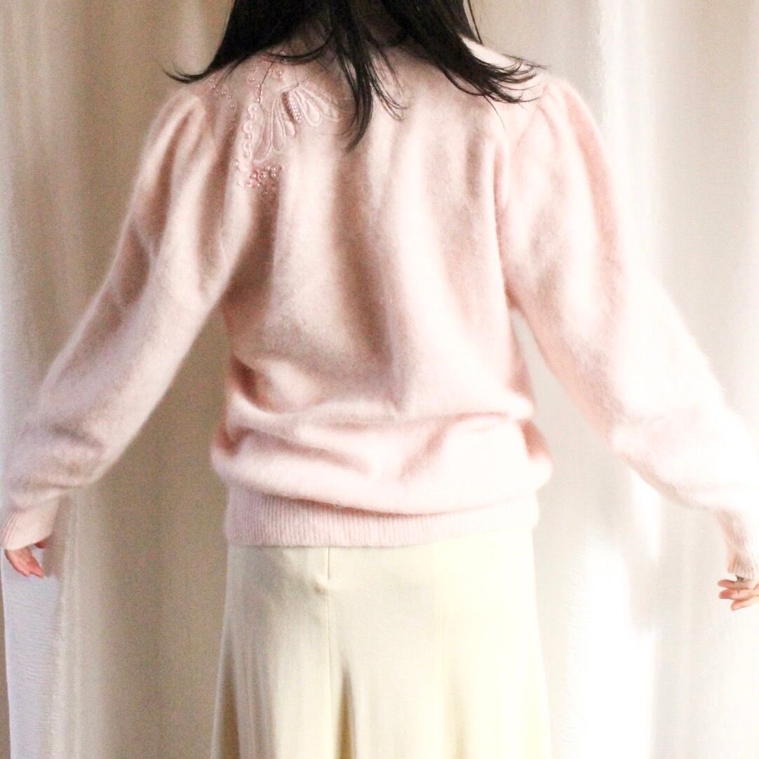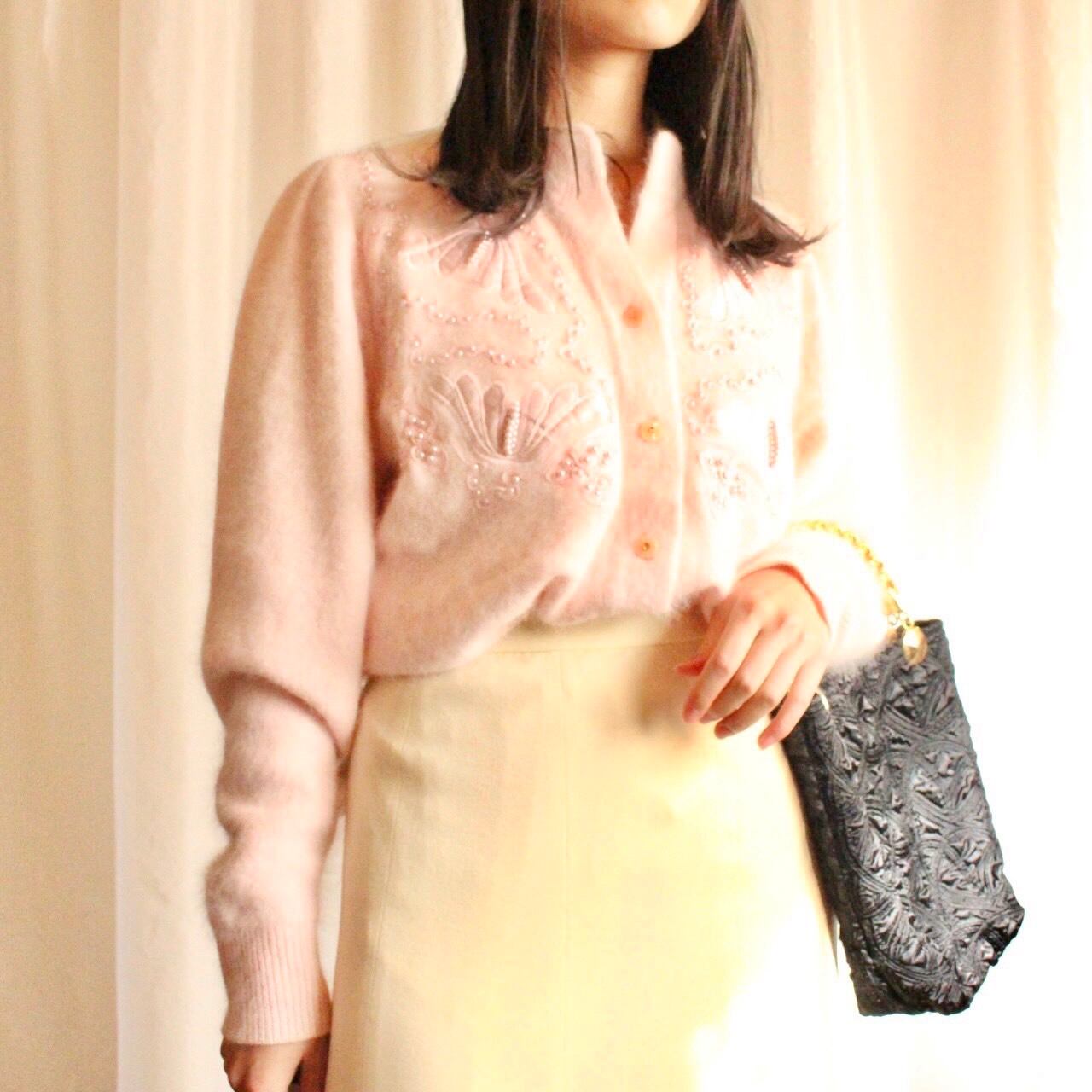 気品のあるふわふわなピンクニットに胸元のビジューのデザインがキュートで、まさに ”大人可愛い” が凝縮された一点です。