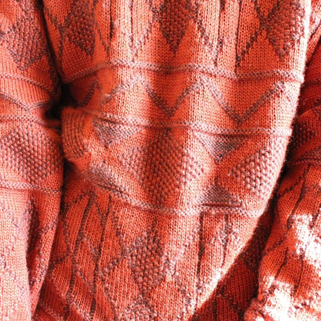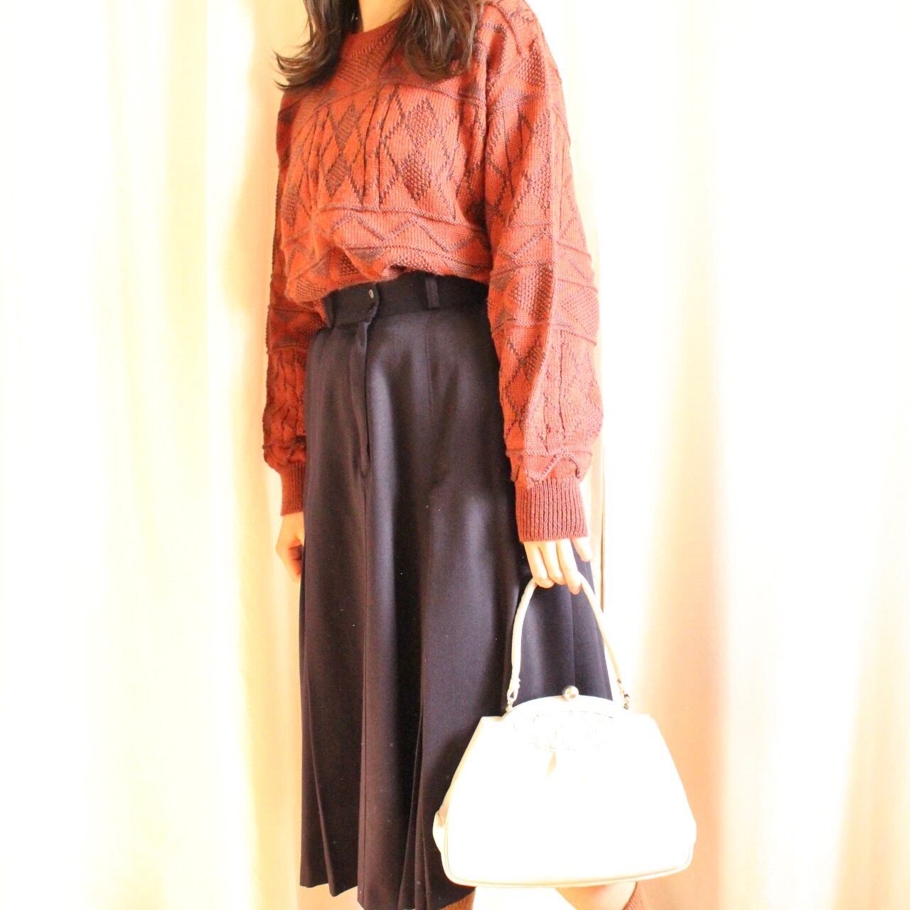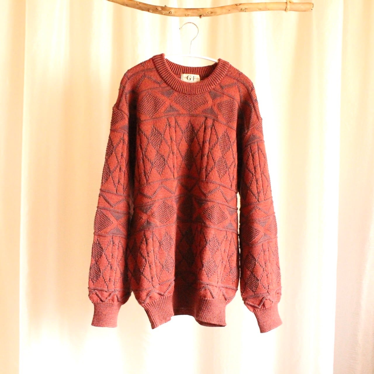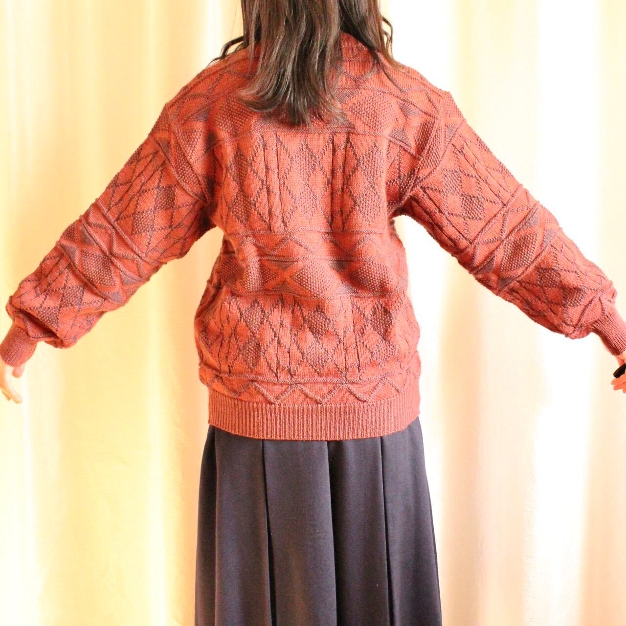 ゆったりオーバーなシルエットと、古着ならではの幾何学模様が魅力のワインレッドカラーのニット◎