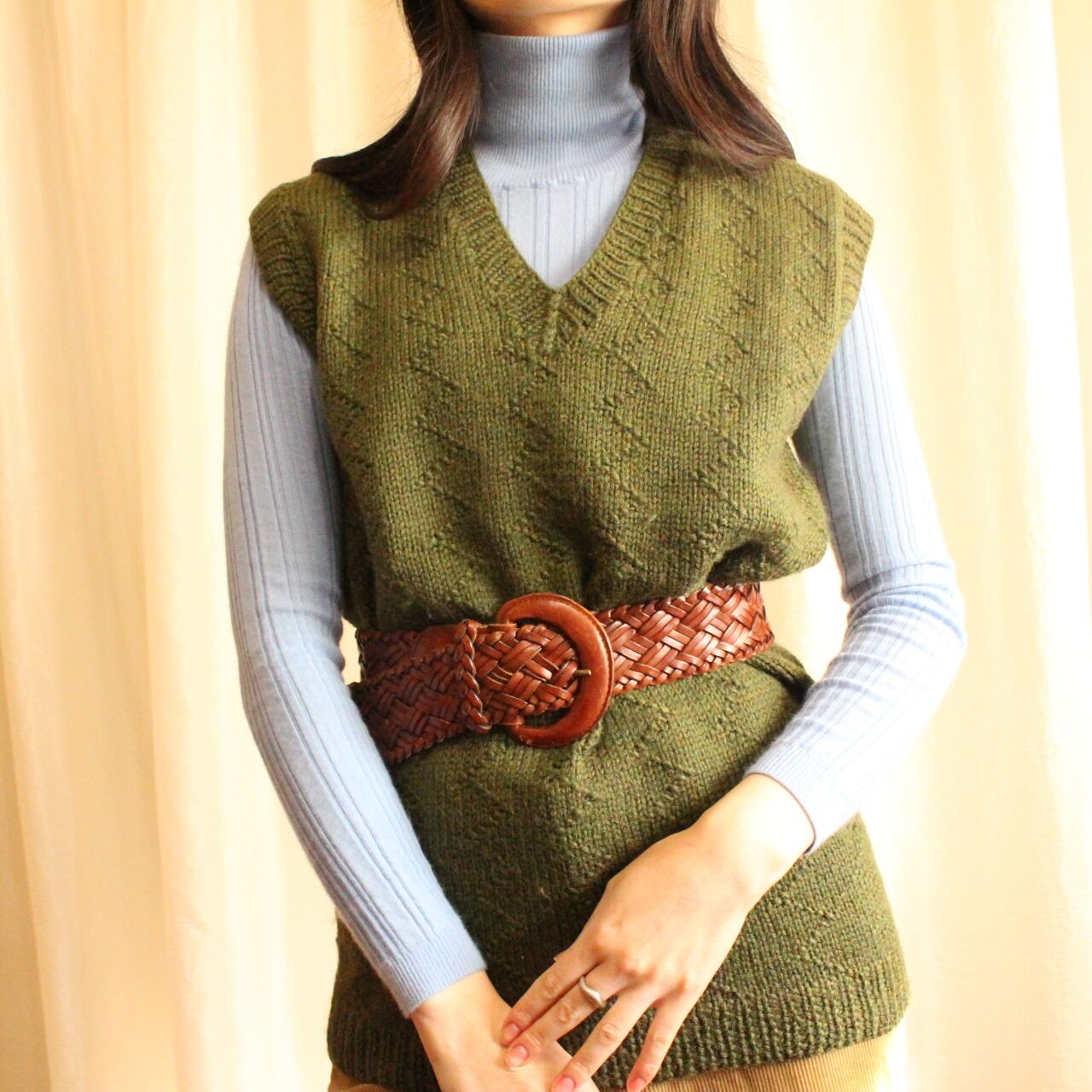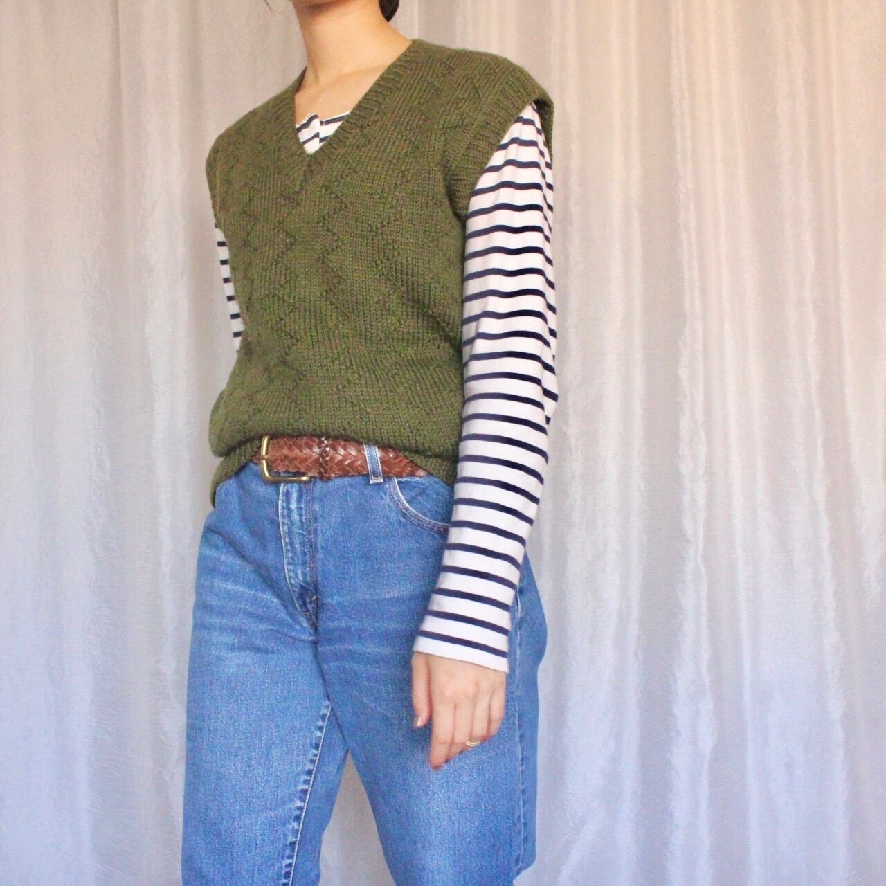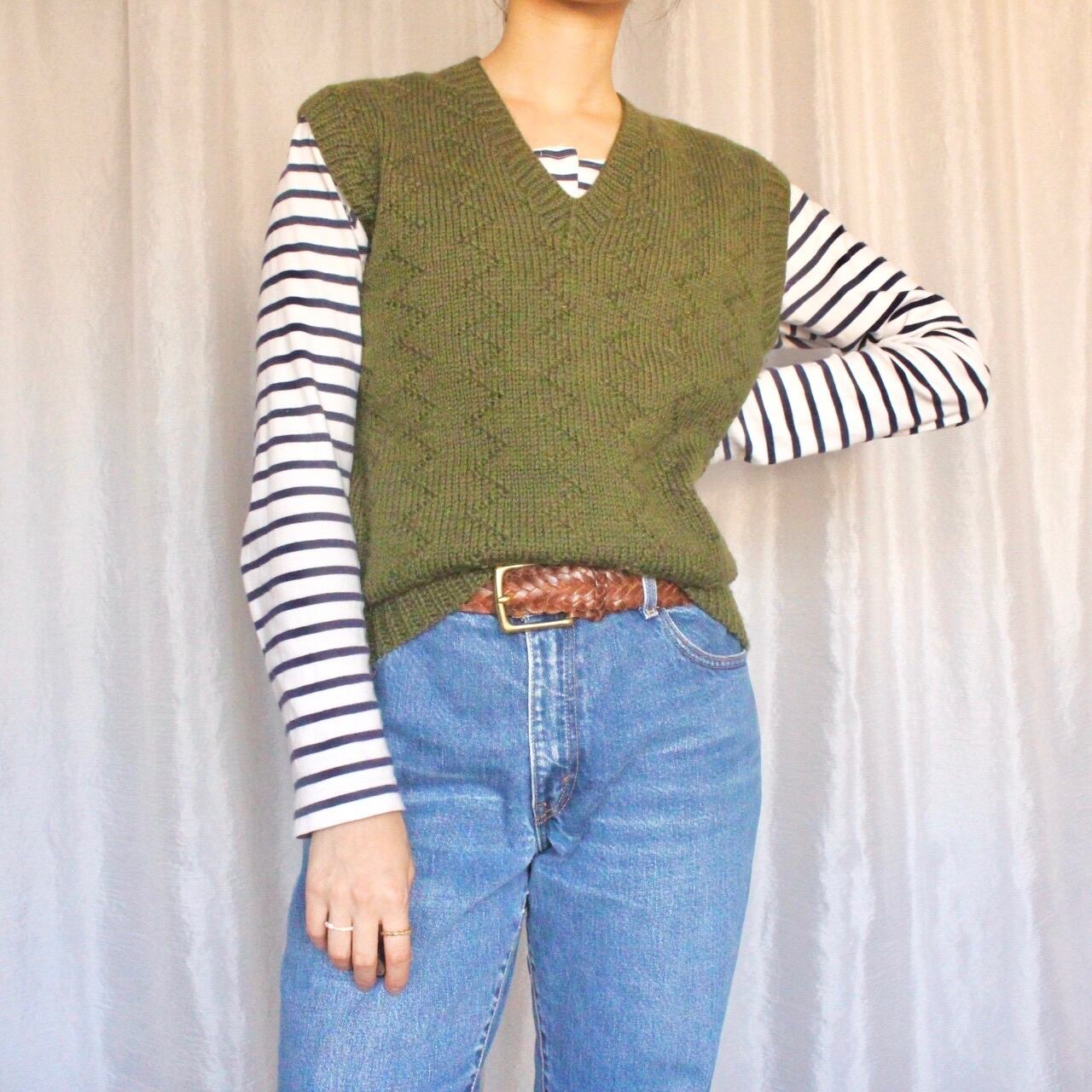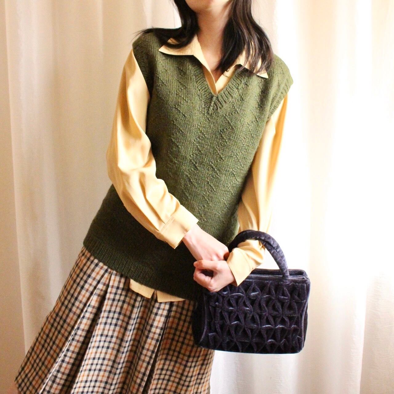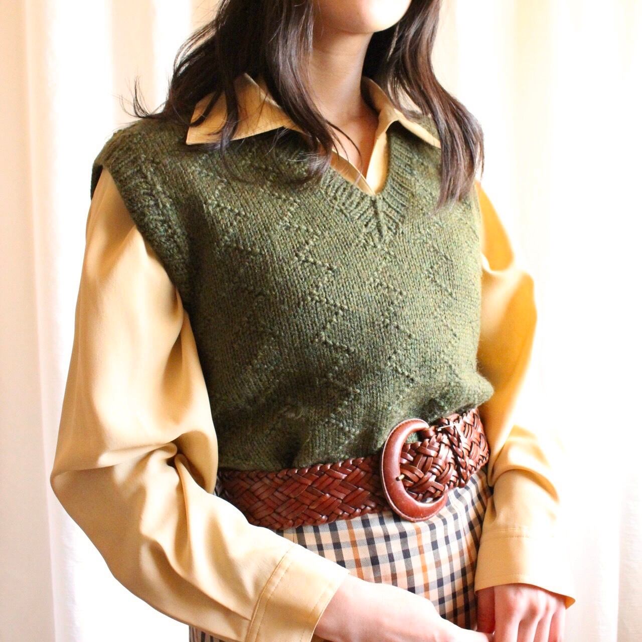 古着らしい、温かみのあるハンドメイドニットベスト。