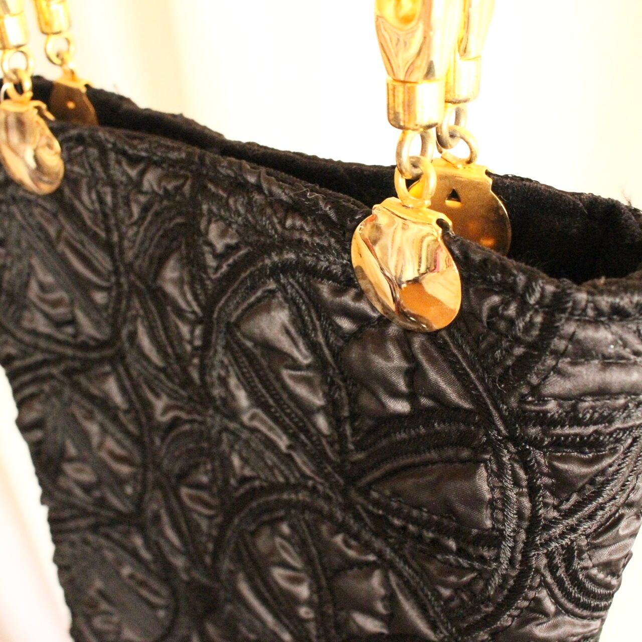 black × gold handバッグ