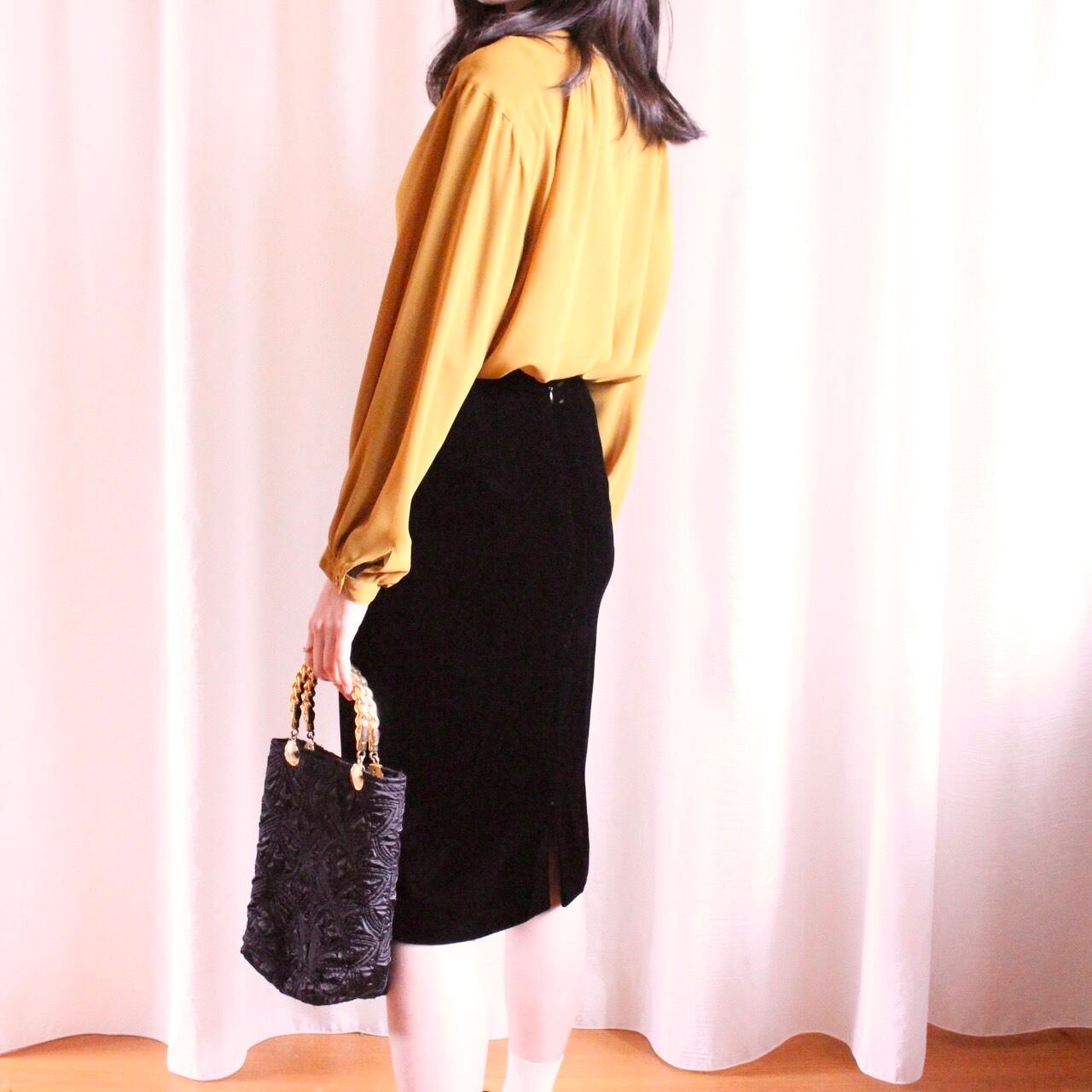 大人っぽいベロア生地のタイトスカート。
