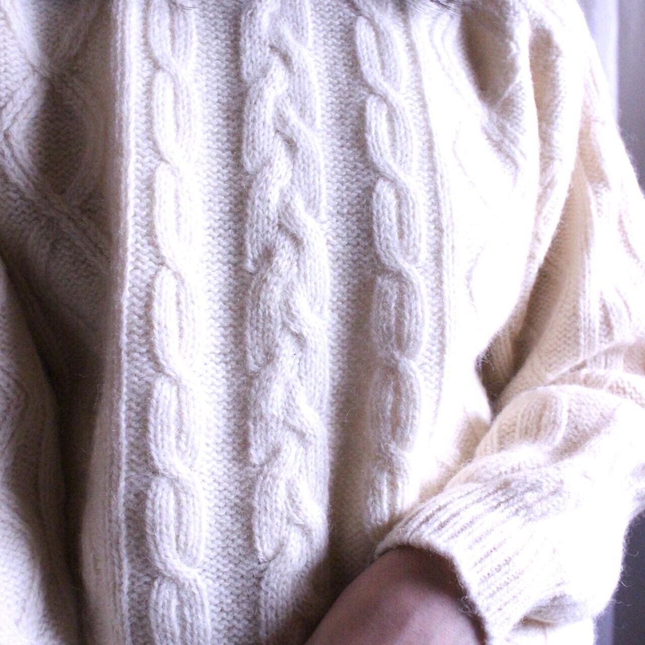 ビンテージニット好きにはたまらない、ロープ編みのデザインになっております。