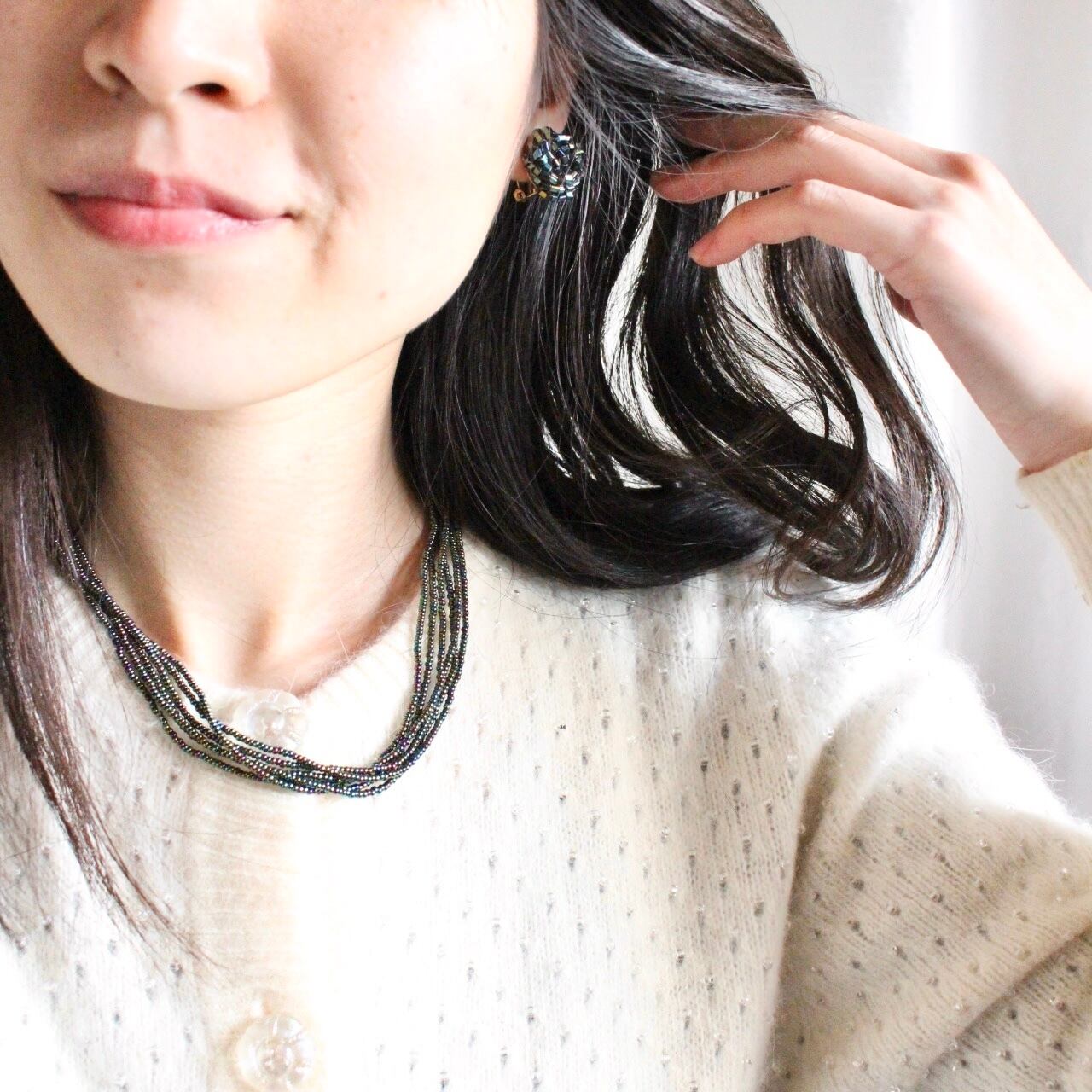 小さなビーズがふんだんに使われた、贅沢でボリューミーな一点です。