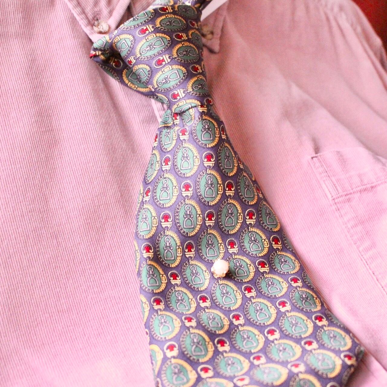 どんなネクタイでも、ワンポイントパールを添えるだけで一気に華やかで、大人っぽい雰囲気に。
